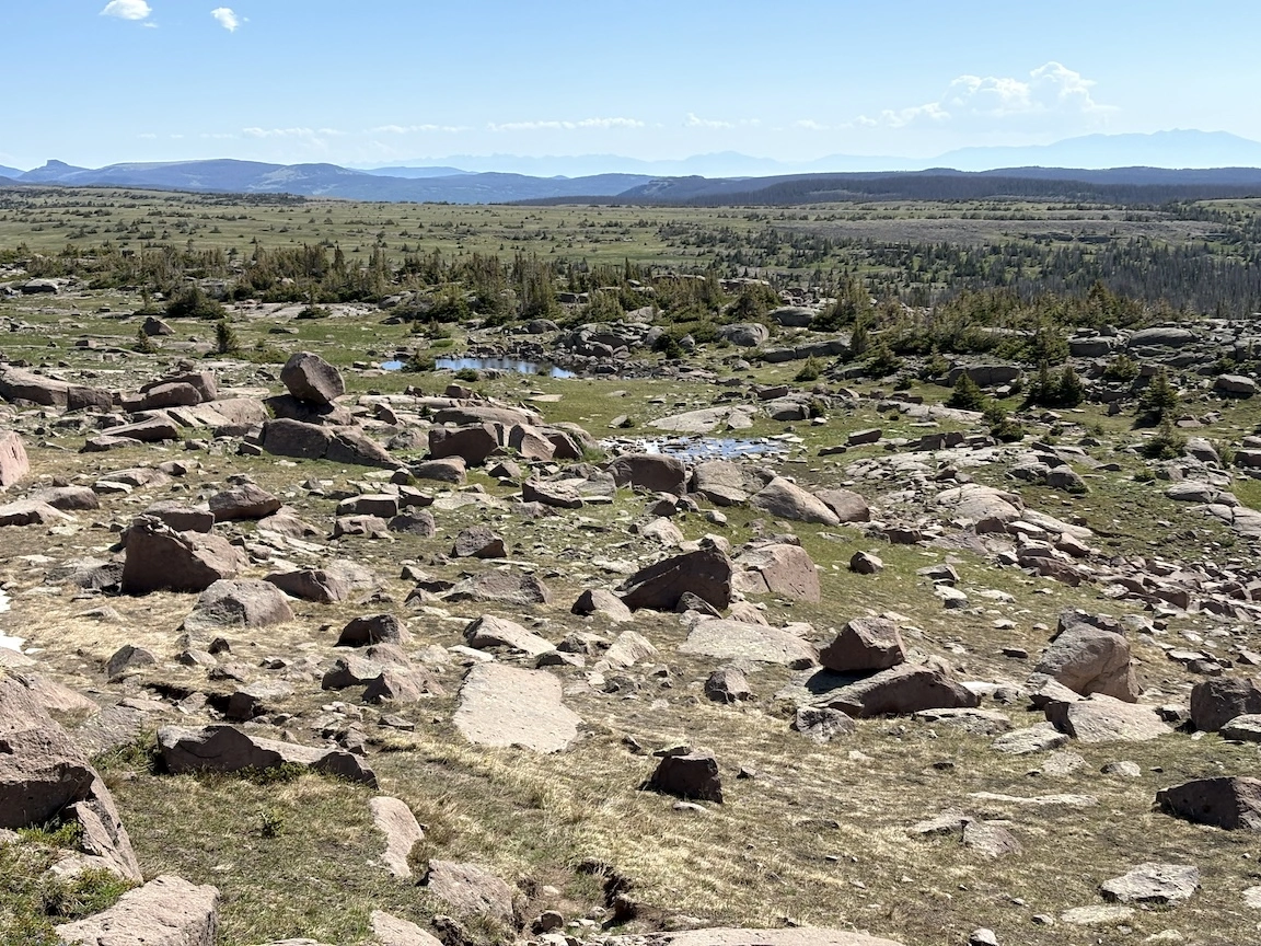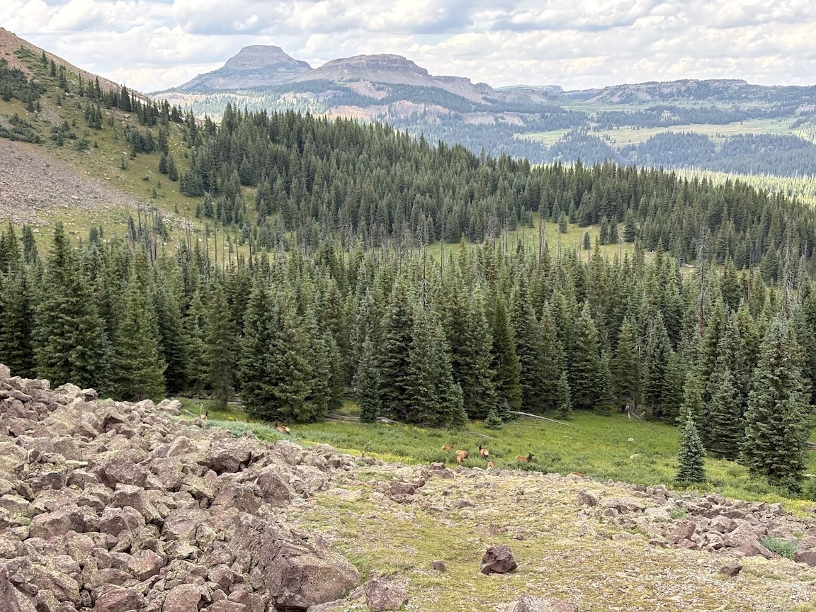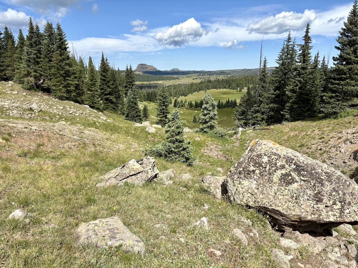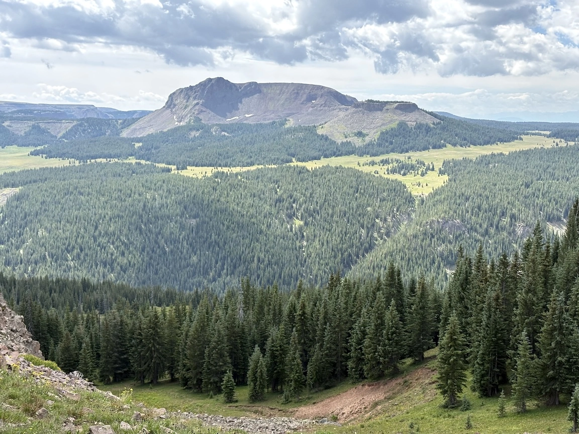 From there, we could look down into the next basin, where we would spend most of the afternoon. The large mountain in the center is Snowmass.