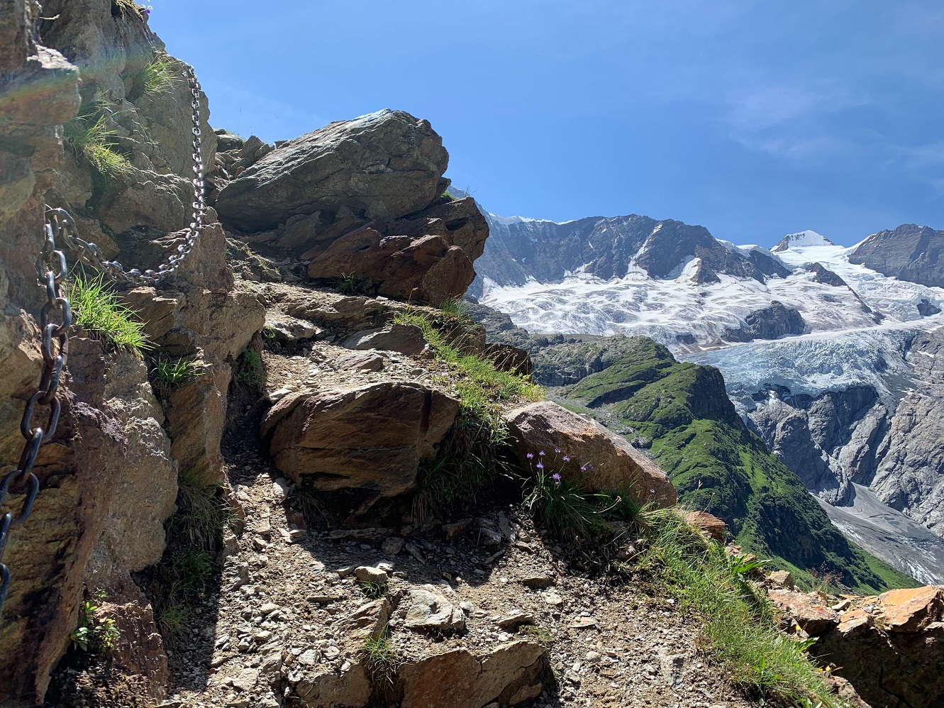 Either one enters/exits the tour by hiking up/down to the hut from about +/-1000m altitude (the nearest village/town). Or one does bigger tours/peaks, as there are quite a lot of 4000+ meter peaks, and a lot of glaciers that one can (or might have to) cross on the way to the next hut.