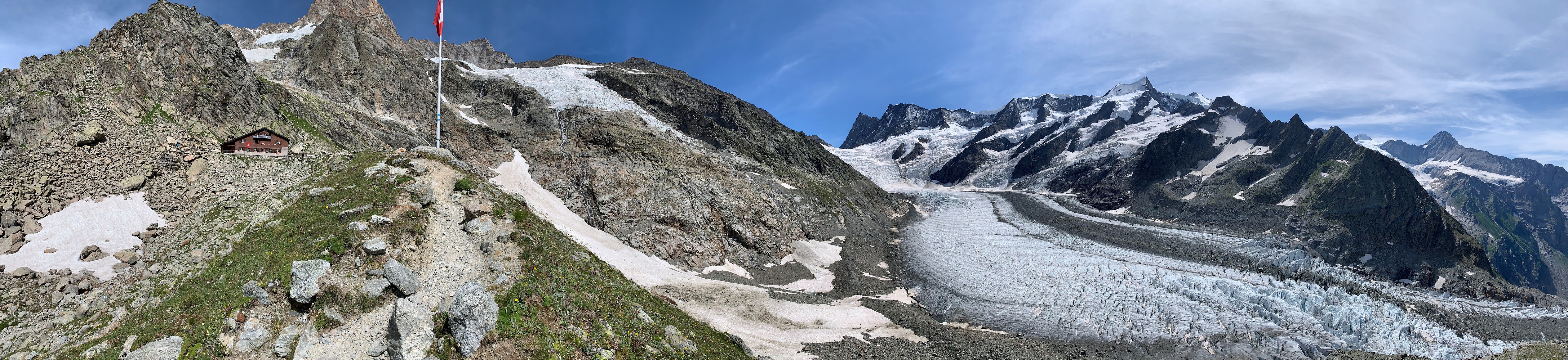Having manned huts and a national association for them, throughout the Alps is quite unique (they also exist in southern Germany, Italy, Austria and maybe France, but nowhere else in the world ) as they allow one to spend days/weeks at a time in the Alps without having to descend into the valleys, and their standards/quality/condition is great due to proper organization and maintenance. One can totally escape civilization for a long time, and be greeted at the end of every day by super friendly folk whose job it is to cook you a nice 3-course hearty dinner, and a breakfast, before you are on your way the next day. Don't expect hot showers ... or any showers for that matter. I only once during a week-long tour had one shower (under glacial water in the open) ... and that was it. Don't expect fresh linen or privacy at the huts either ... but you can expect great friendly approachable people, a nice cold beer or some wine, and great nourishing food. It is mandatory to take a silk sleeping bag (very thin) with and sleep in that under the provided blankets/pillows. You might have a complete stranger sleeping next to you, or when its not full, in the same room, which will sleep many, or you may have a room for 12 all to yourself. All depends on the hut location and how many people are on their way. These are beautifully functional very old huts, most that I have been at originated in the 1800's. Some have books from almost 100 years ago (recently saw journals of ski tours etc, with pictures, from 1925). One usually meets serious Alpinists, and the disposition of the people one meets is simply stunning ... its quite difficult to explain.