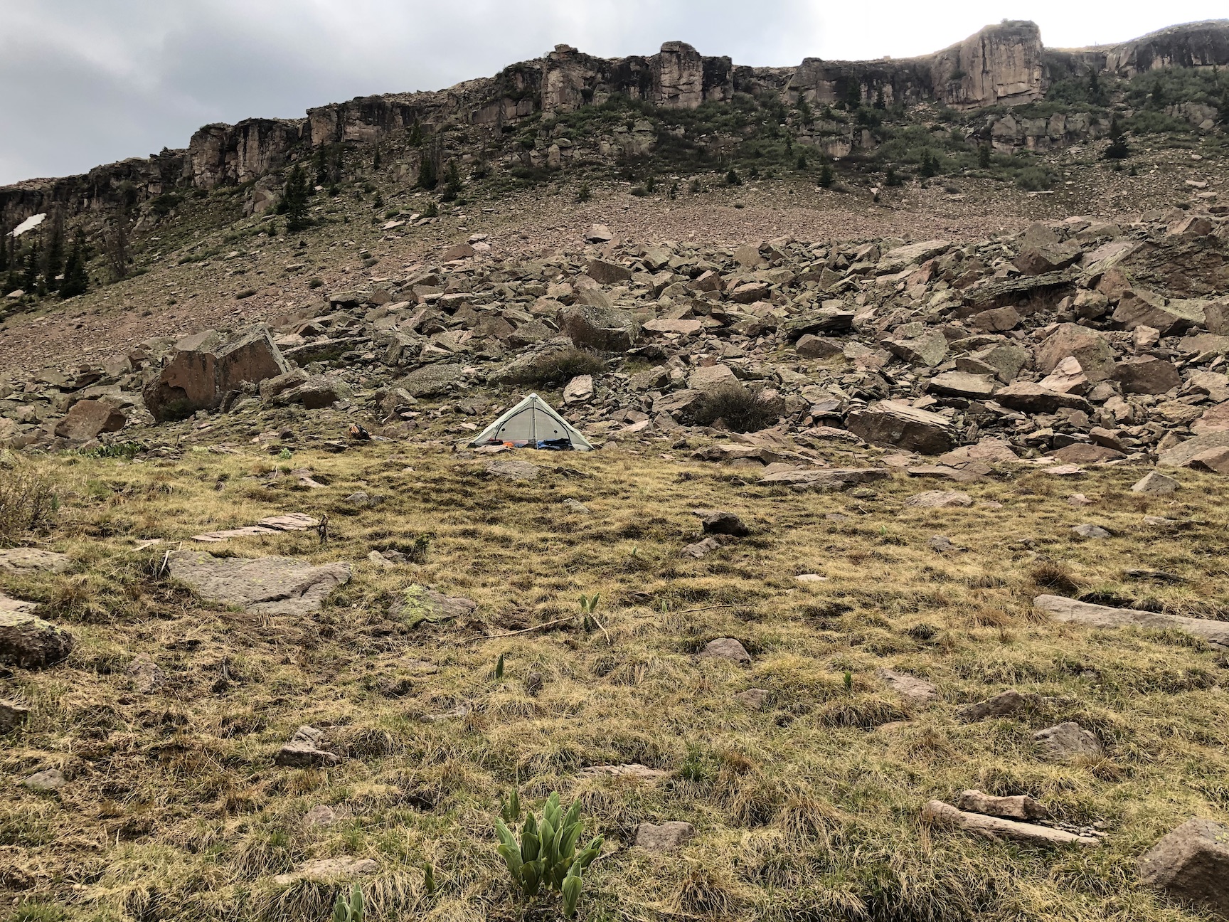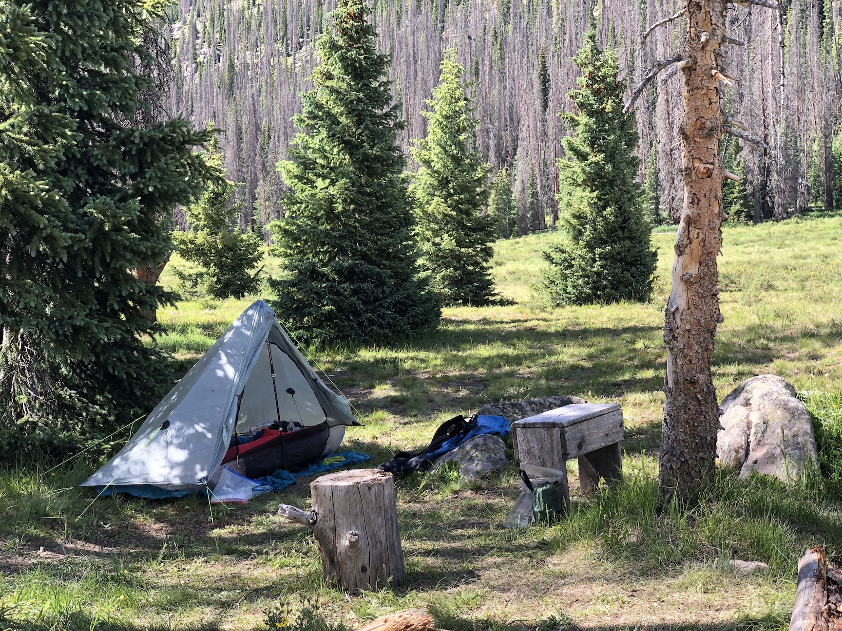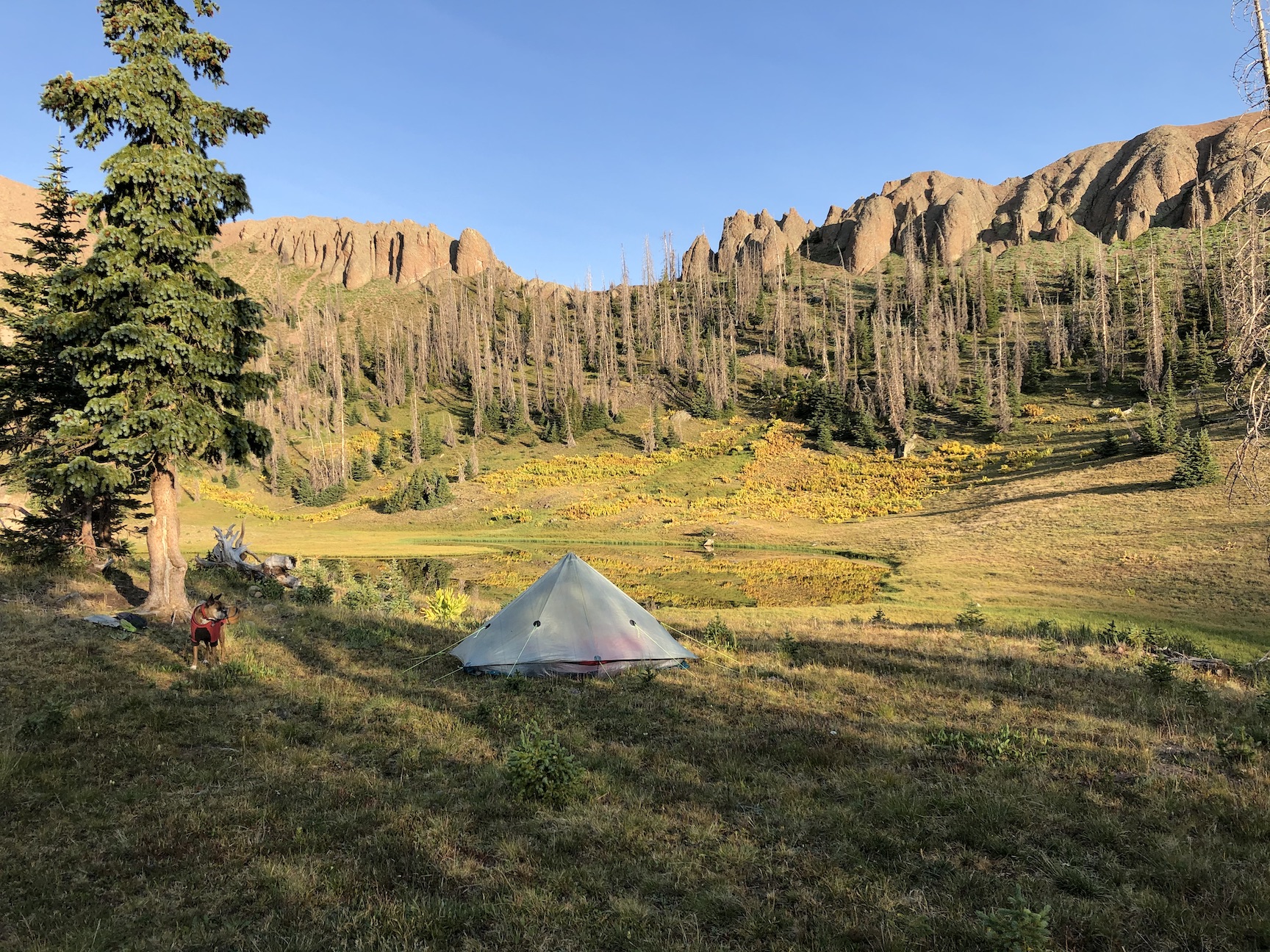 After a long drive, I hiked in to camp at an alpine meadow.