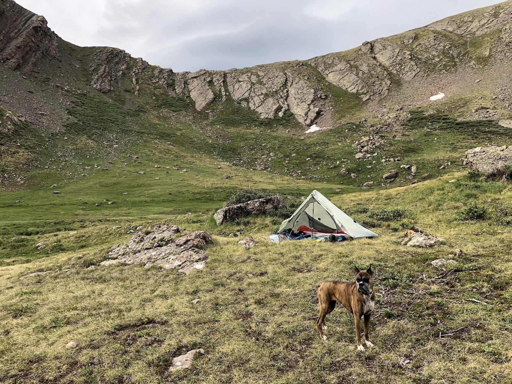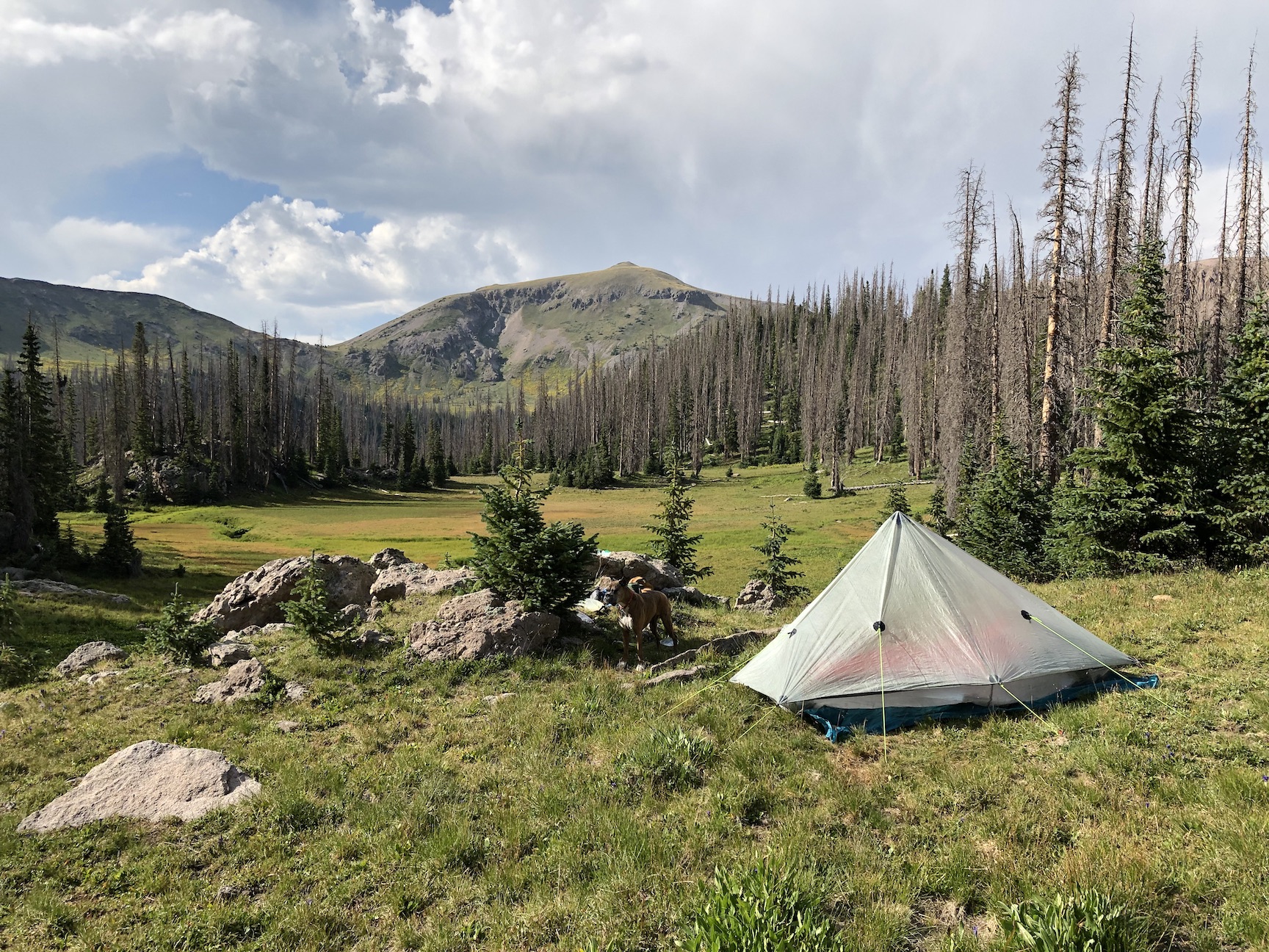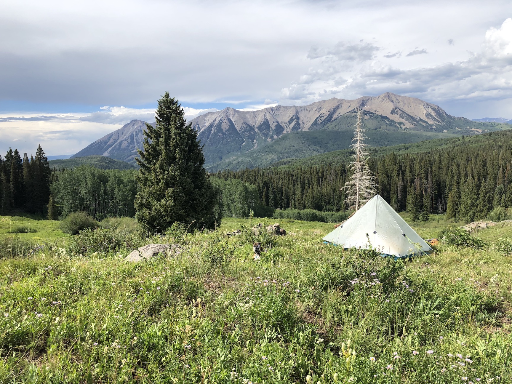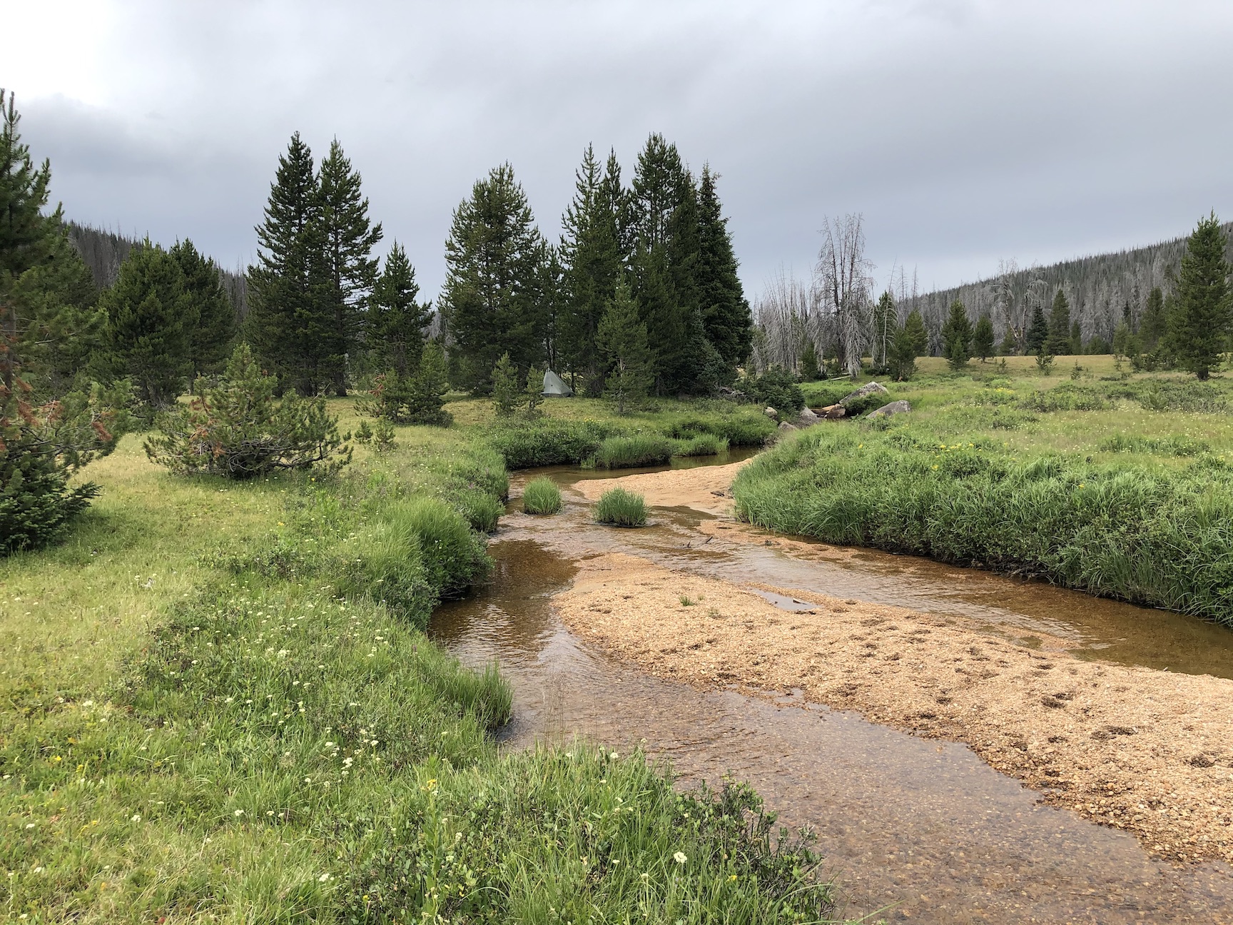 After a long drive, I hiked in to camp at an alpine meadow.