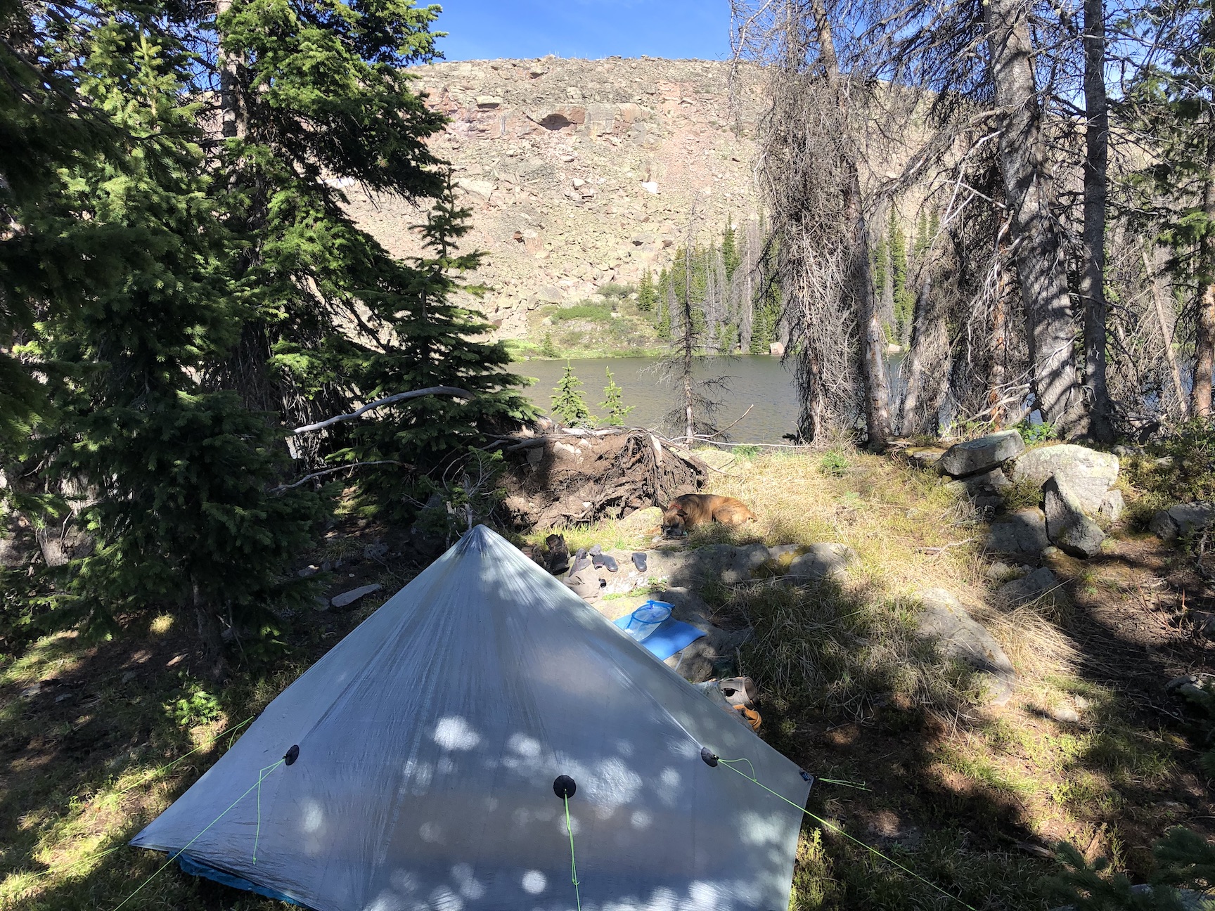 Third campsite at a really beautiful off-trail lake with lots of trout. DM for details.