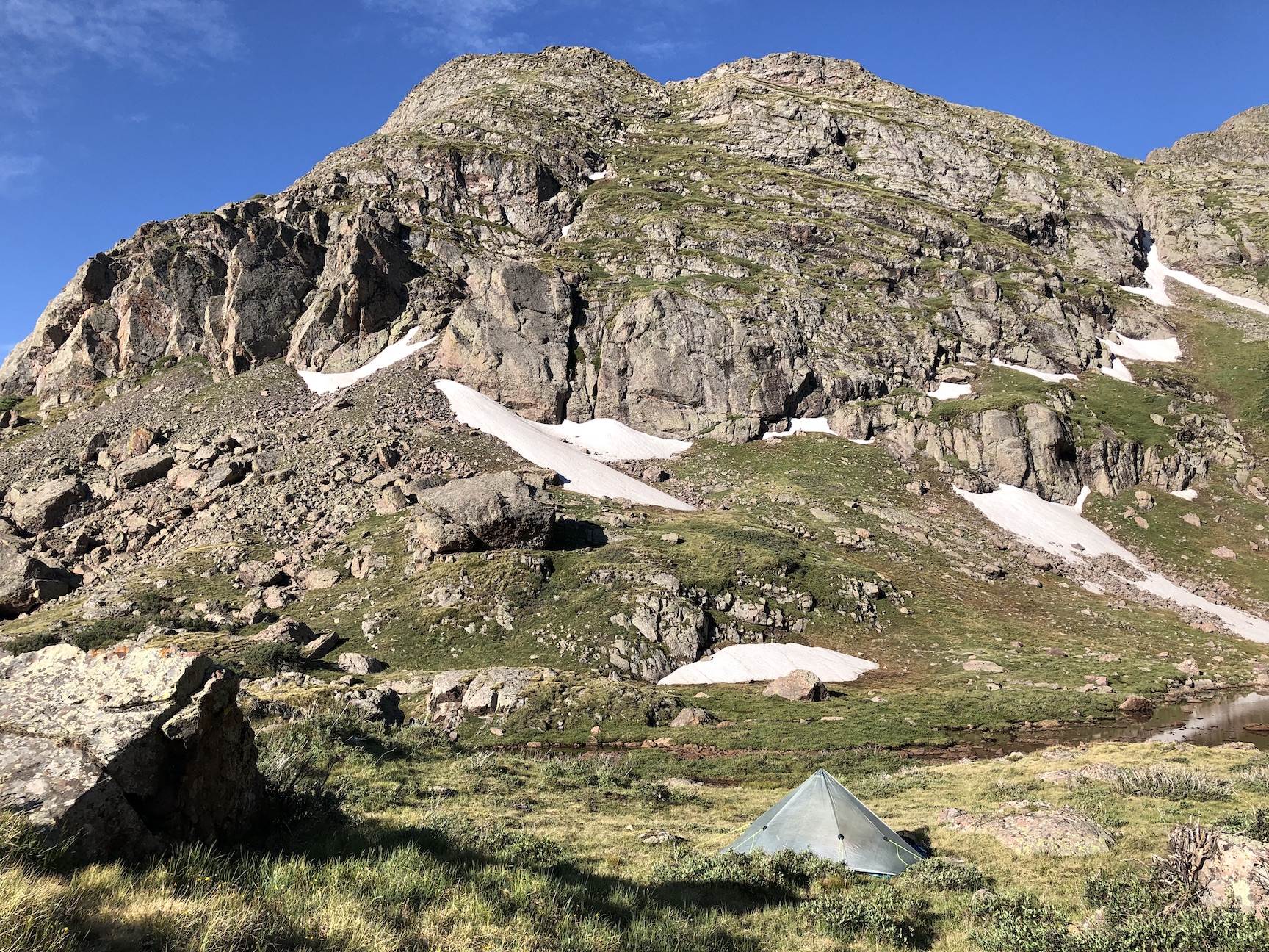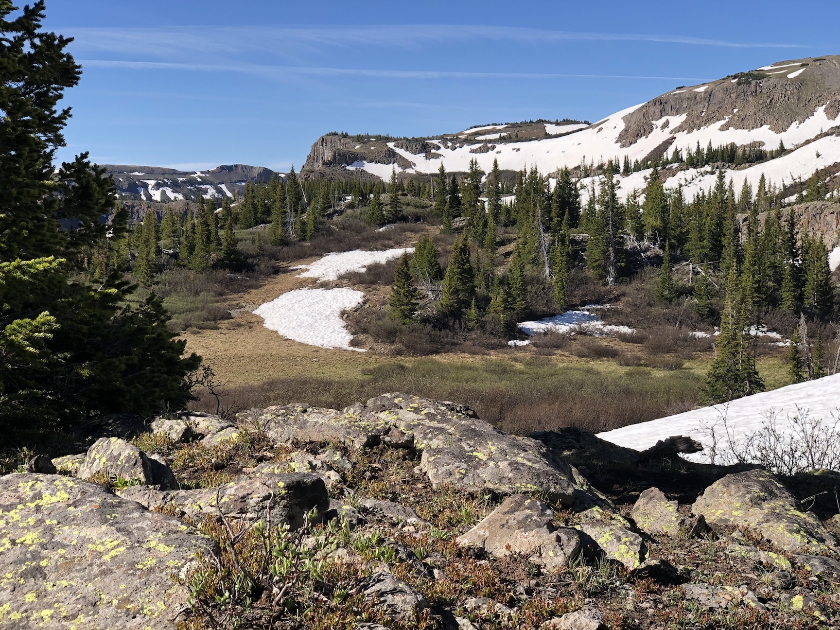 As I moved towards the Continental Divide, the patches of snow became more frequent and the drainages were running high.
