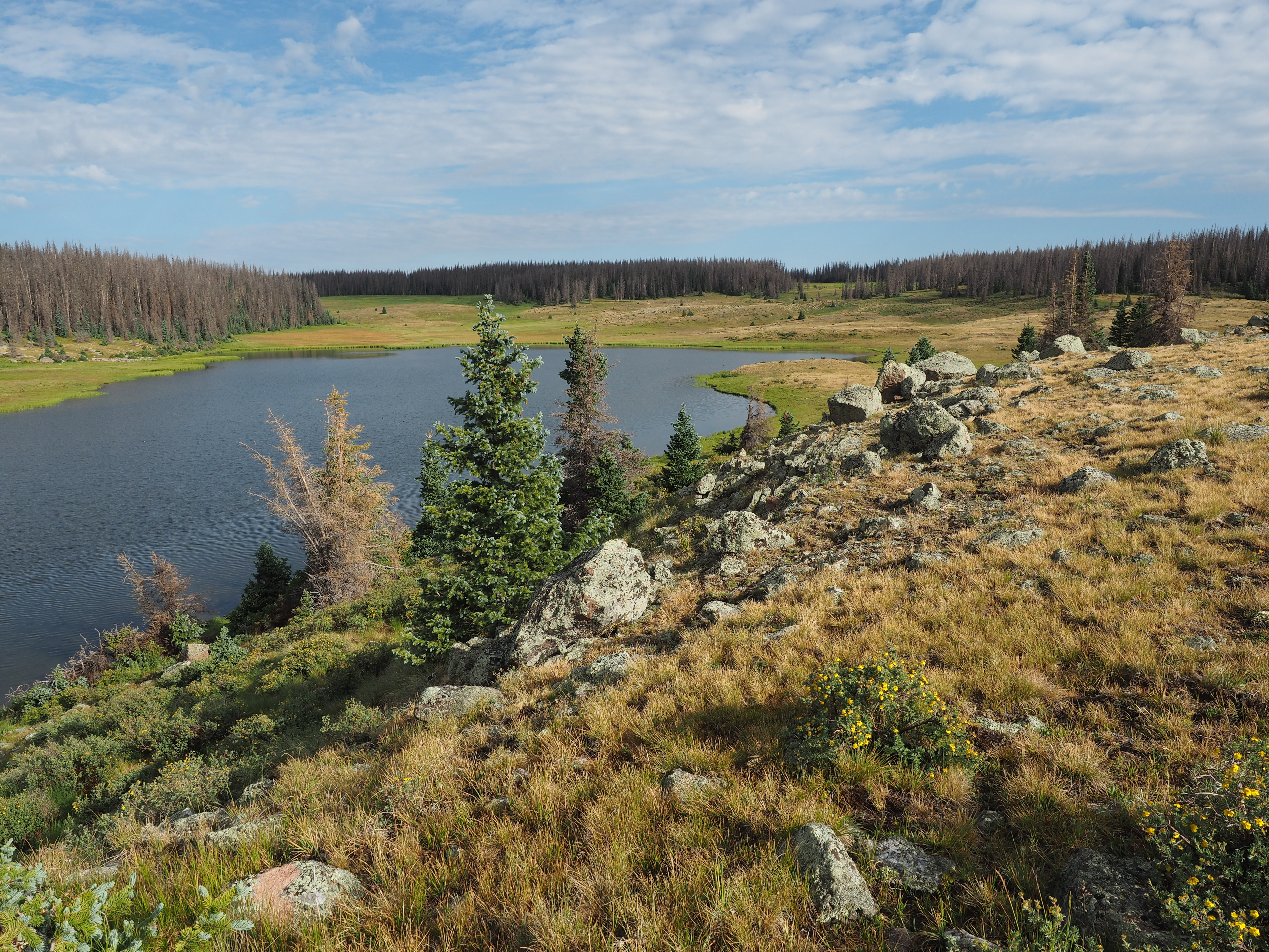 I got out last weekend to the Flat Tops Wilderness in NW Colorado for a couple of nights. My usual companion, Zelda, was recovering from minor ear surgery, so I was accompanied by my second choice companion Opus-the-big-goofball-oaf-who-knocks-down-tents-from-the-inside-at-4am-when-it's-very-cold.