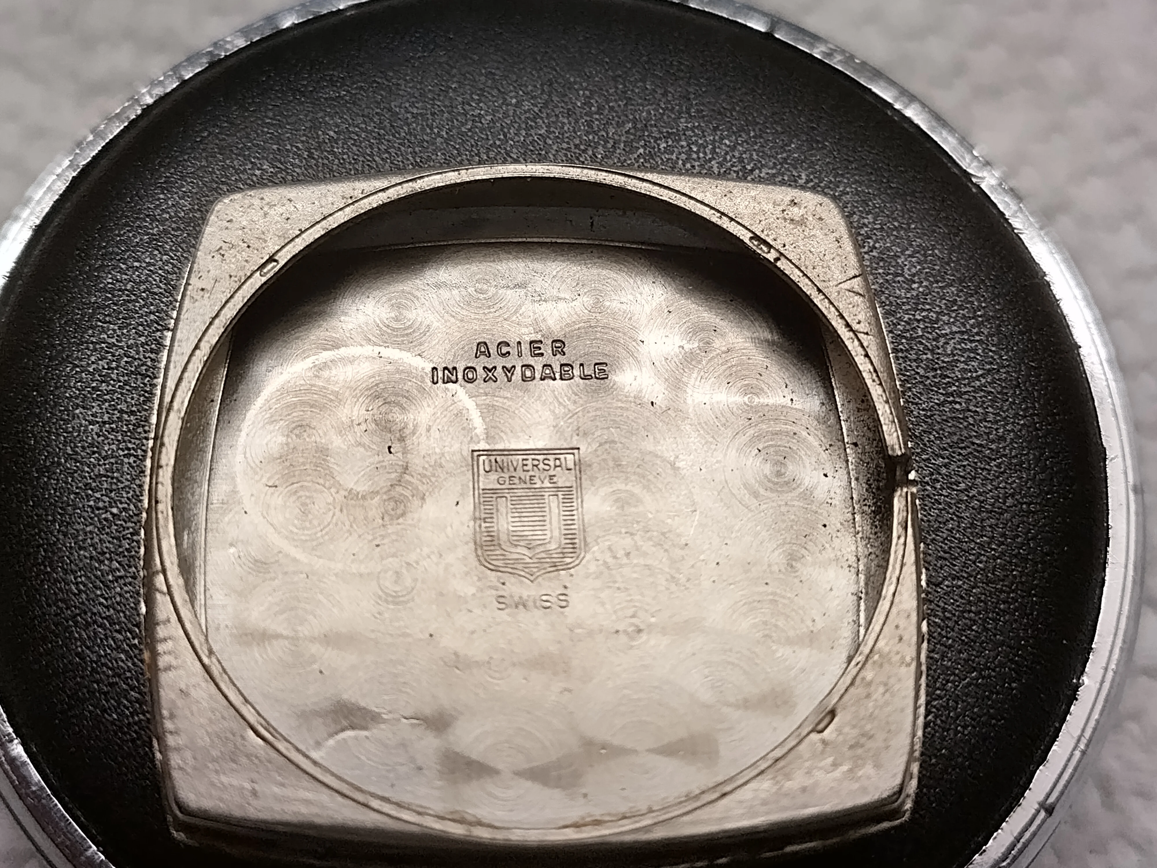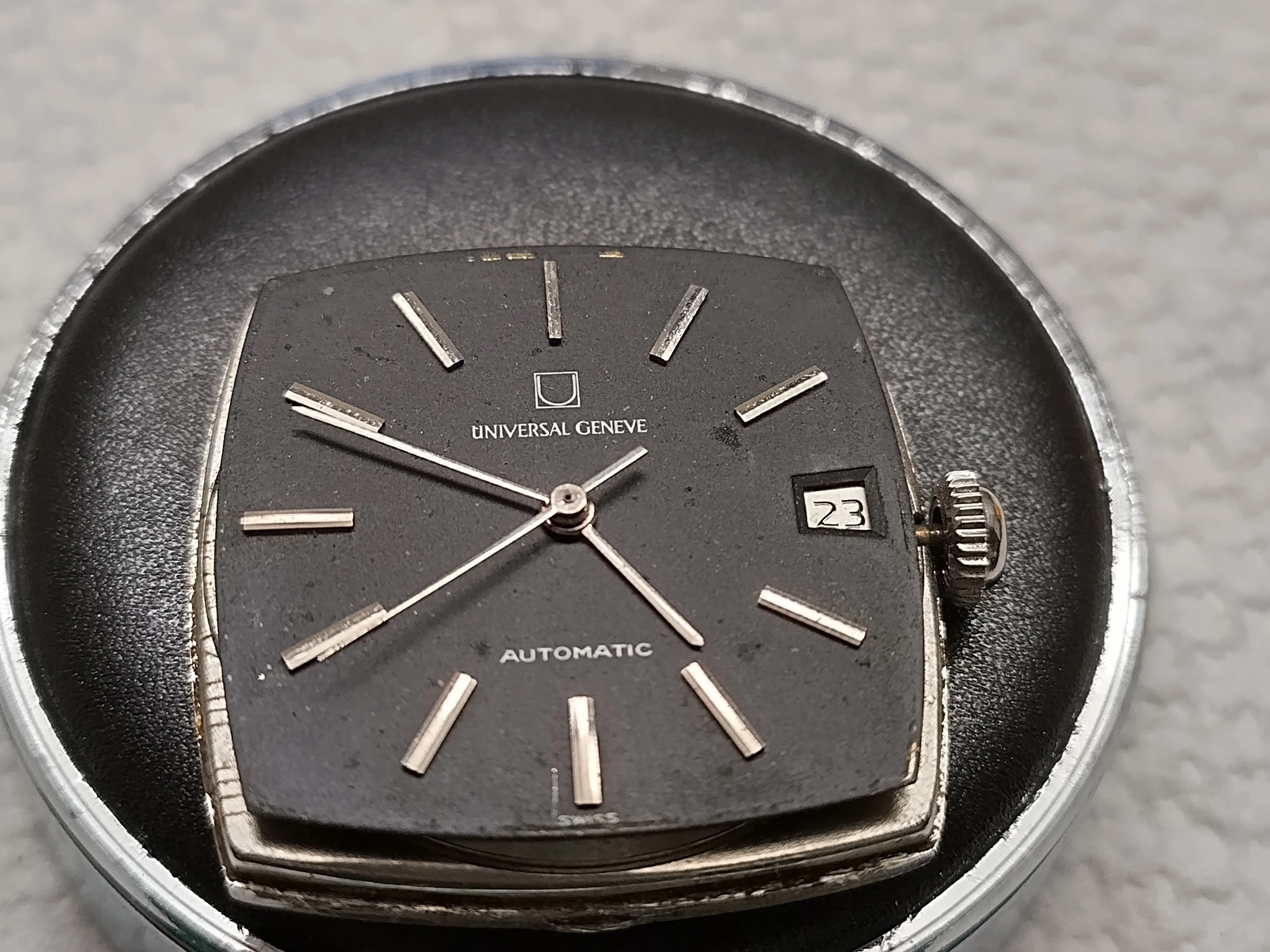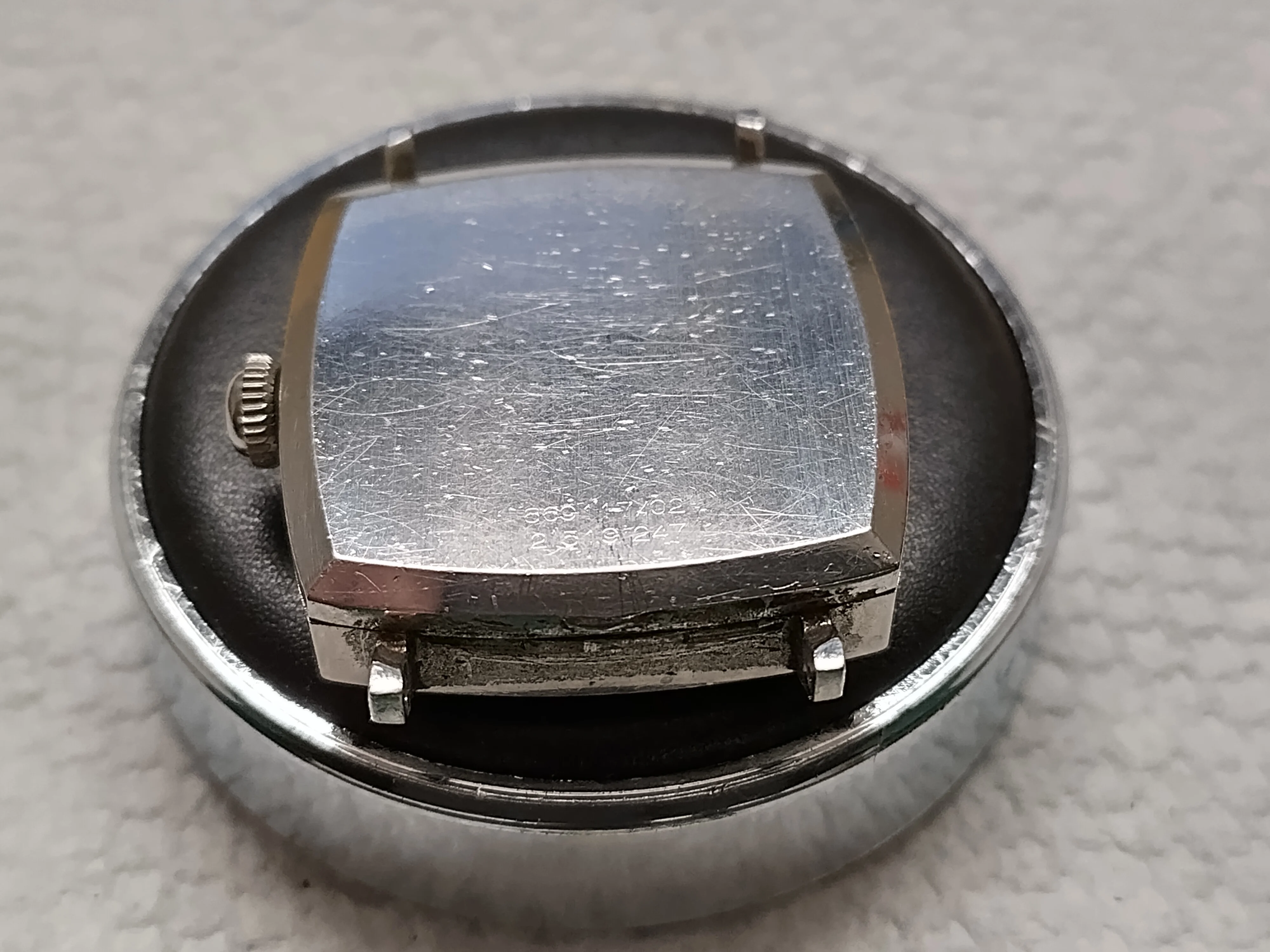 - The Microtor went bad at some point (see witness marks on case back) and it was simply removed to run as stem-winder!