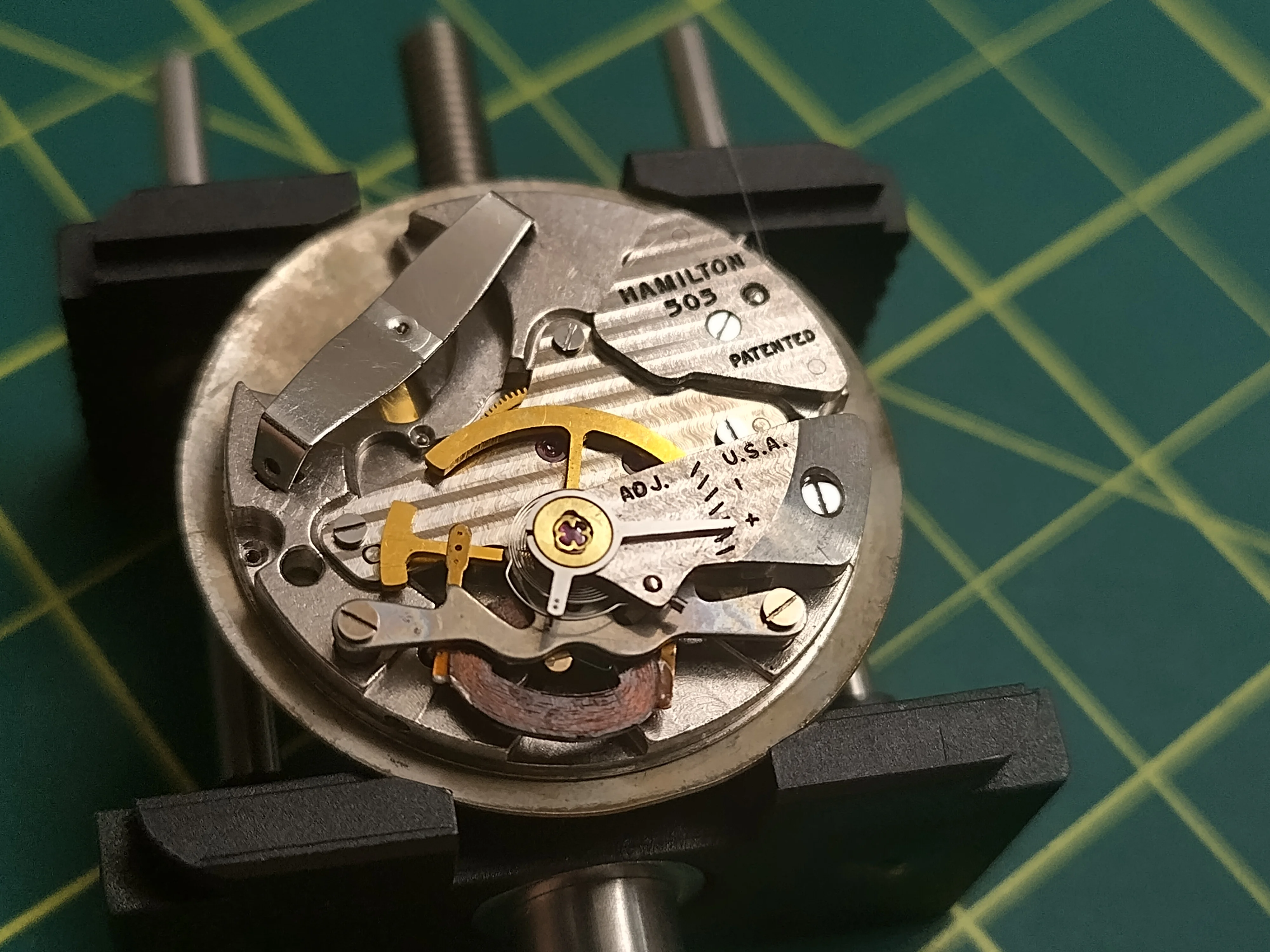 Described by one owner as a "Pole Router hiding in plain sight", the cal. 1-69 is most famous for that watch. This watch has the 28 jewel version of the 1-69 with the "Girocap combined settings for escapement wheel if 28 jewels", i.e. shock protection for the escapement wheel.