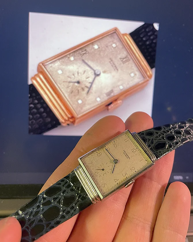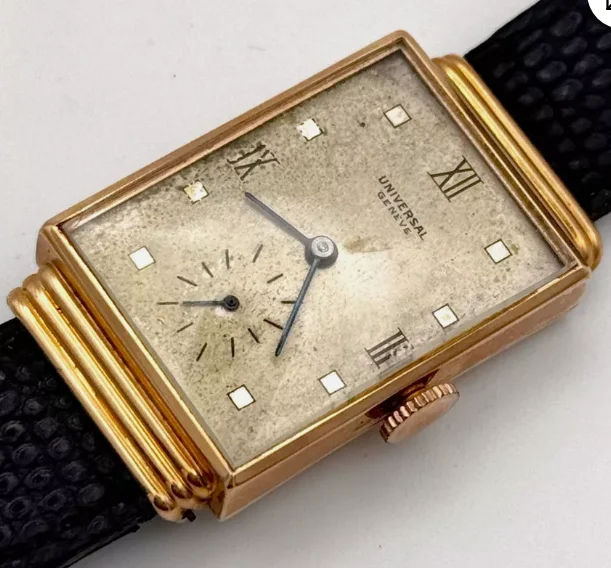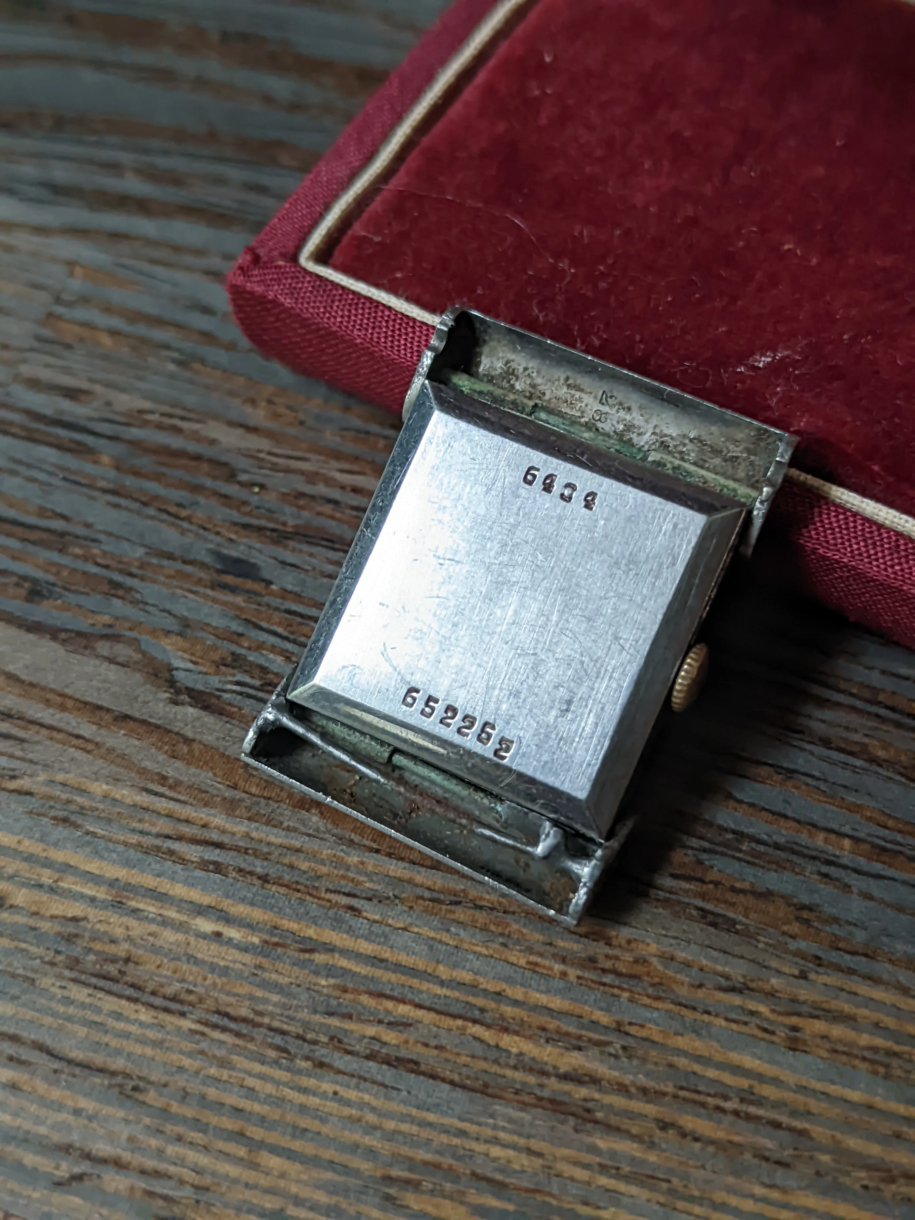 Very cool roman + art deco square combination dial on eBay now. Interesting for me to see as I have the SS version of the same case design. Serial is just off by about 100.