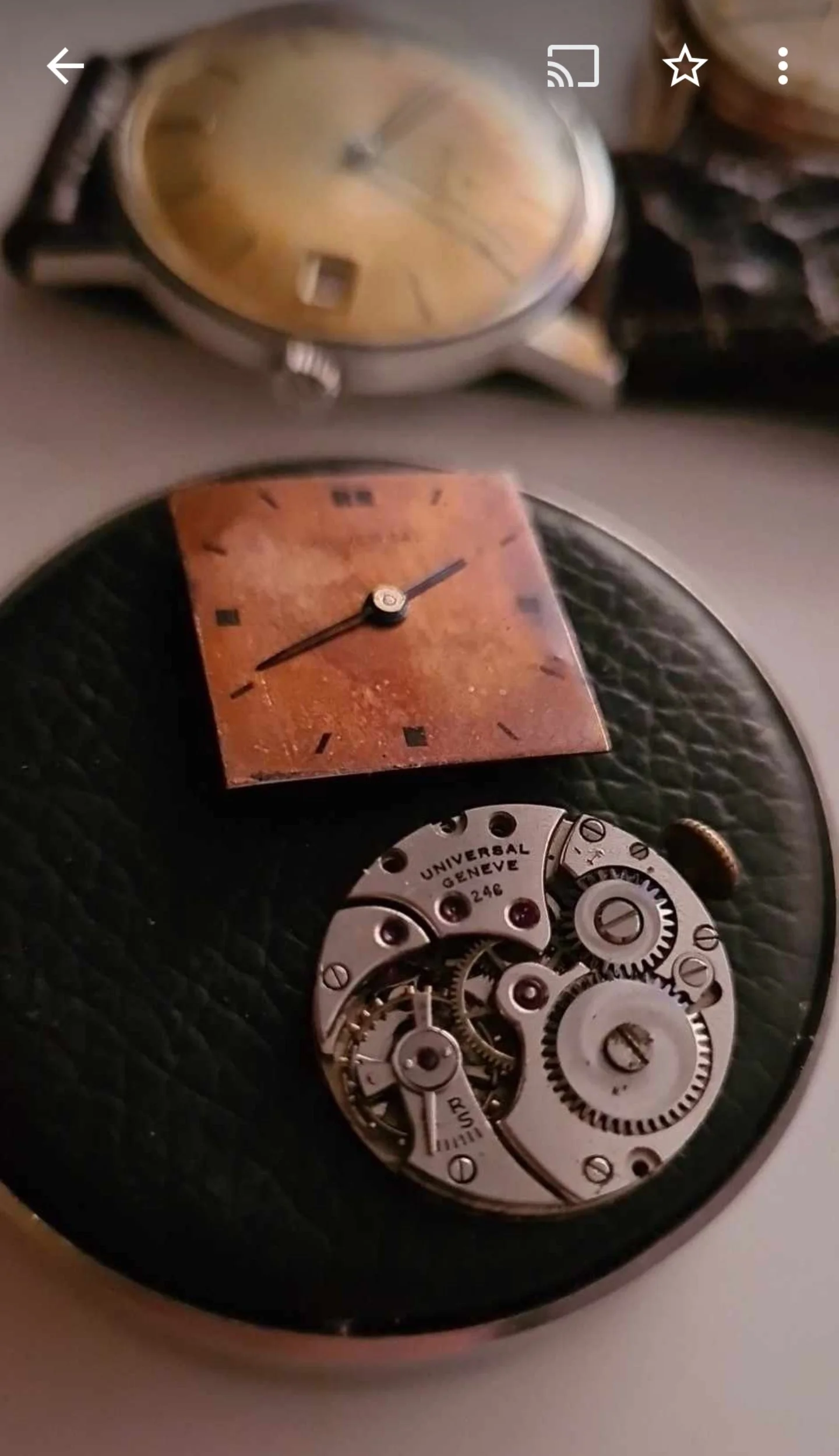 Now with a spare movement - cal 246. This seems to be the only movement where they seem to have removed the second hand pinion selectively - examples exist with both no seconds and sub-seconds.