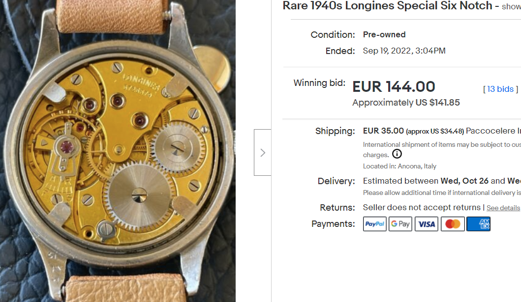 I have a Vintage Longines Watch from the 40s. Actually a Longines WWW Dirty Dozen Model. Very nice watch.