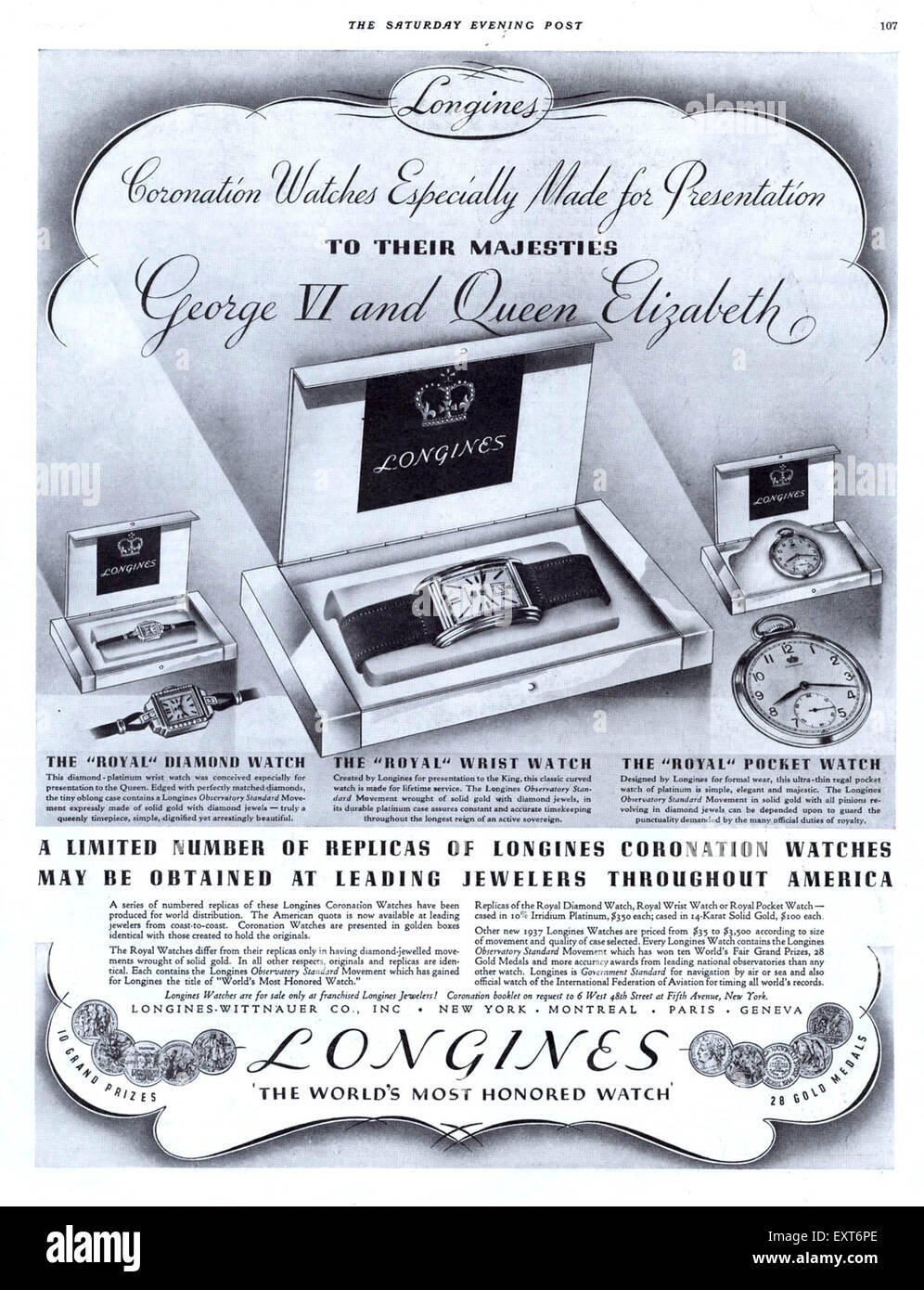 From period adverts, it seems that at least the Longines Wittnauer company in the U.S. used the coronation of George VI/ Queen Elizabeth as a marketing opportunity, presenting them with three watches - a cocktail watch, a wristwatch, and a pocket watch. All three allegedly had “solid gold” movements with diamond jewels.