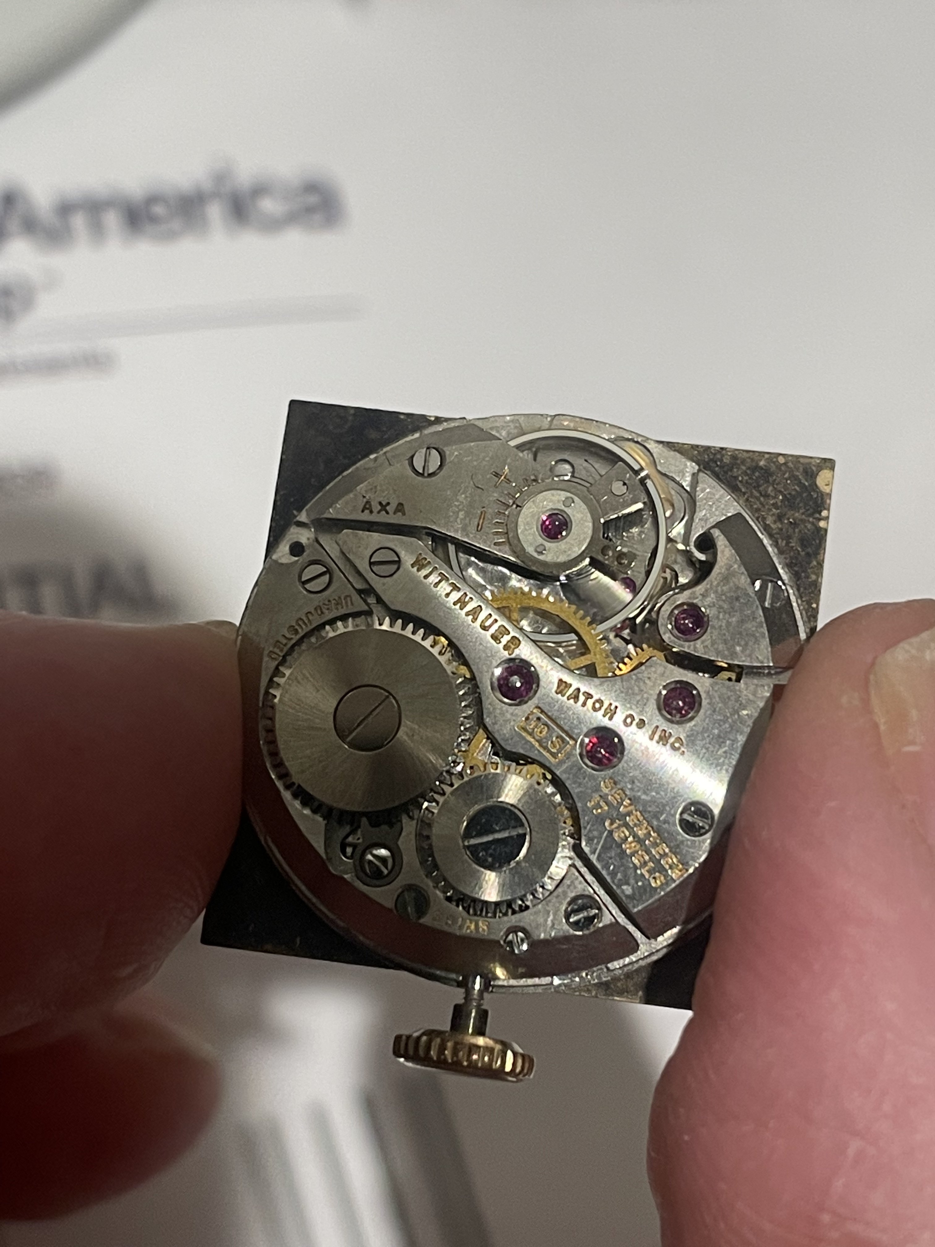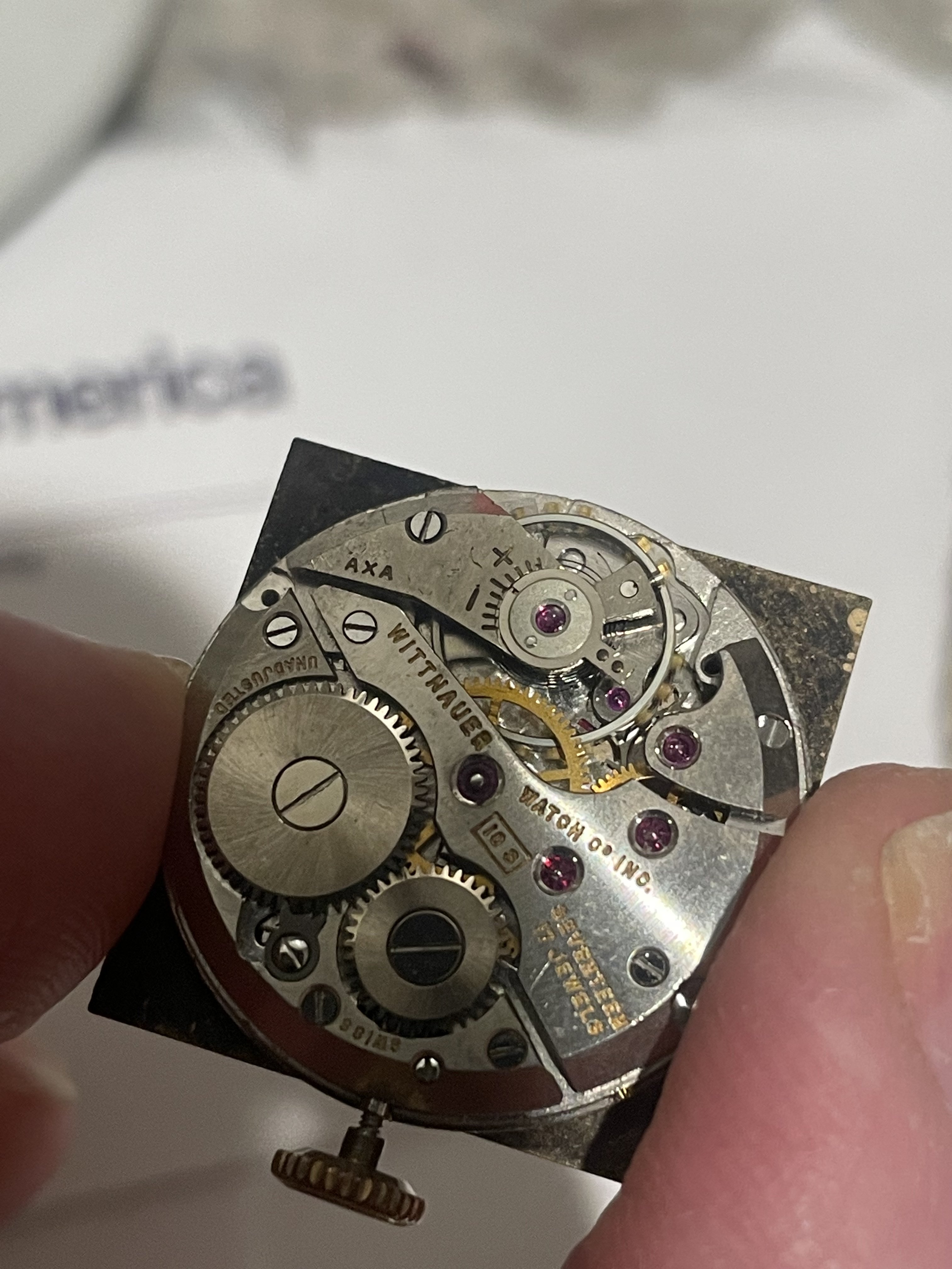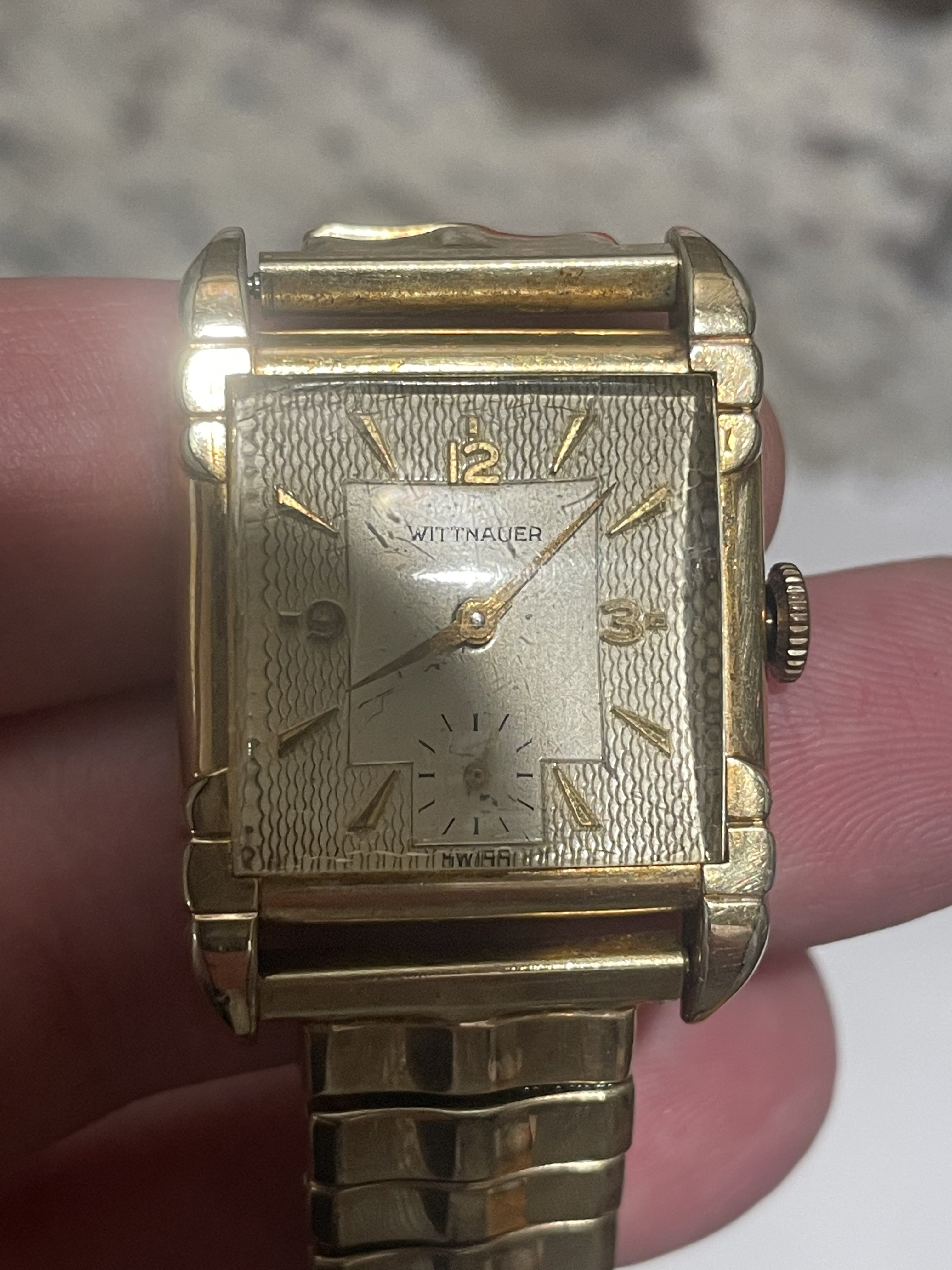 ·So this isn’t a “what’s it worth thing” as I know this watch is not high value. I stopped by my buddies shop as I heard his mother had passed I wanted to pass along my condolences. Fortunately he is doing well so it turned into a positive visit. I always try to buy a couple things but all I found this time was a box of old sturdy spring bars and some watch tools which he only wanted five bucks for the only thing I could find of some interest was this whitnauer. Plus a vase for my wife. Not sure if this is worth getting serviced. Actually I kind of want to as I like bringing back forgotten things. I’m a little confused as to where this was made. I’m thinking US. Looks like the dial got nicked up during some services or maybe it fell open along the way. Some spots are cleaning off lightly with a QTip. Some are definitely scratches. I payed a whopping 5 bucks, it’s running, actually wound it full at 8p and it’s been accurate for a half hour. I also don’t have a wittnauer so I’m leaning towards getting it going and finding a leather band. I’ll probably spend more than the watch is worth but it’s just for me to wear. Bad photos sunlight long gone just wondering if anyone knows much about these google hasn’t got me to far yet. Edit some dial marks are crystal reflections but the dial definitely has some marks.
