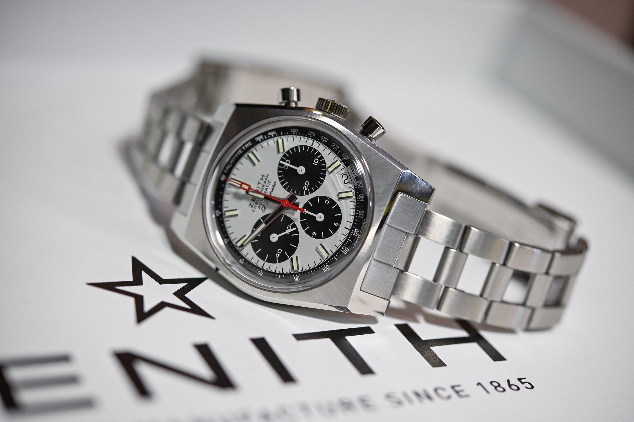 This is a perfect recreation of a vintage watch. A slim 37mm that I read hugs the wrist tightly. Really love those exposed pushers and I have never owned a Zenith.