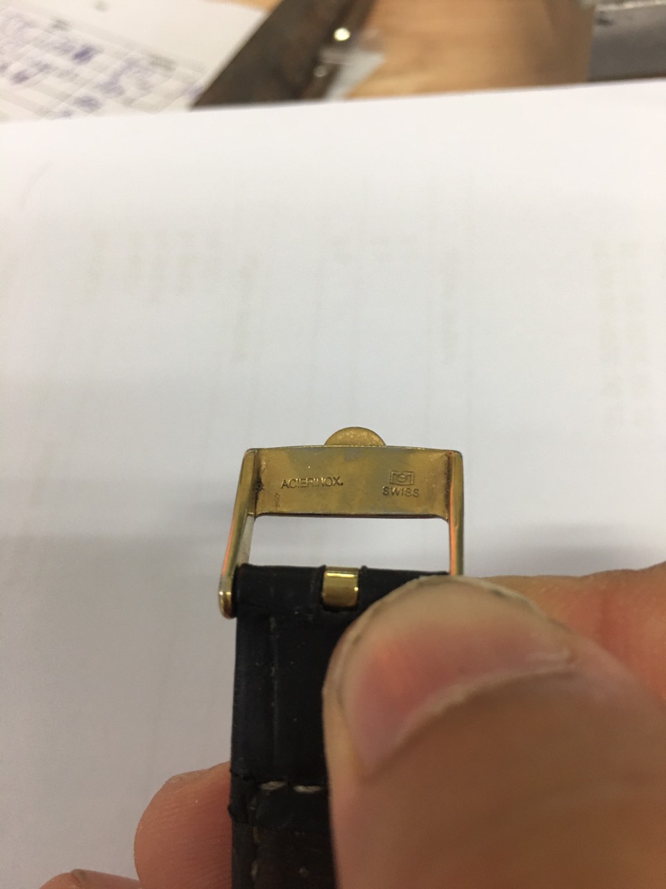 Acier Inox should be two words, not one. It also means stainless steel, and the buckle is gold-plated.