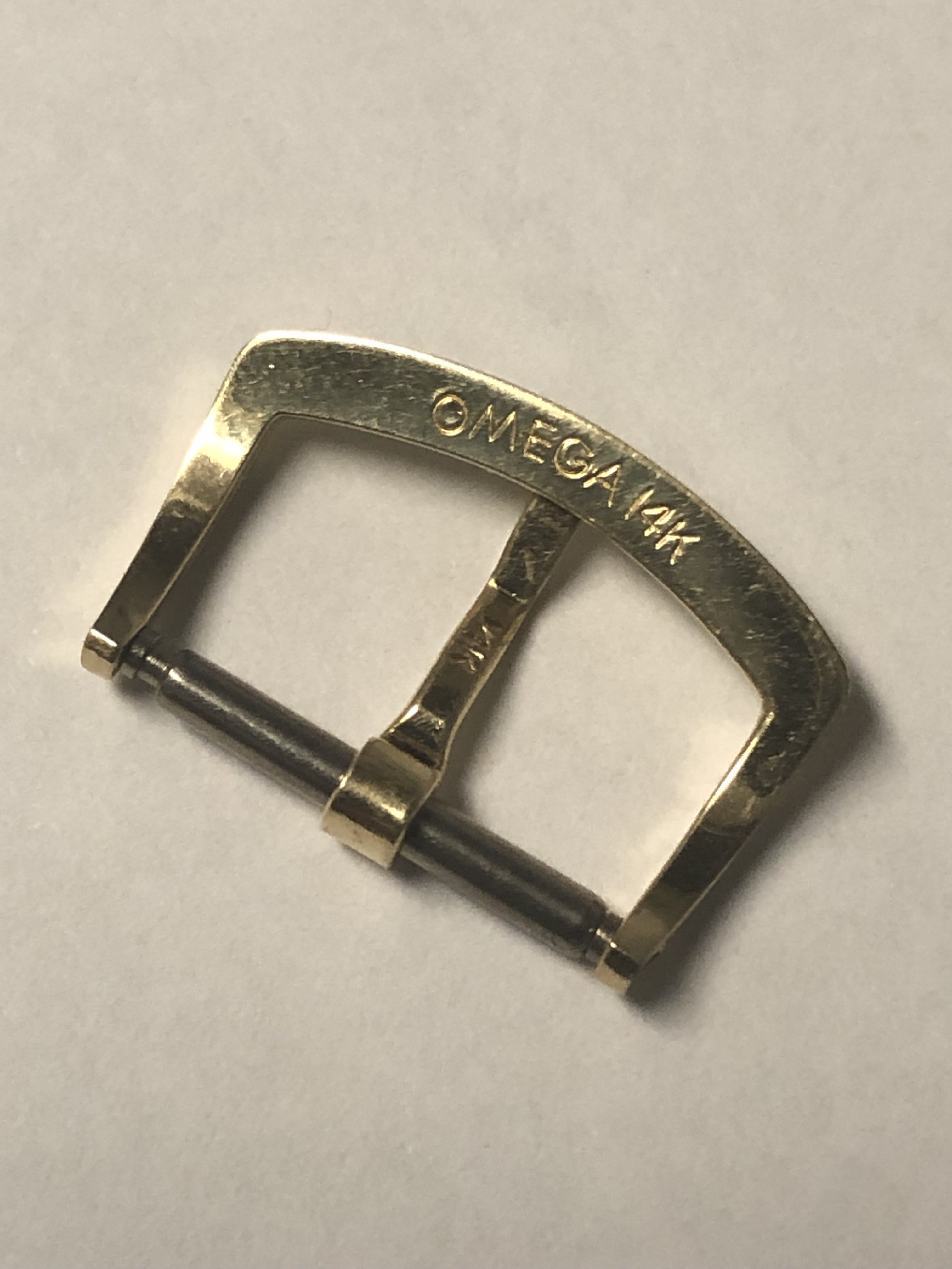 I am totally new to the world of Omega watches and buckles, and this forum, but find it quite fascinating. Have a question about the following buckle made for American market (I assume). It is stamped with the word OMEGA 14K on its back and 14K on its tongue. It is a 16 mm buckle. Here is a question: Is it real or fake? I bought it on the bay as authentic after the seller had assured me it was authentic. But I have my doubts and reaching out for your expertise. I am also guessing the style of the buckle is from the 50’s?