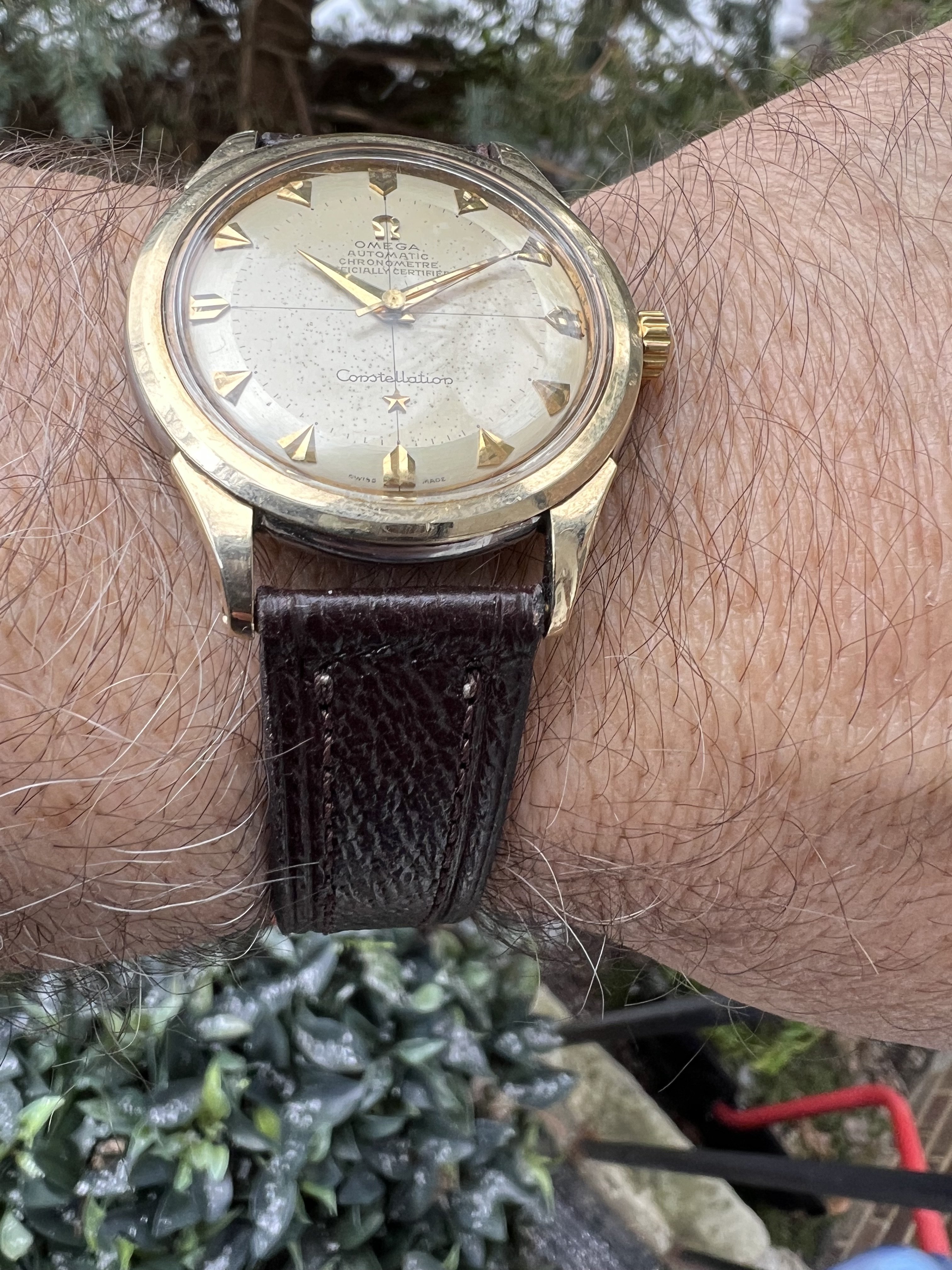 ·All good. 5 had the earlier flat foot Omega logo, and one has the later with feet turned up- like the progression of crown logos. On the last photo the buckle at bottom is the later logo- can you post picture of back of that one? Nice catch!!!
