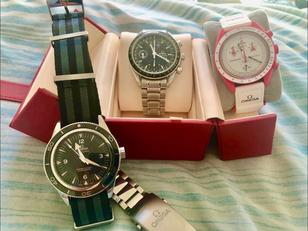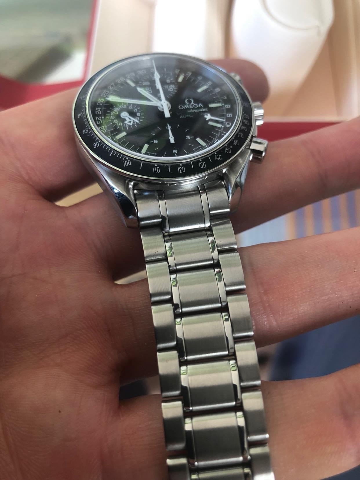 She’s home, re-united with siblings and plastic cousins… My triple date has been away at Ω watch service for months! Total rebuild and service… There was an “incident” that occurred whilst I was pressing the case back, back on one evening. The Crystal shattered and completely scratched the face and mangled all the hands. I am guessing that they had NOS face and hands to replace them with, or made them. You can imagine how I felt at the time, and it cost me a pretty penny to have fixed but I’m so happy with the outcome. LESSON LEARNED