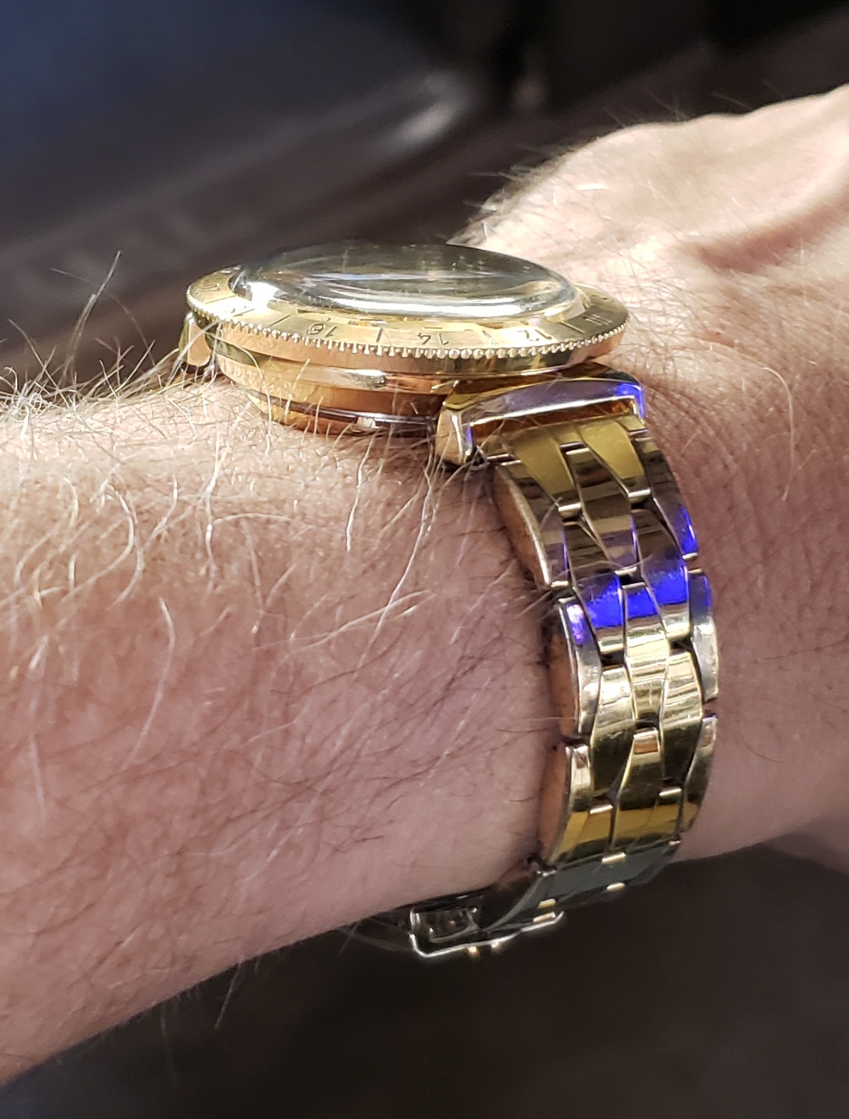 This just arrived today. It's taken a long time to get here. It is not working (yet) so I will need to send it out for service. But it looks unworn. Look at the brushing in the case side and caseback. This is before any cleaning, right out of the barn so to speak.