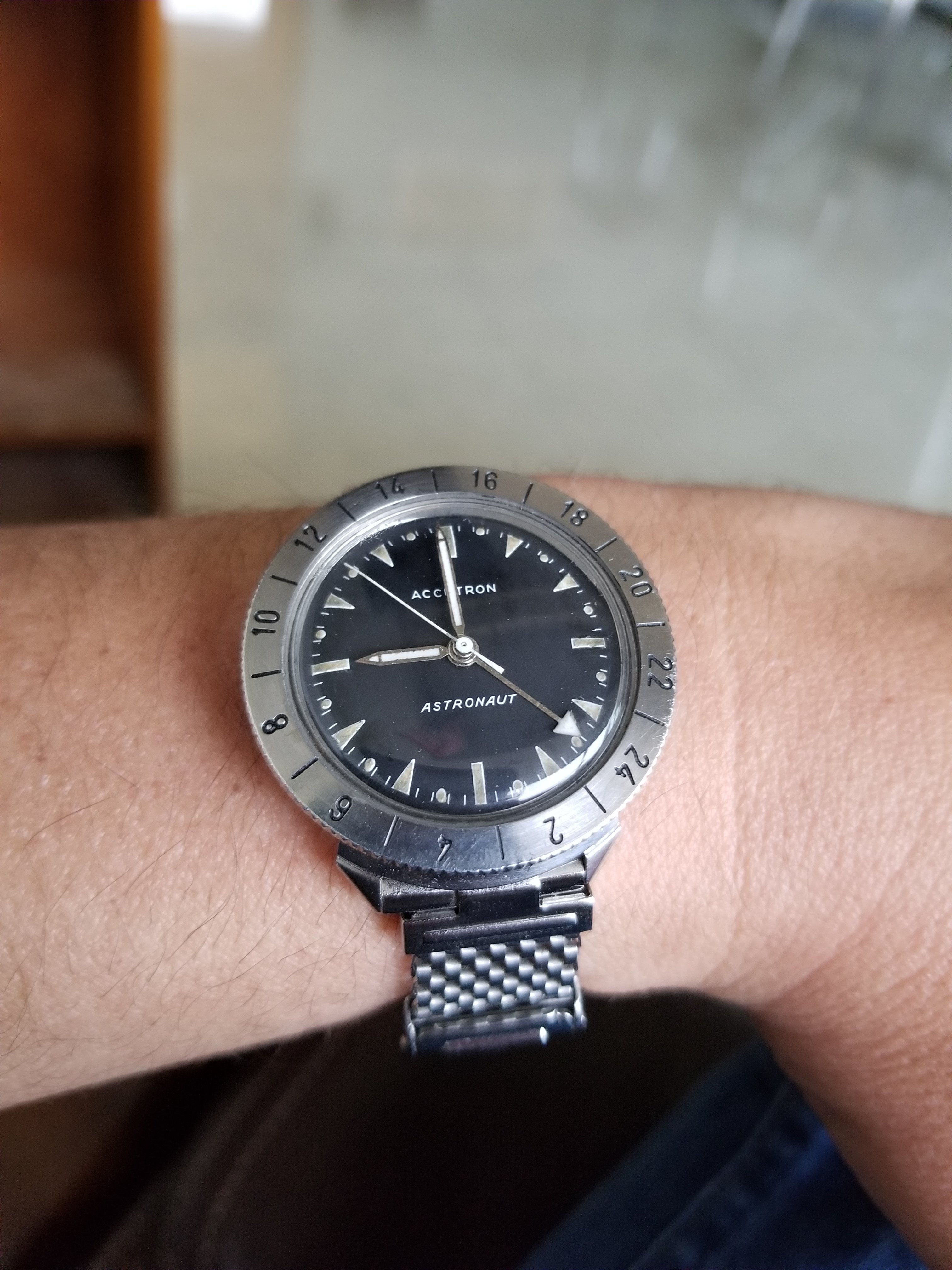 I can't believe I never posted my Astronaut on this thread since I'm so proud of it. Here's my M3 Astronaut. It has a Swiss M5 movement that the watchmaker who serviced it said was likely a service movement that was put in it back in the 60s. I'm wearing it on my new Komfit bracelet. This has become my go to watch, replacing my Constellation.