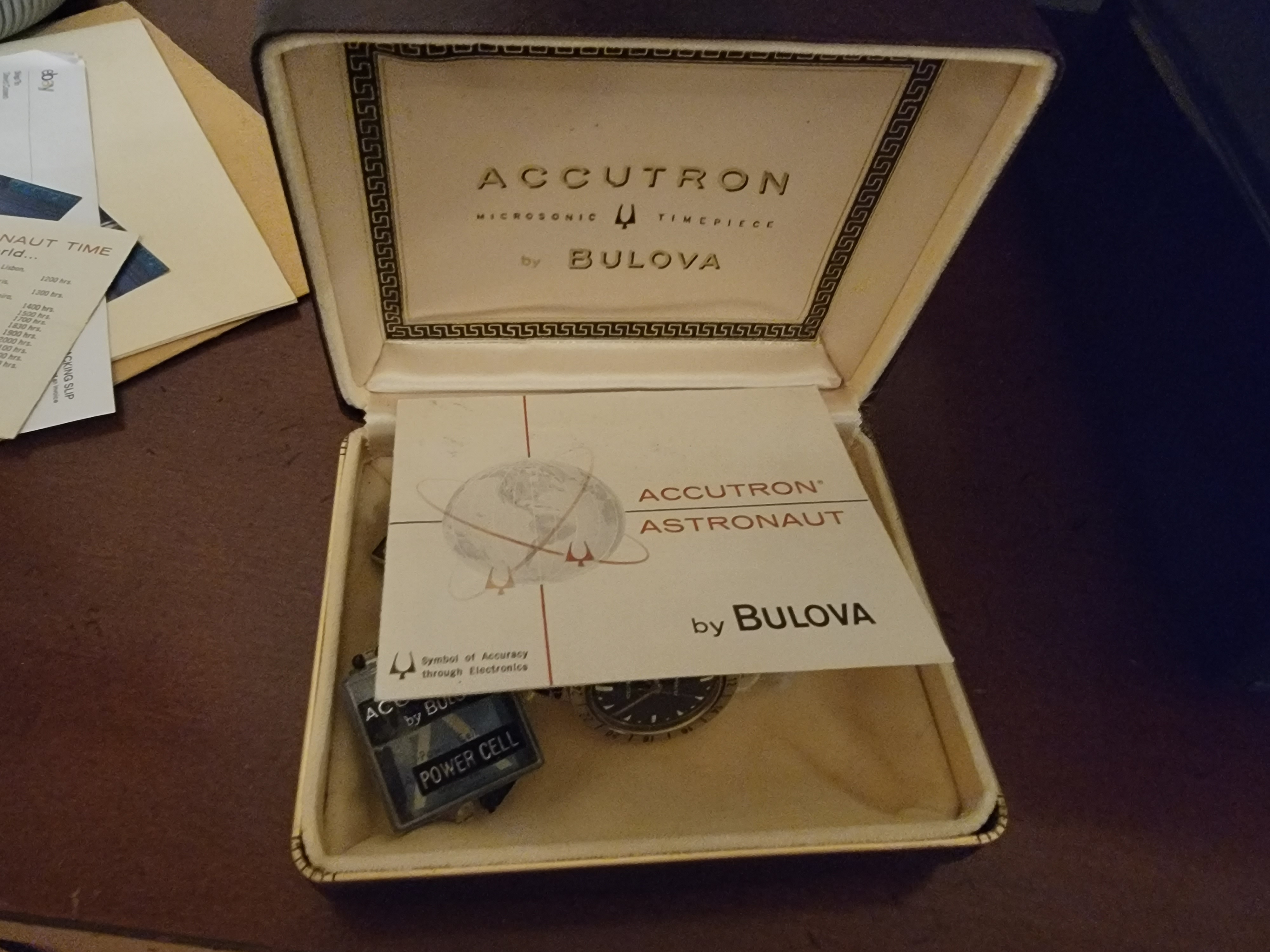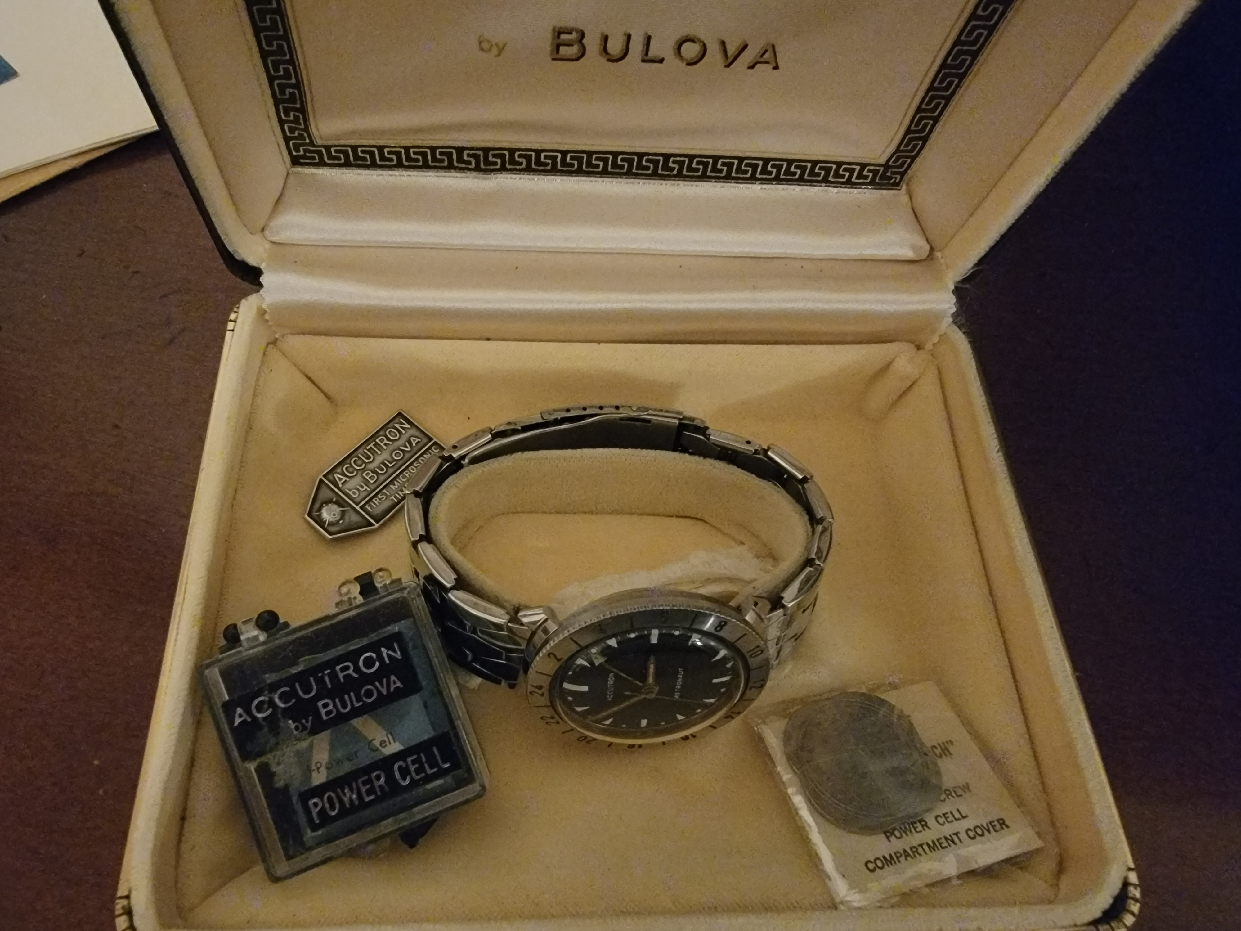 It's been said that there were between 500 and 1200 of these, based on extant serial numbers. So not many. Plus how many from 1962 are still around? The prices of these don't reflect the scarcity or the significance. The Bulova Accutron Astronaut watch itself is a pretty marvelous watch in the whole space history world. This 1962 is amazing because it's before Bulova knew that pilots were wearing their watches in the outer atomosphere, after which they added the "Astronaut" on the dial late in 62 and 63. Kindof like Omega finding out that their Speedmasters were being worn in space.