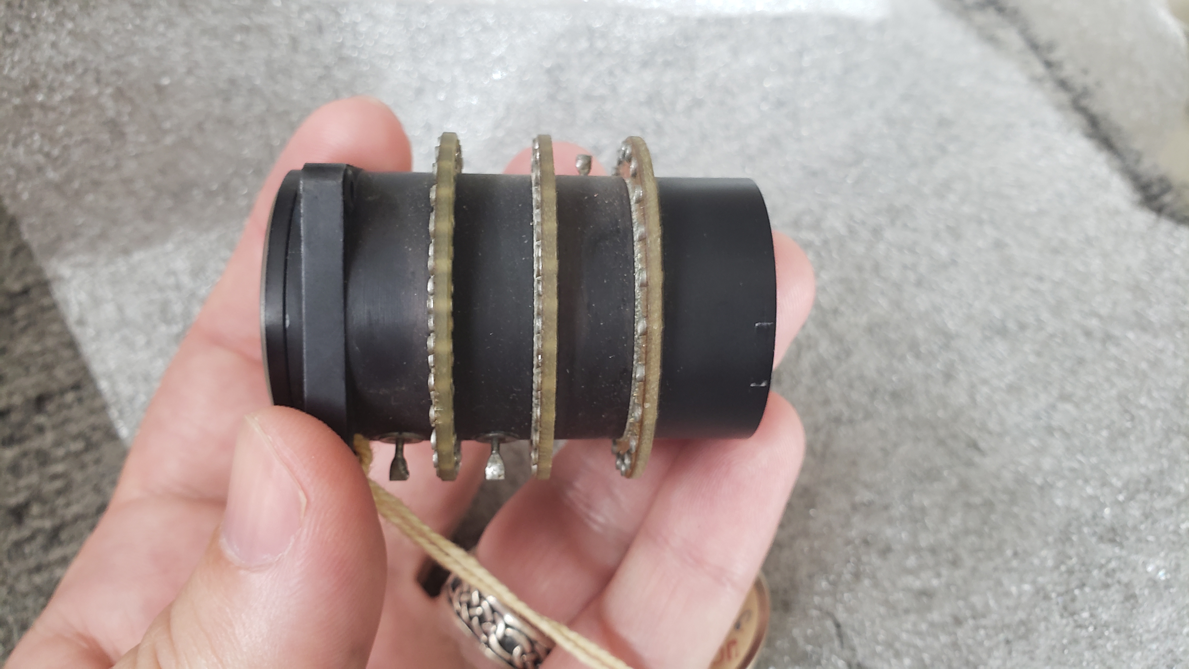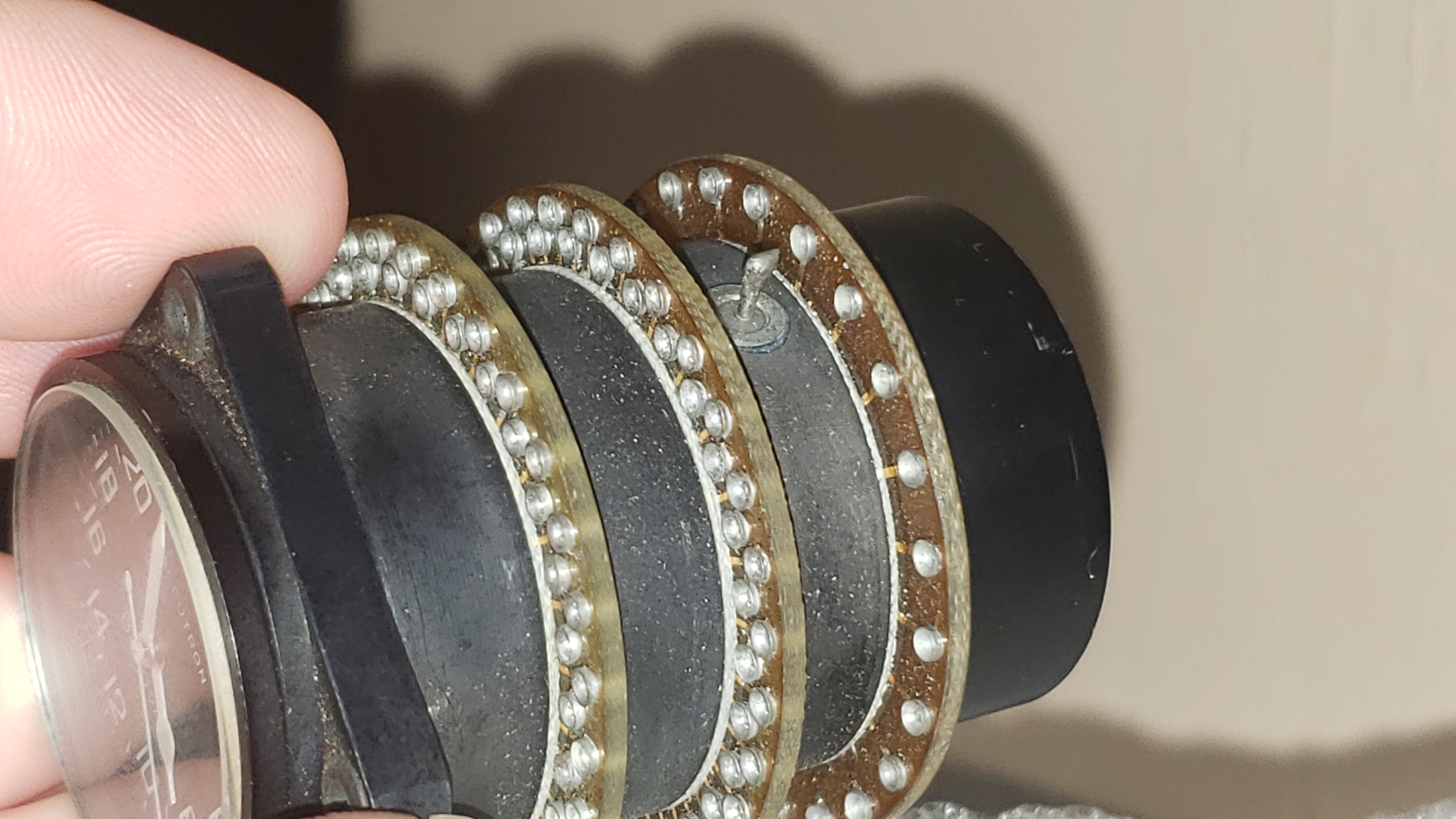 ·A gent put this on ebay, and I had to bite. This is the only other one I've seen that you can even find a picture of. All of the timer clocks were specialty orders, but this one was likely one of the more expensive variants. It weighs 116 grams. If you ordered just the clock and one module it is 65 grams and each additional module ordered is 25 grams. This clock has 3 modules. Each module has fins with wire contact points for hours, minutes, and seconds based on the number of holes. The seller got it at an estate auction and the gent's name didn't pull up anything important. The tag says it came from the Naval Ordnance Laboratory which closed down in the early 90s. The seller and the estate were in Maryland, so I believe the swing tag is true, especially since Bulova made instrument clocks and trigger timer switches for every military ordnance department. This timer clock was never installed in anything since there is no residual solder on any of the contact points. I also made a little case for it so I can protect the fins.