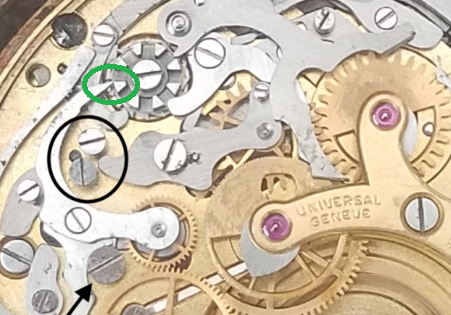 If you tighten SS-1 and the coupling yoke can't move over to work the chronograph, then you either have the wrong screw in this location or the coupling yoke is bent/damaged. It is very easy to mix these screws up as a lot of them are similar.