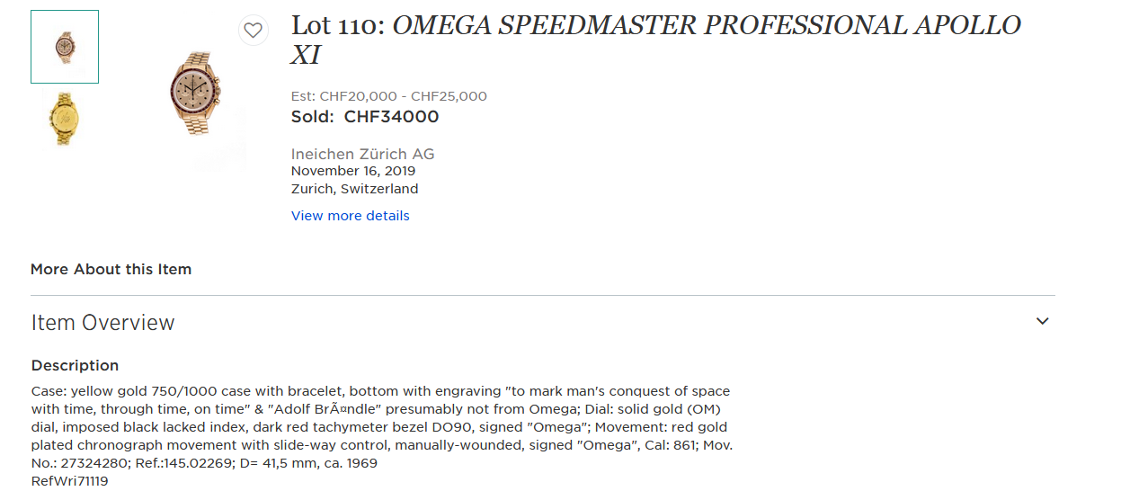 Good point, but getting an expensive EoA one should expect to get some more information about the watch, which is after all an expensive Gold Apollo Tribute chronograph... Can't believe Omega HQ doesn't have a complete & detailed listing of all VIP who received such a Gold Apollo tribute Speedmaster !