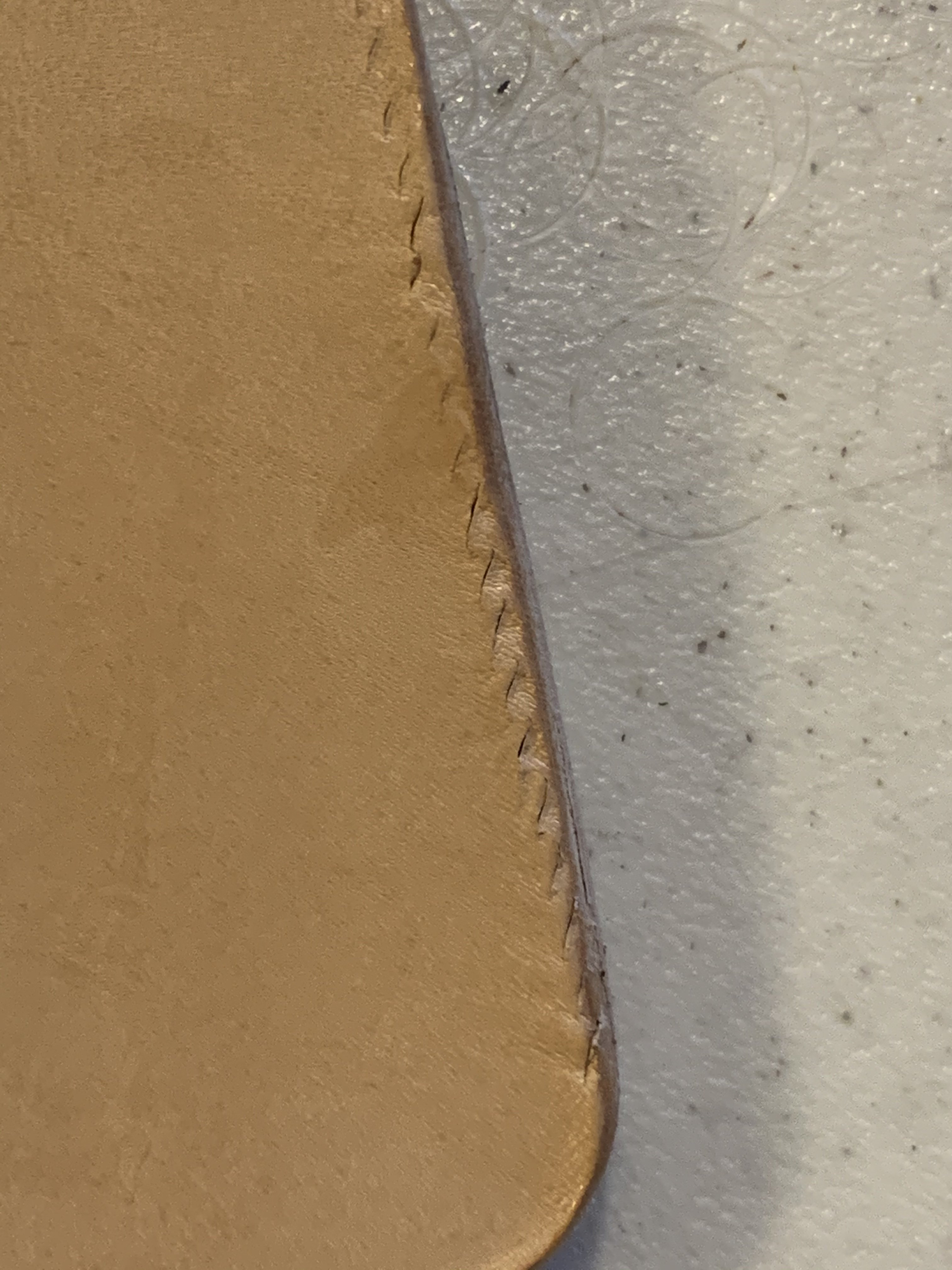 I guess I had my stitching chisel on an angle so I ended up coming out too close to the edge on the far side
