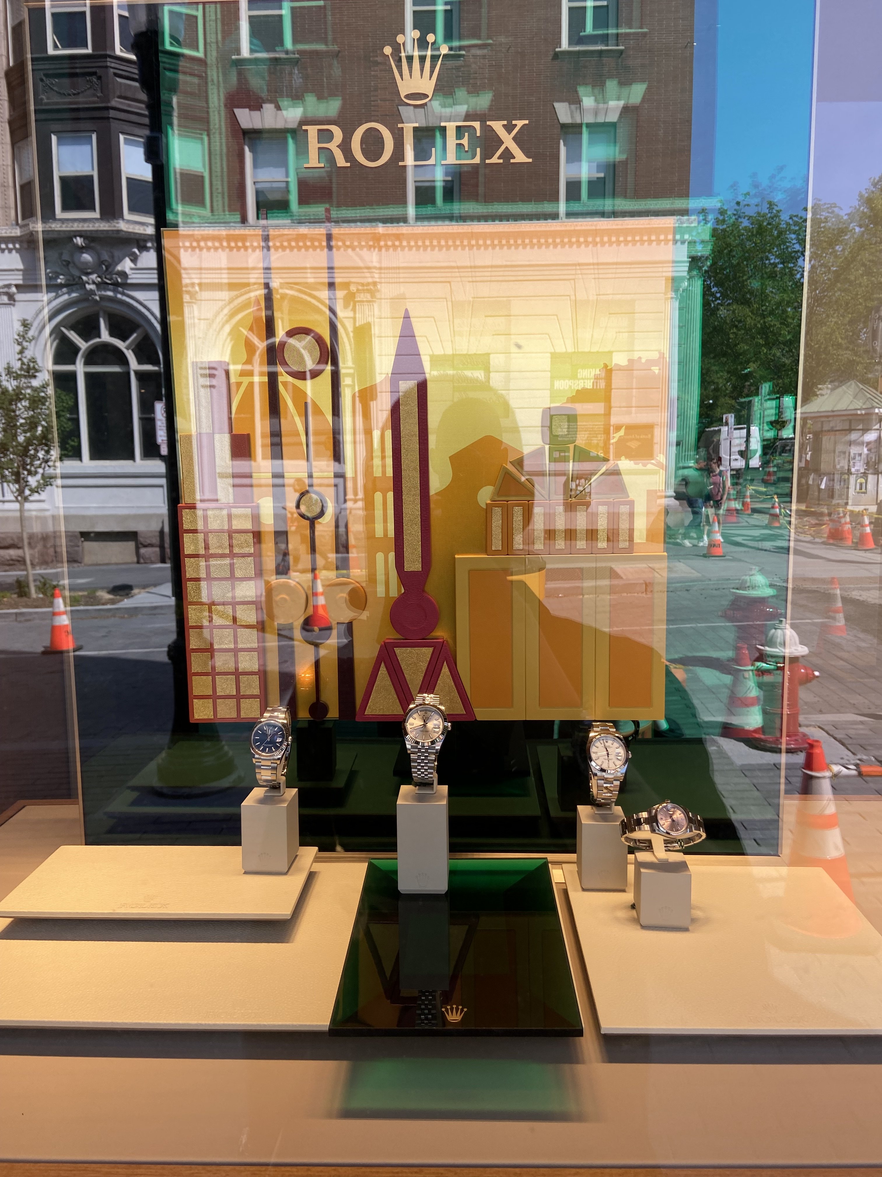 And here is where things get interesting. It’s definitely more hoity-toity than last time I was there about 5 years ago. I understand their clientele and appreciate their professionalism but I finally experienced that Rolex stuff people talk about. No pictures allowed inside lest we be casing the joint. Not a big deal. Glad I asked first. After Dubya bounced I asked to try on a DateJust. I didn’t present myself as anything other than a tire kicker and the SA was polite but clearly didn’t want to be talking to me. Commented on my double watches but didn’t care about what I had. I tried being as friendly, laid back, and gracious as possible. Na, apparently we were at a funeral. In the past I’ve gone there and they happily opened the cases like at H1912 even though I told them I’m just looking. Showed interest, etc. I’m assuming she had other clients and was rushed. Oh well. So I tried on the DateJust 36 blue dial on jubilee and yea, I love it. Fits great. Not as big as the pictures online. I could go new. 😀 @SC1 you done F’d up. 😉 Jk.