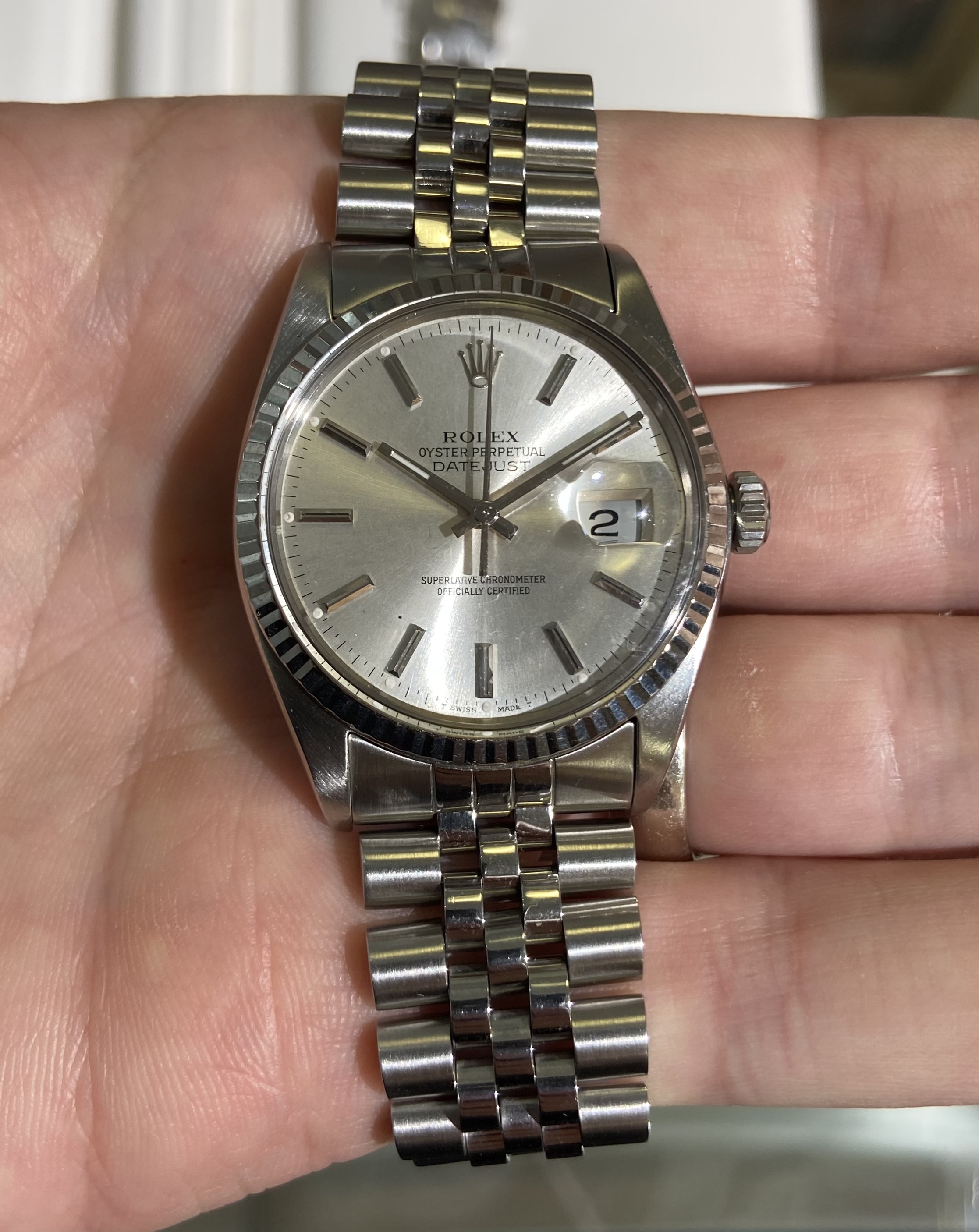 Killing me with the DateJust. The 1601 is my favorite but the bracelet was clapped out. One of the 1603s (right side) had I believe she said a rare ivory dial.