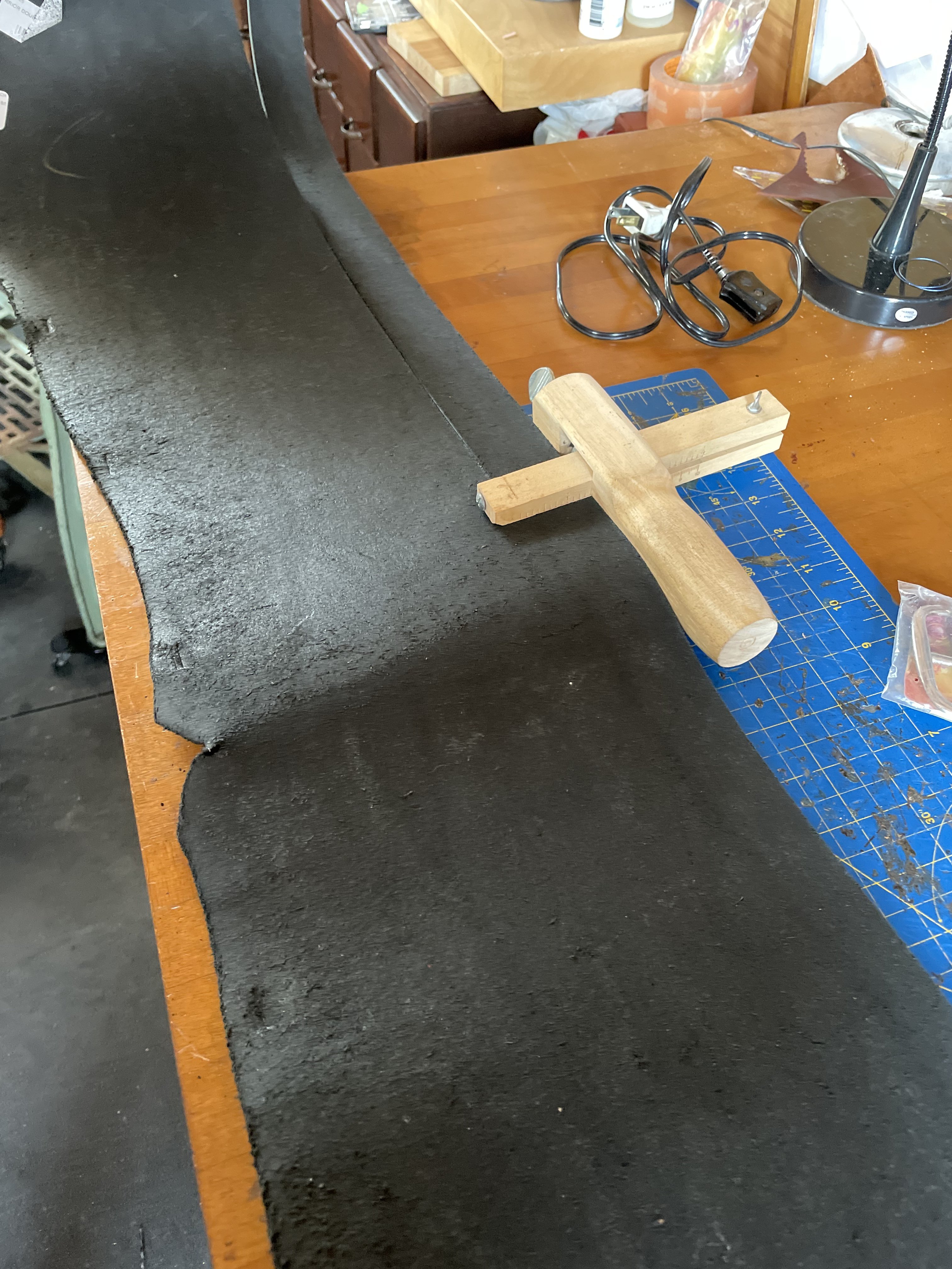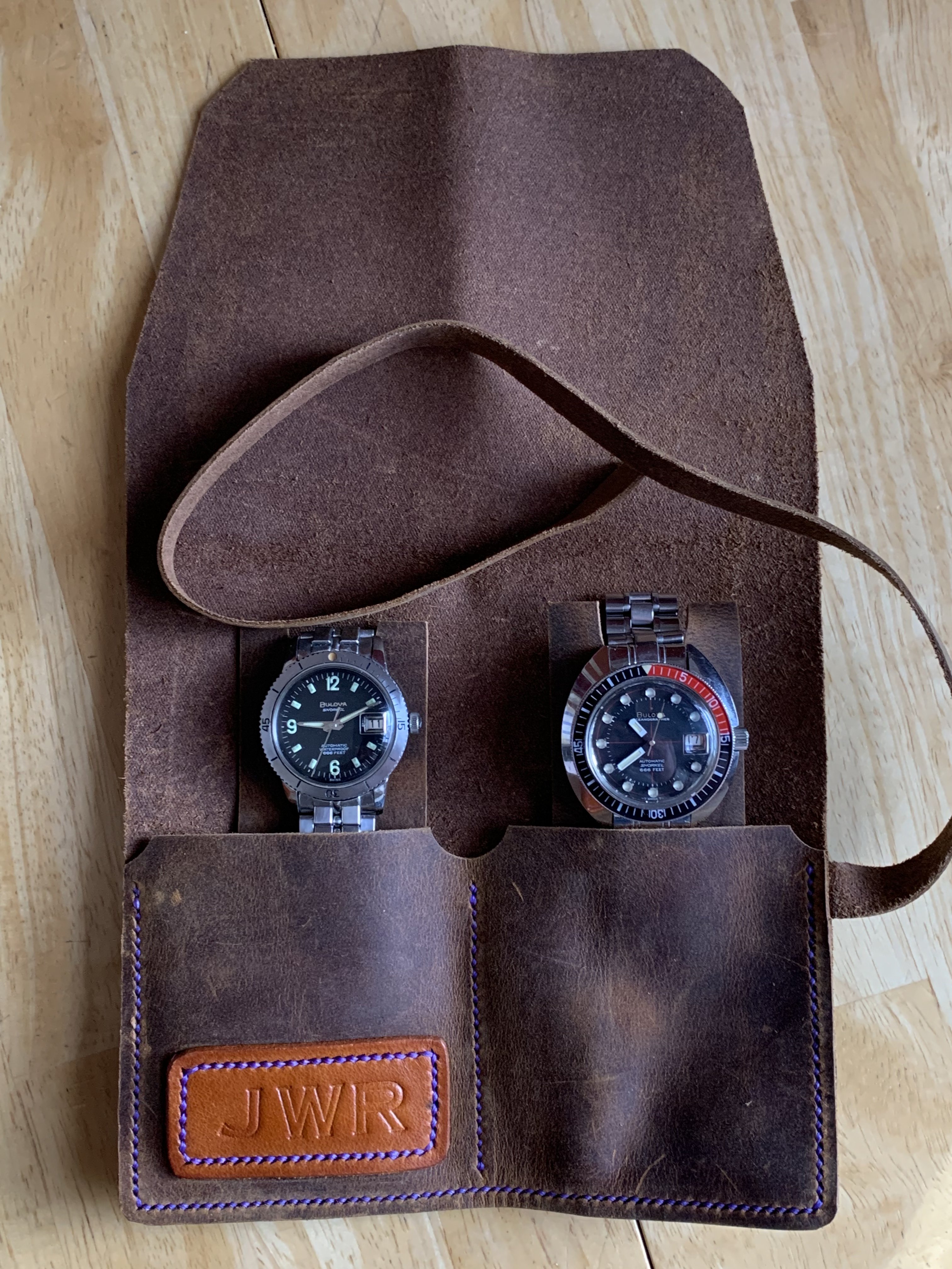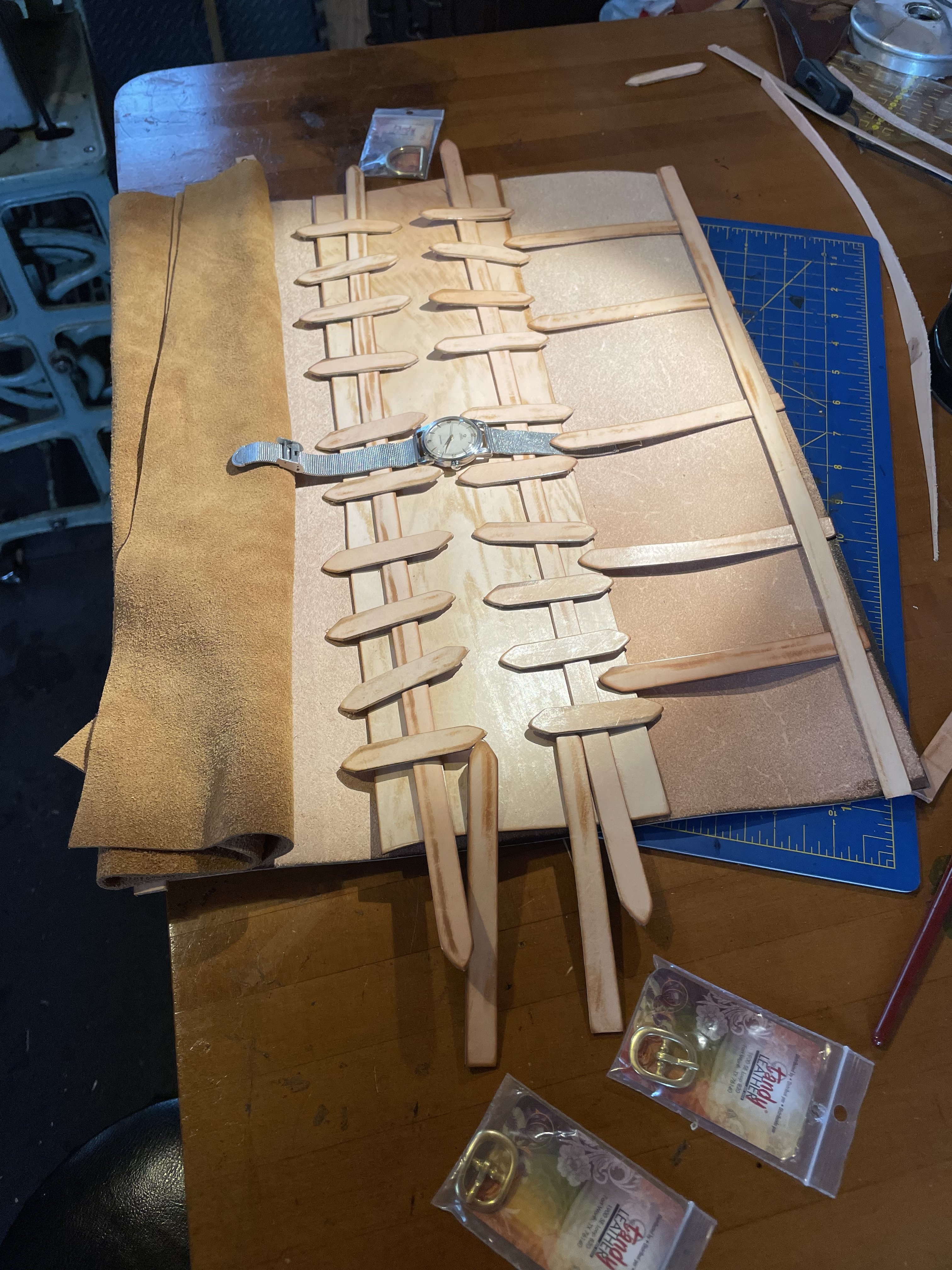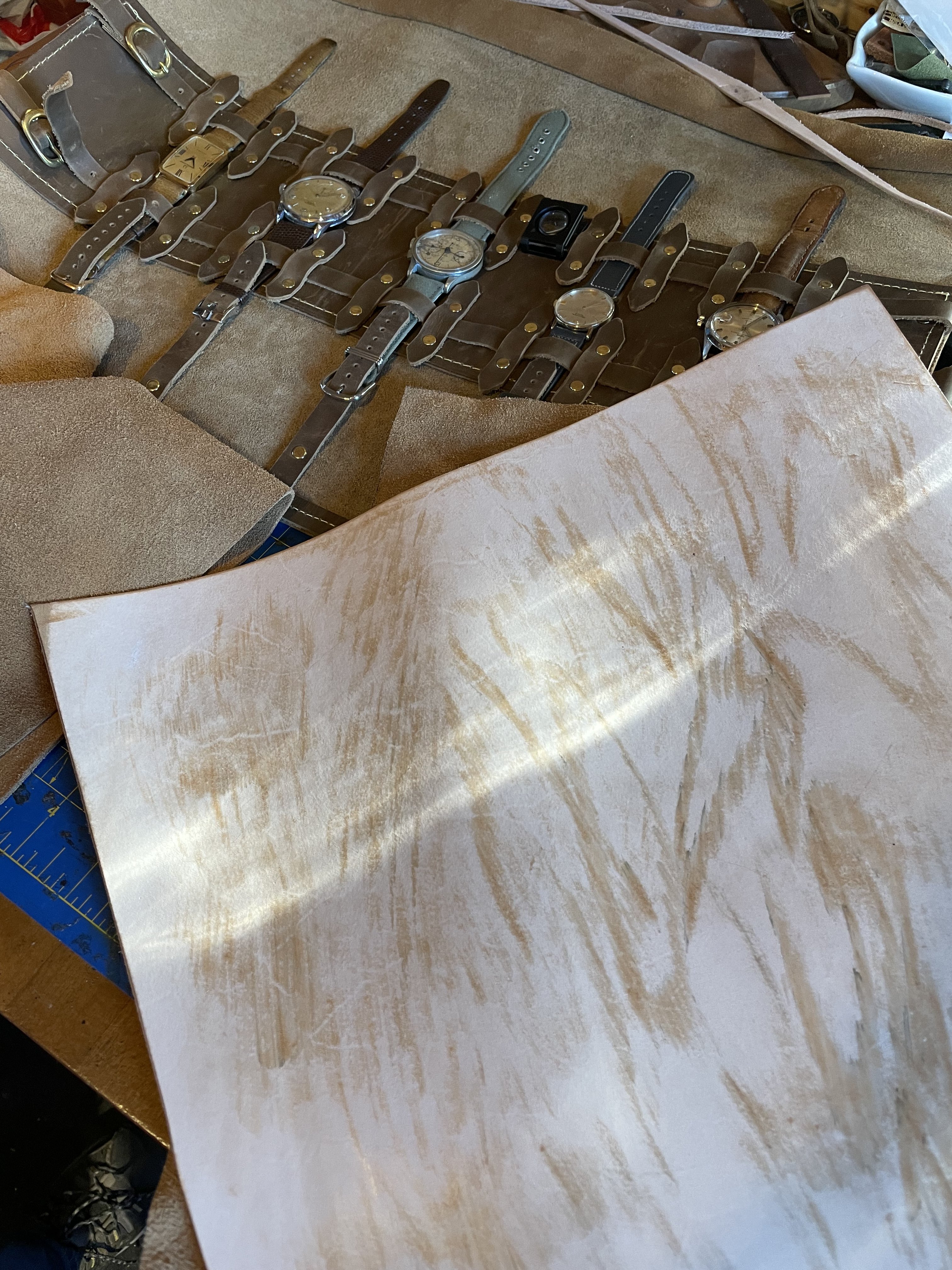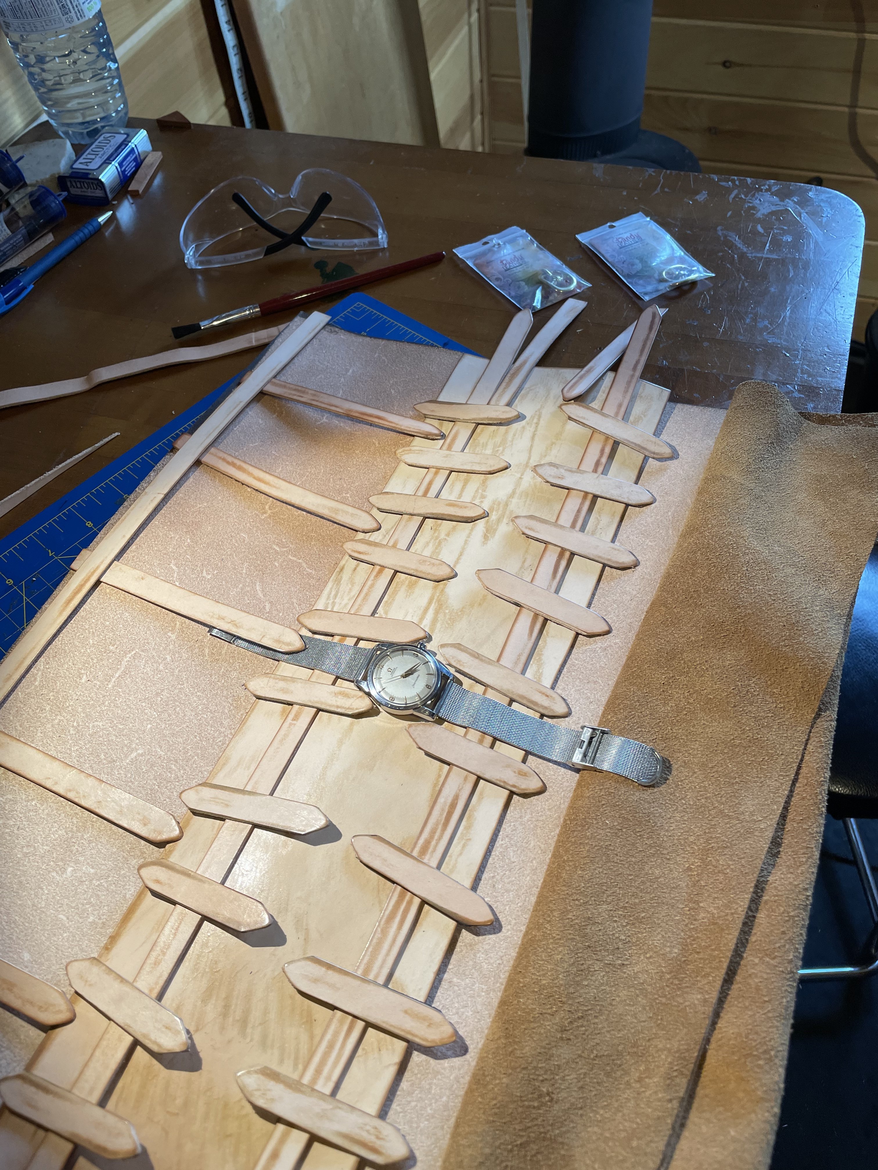 I was at my local leather shop on the weekend and they had a special order of ostrich legs on sale. I have some acrylic watch strap templates inbound, and thought that making her an alternate watch strap would be a great first project for the templates. Won’t this blue pull out those daggers and the crown nicely