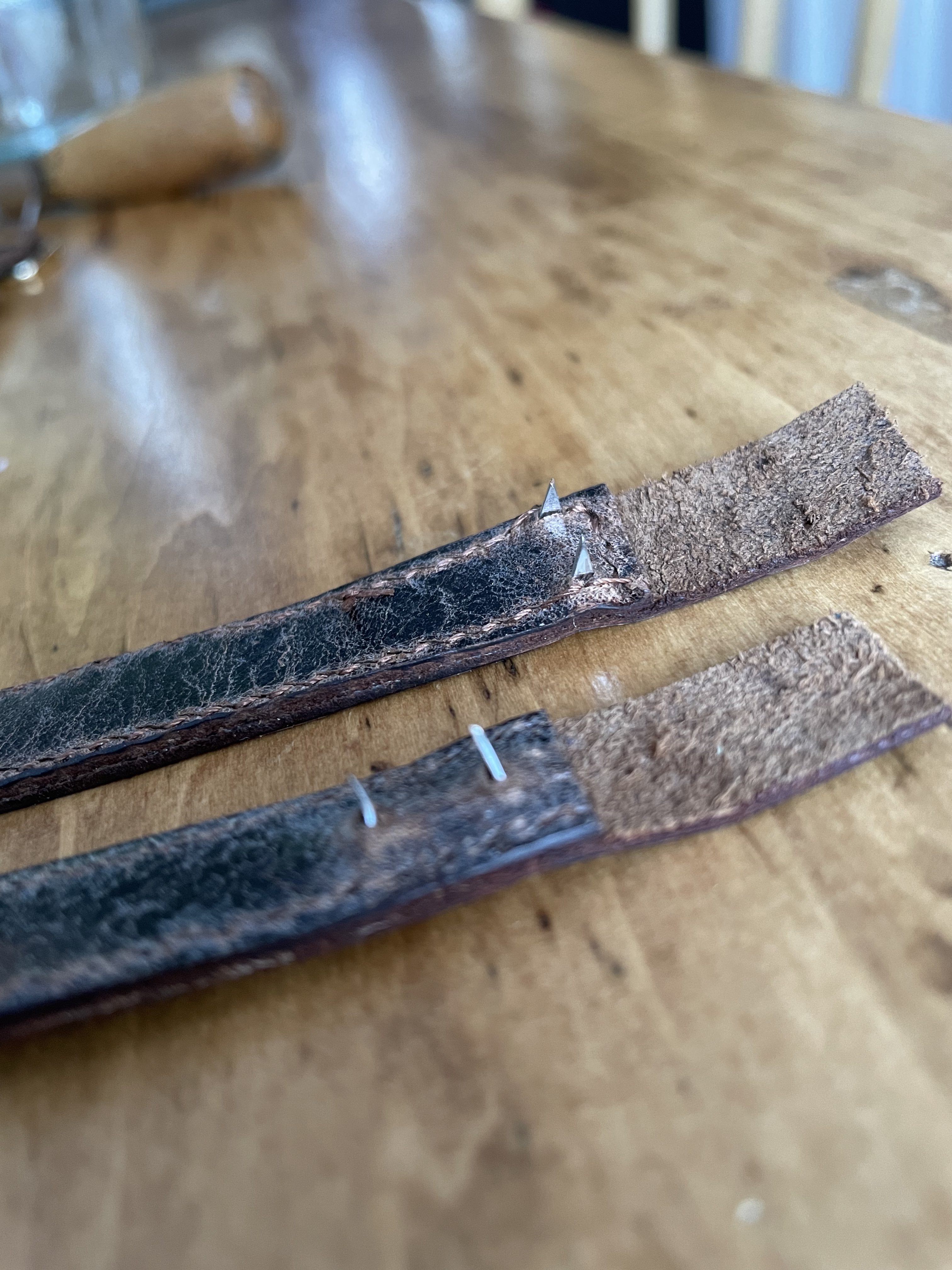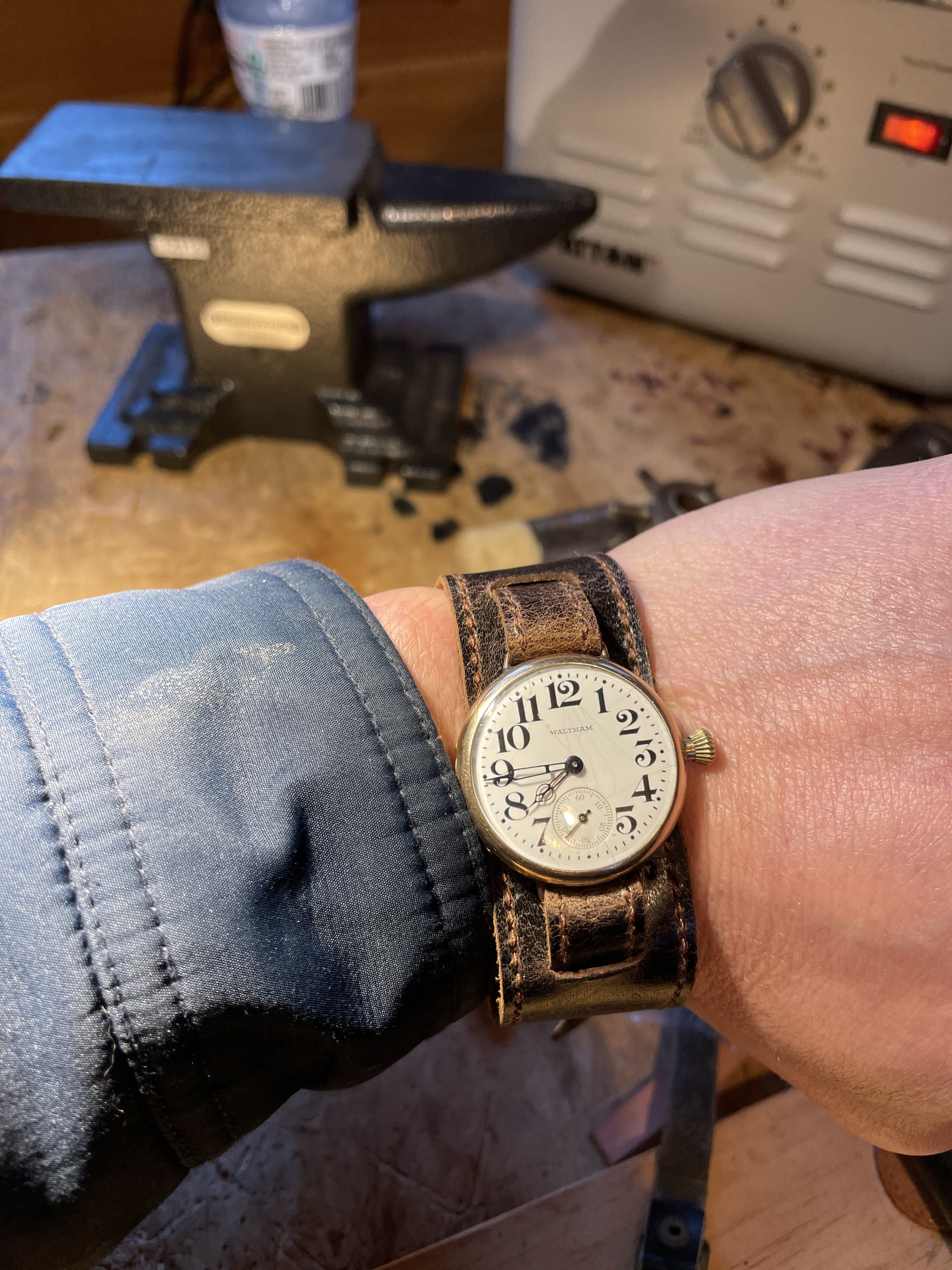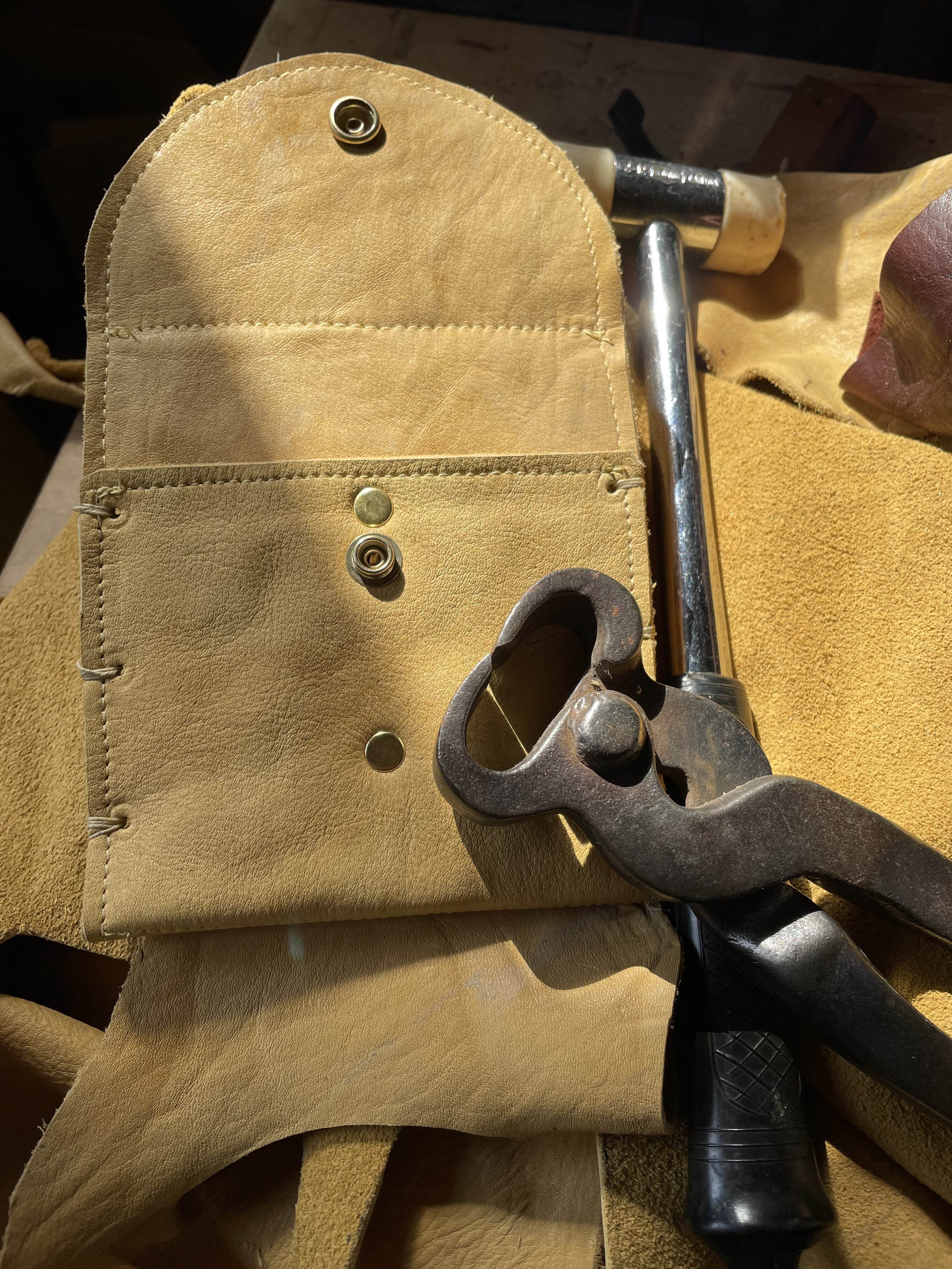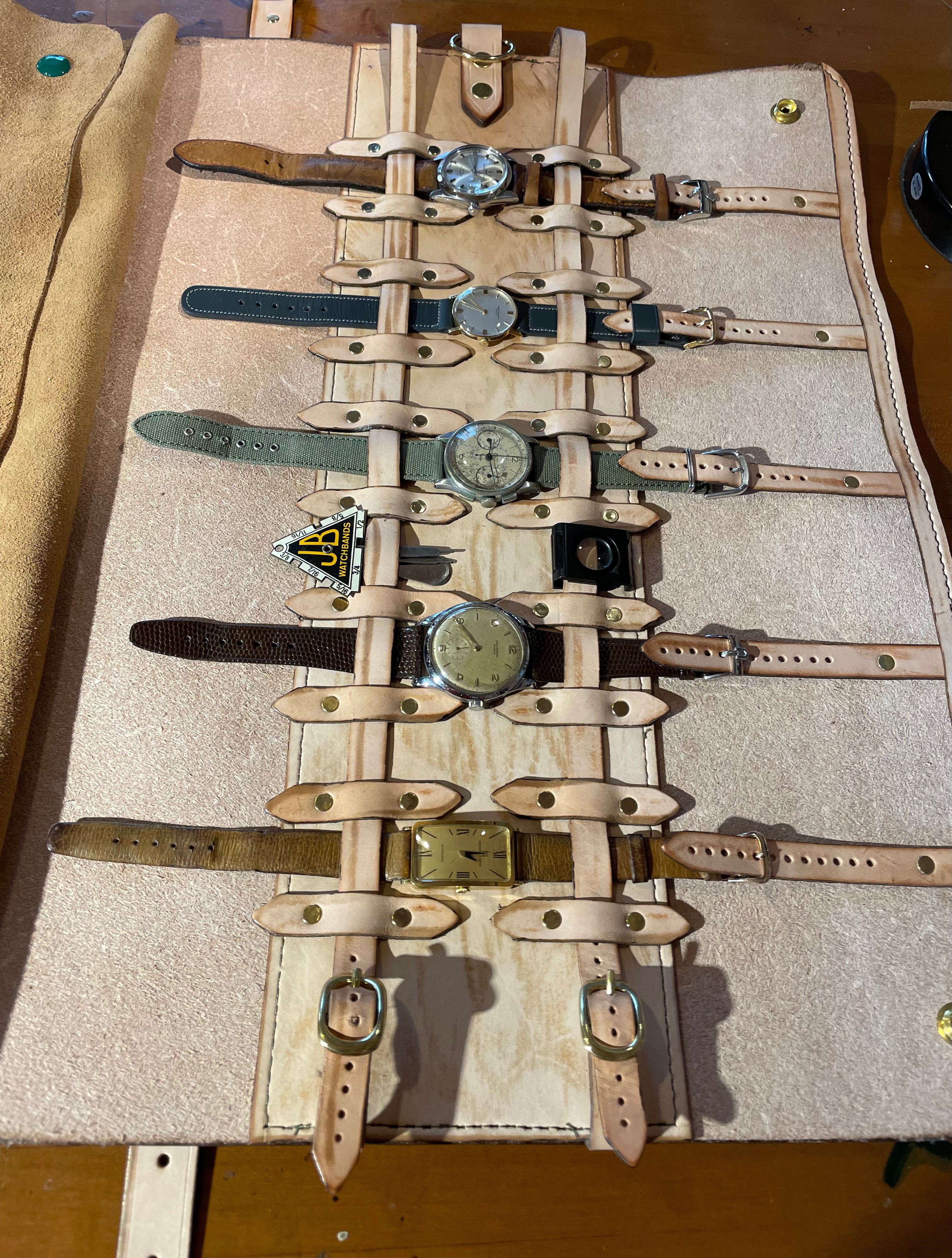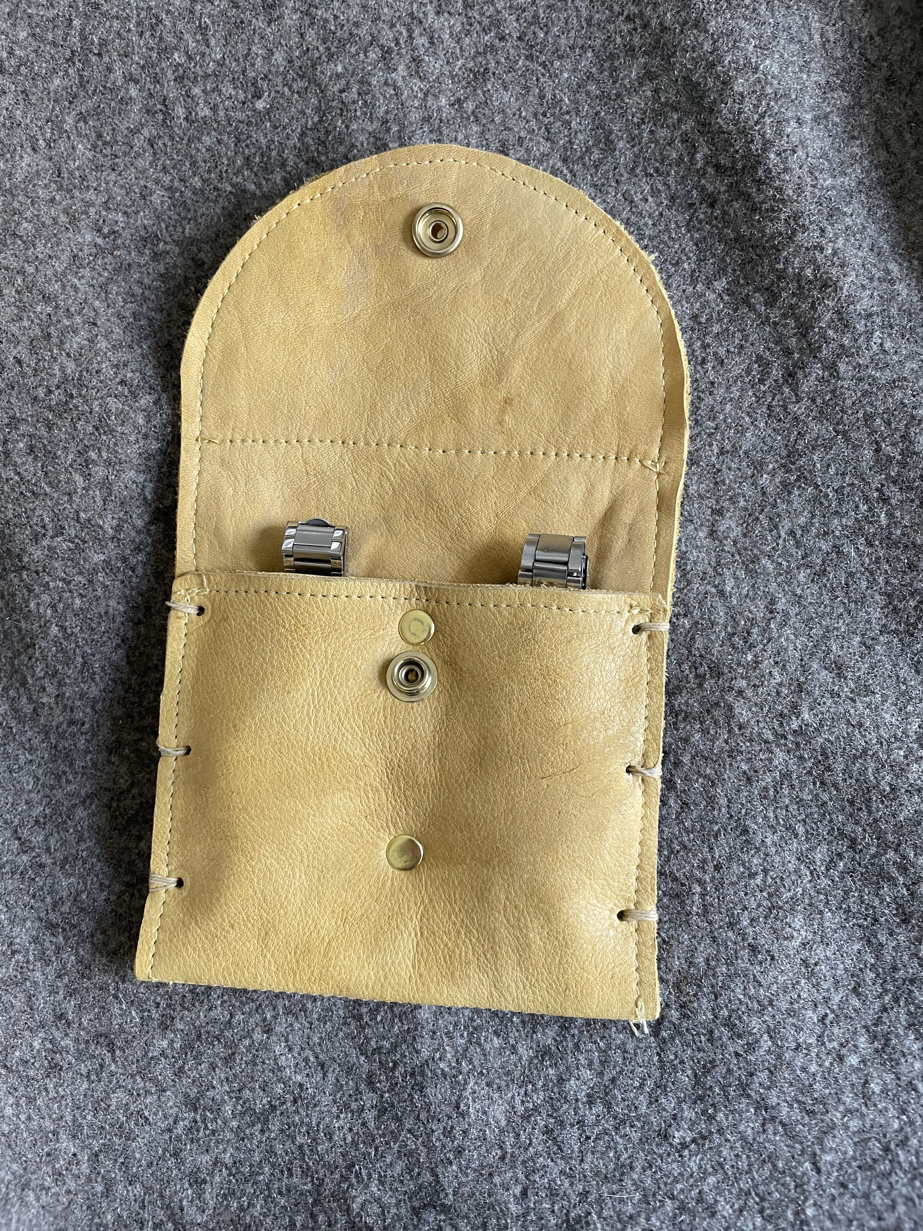 Today was an adventure that I hope will never be tested. Look, I am no Brain Scientist or Rocket Surgeon (wink wink) and this may have been a useless exercise but it was fun anyway. I’ve had this fire retardant document bag for a while and it’s been falling apart - fraying at the edges and becoming pretty useless. I also had this old deer skin, so I decided to make a two-watch pouch lined with the fire retardant material. I suppose it would help if inside a 30 minute fire resistant safe, but the crystal and other parts of the watch would likely melt, right? My Adler 30 sewing machine made easy work of two layers of deer hide but I was not convinced that it would handle four, so I used rivets to fold and hold the front compartments together. The rivets made the compartments too tight, so I removed them with this monster. Now I have glued the sides of the compartments and used heavy waxed thread in the rivet holes. Perfect prototype! Gonna make one more!