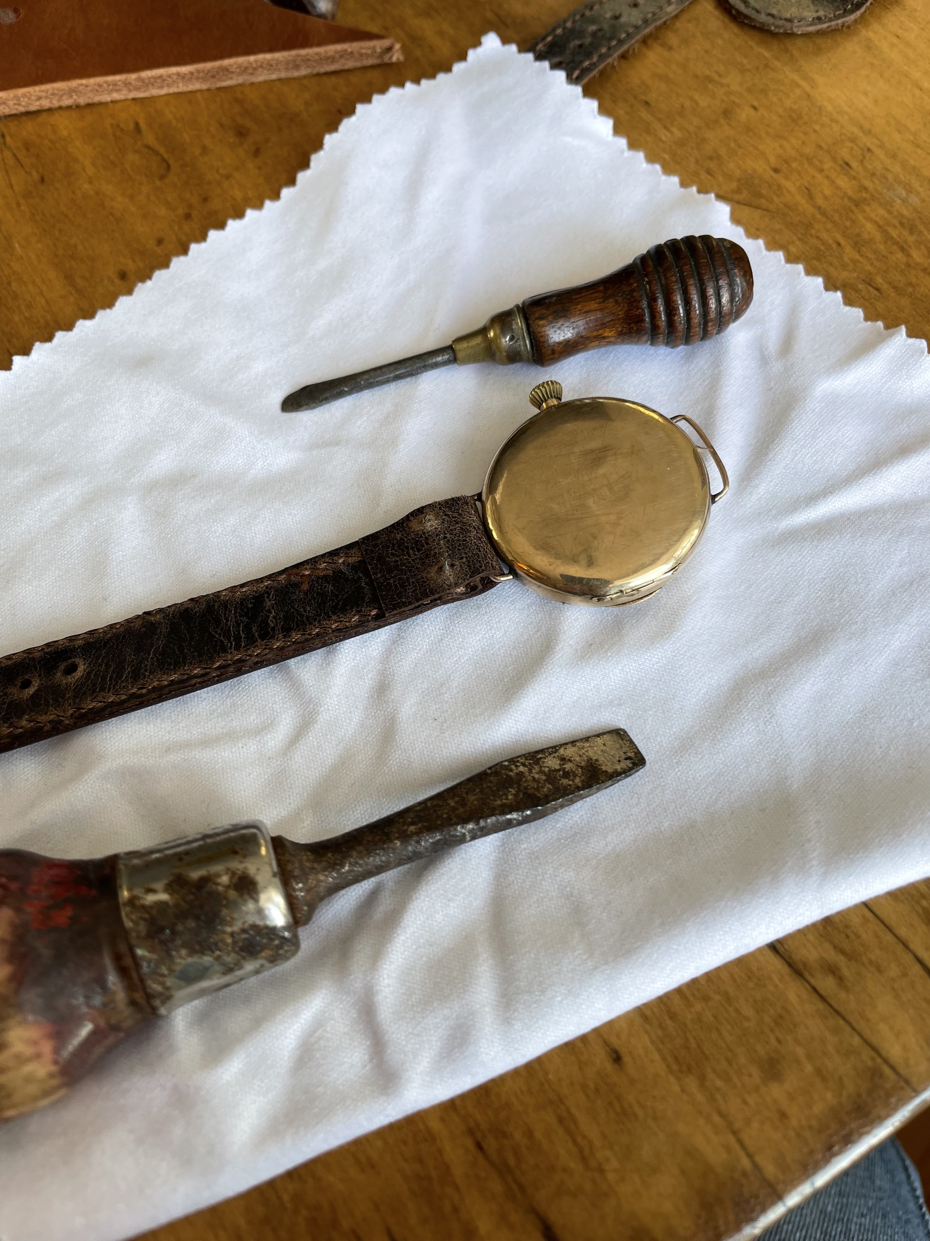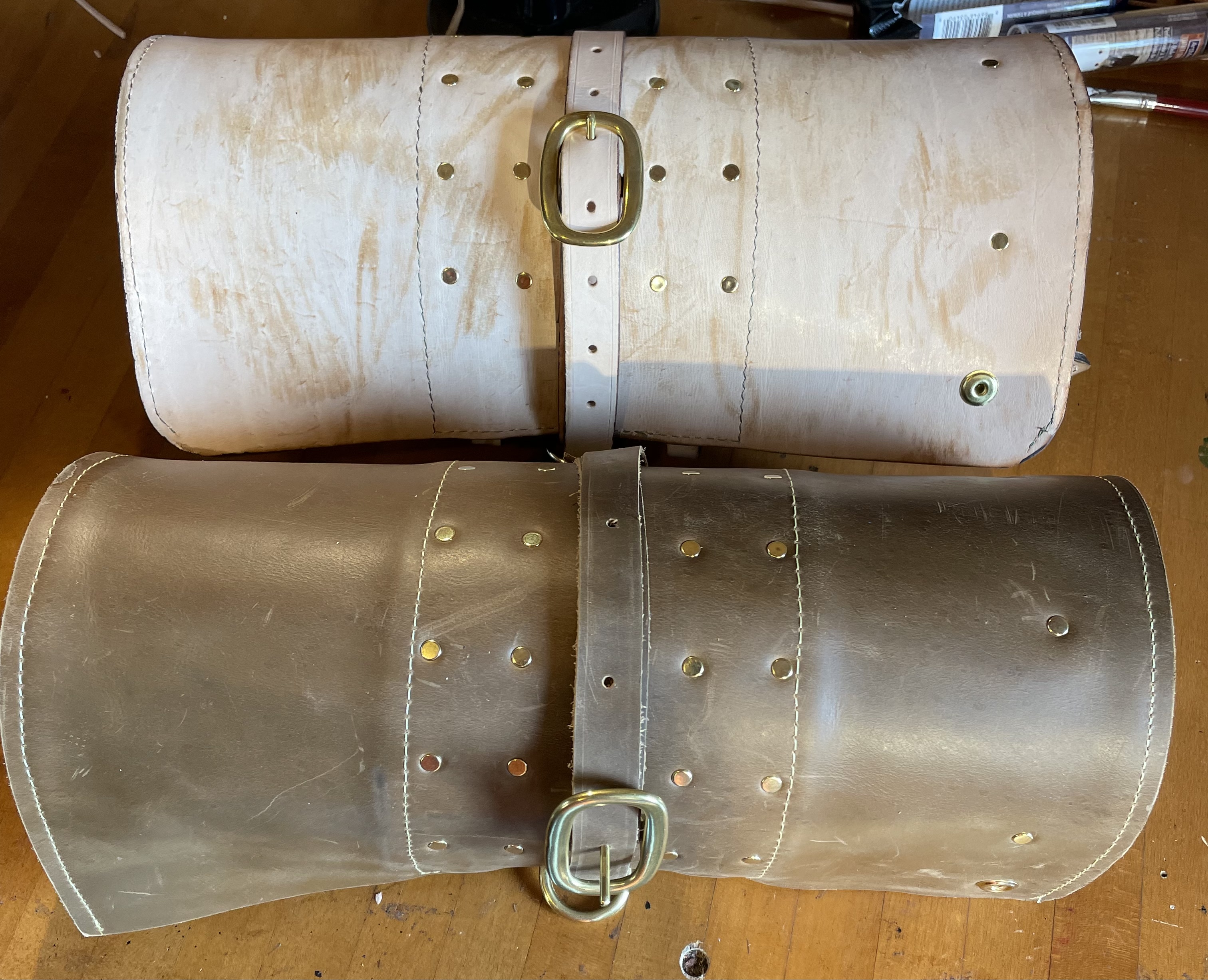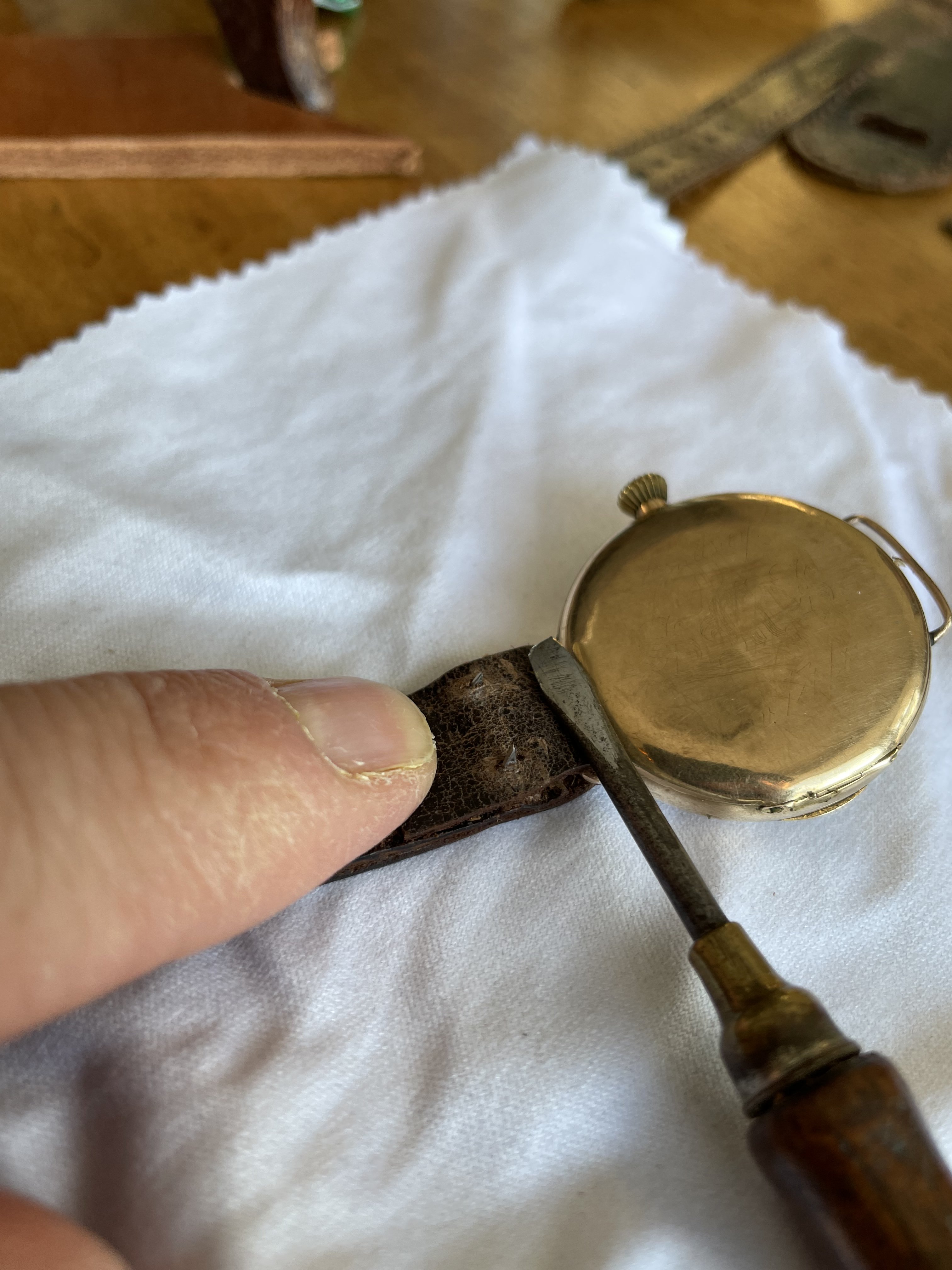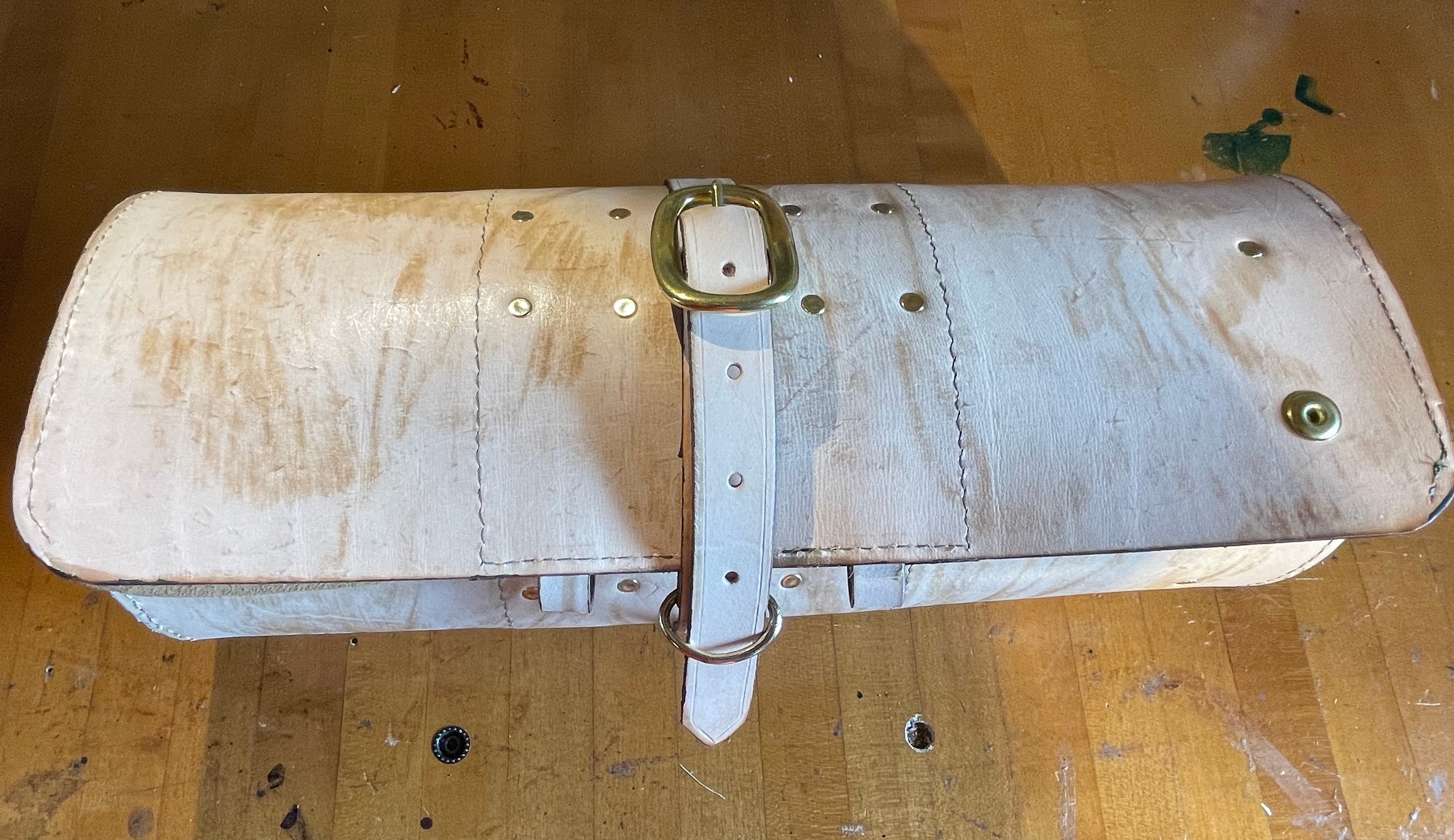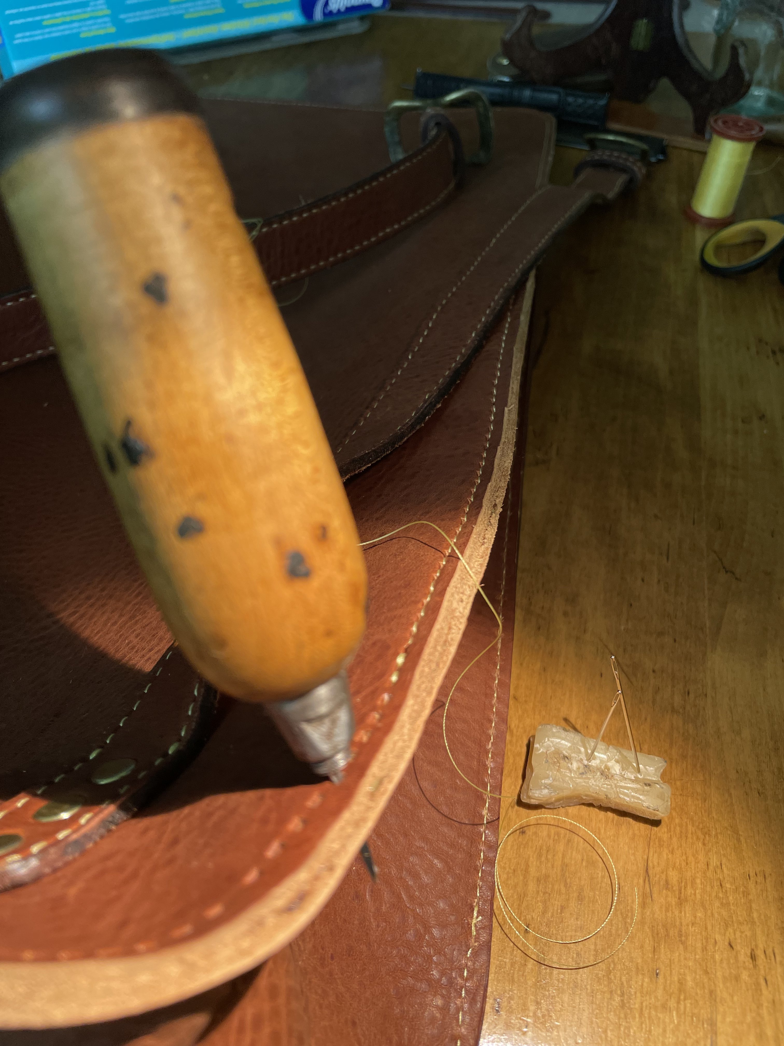 Today was an adventure that I hope will never be tested. Look, I am no Brain Scientist or Rocket Surgeon (wink wink) and this may have been a useless exercise but it was fun anyway. I’ve had this fire retardant document bag for a while and it’s been falling apart - fraying at the edges and becoming pretty useless. I also had this old deer skin, so I decided to make a two-watch pouch lined with the fire retardant material. I suppose it would help if inside a 30 minute fire resistant safe, but the crystal and other parts of the watch would likely melt, right? My Adler 30 sewing machine made easy work of two layers of deer hide but I was not convinced that it would handle four, so I used rivets to fold and hold the front compartments together. The rivets made the compartments too tight, so I removed them with this monster. Now I have glued the sides of the compartments and used heavy waxed thread in the rivet holes. Perfect prototype! Gonna make one more!