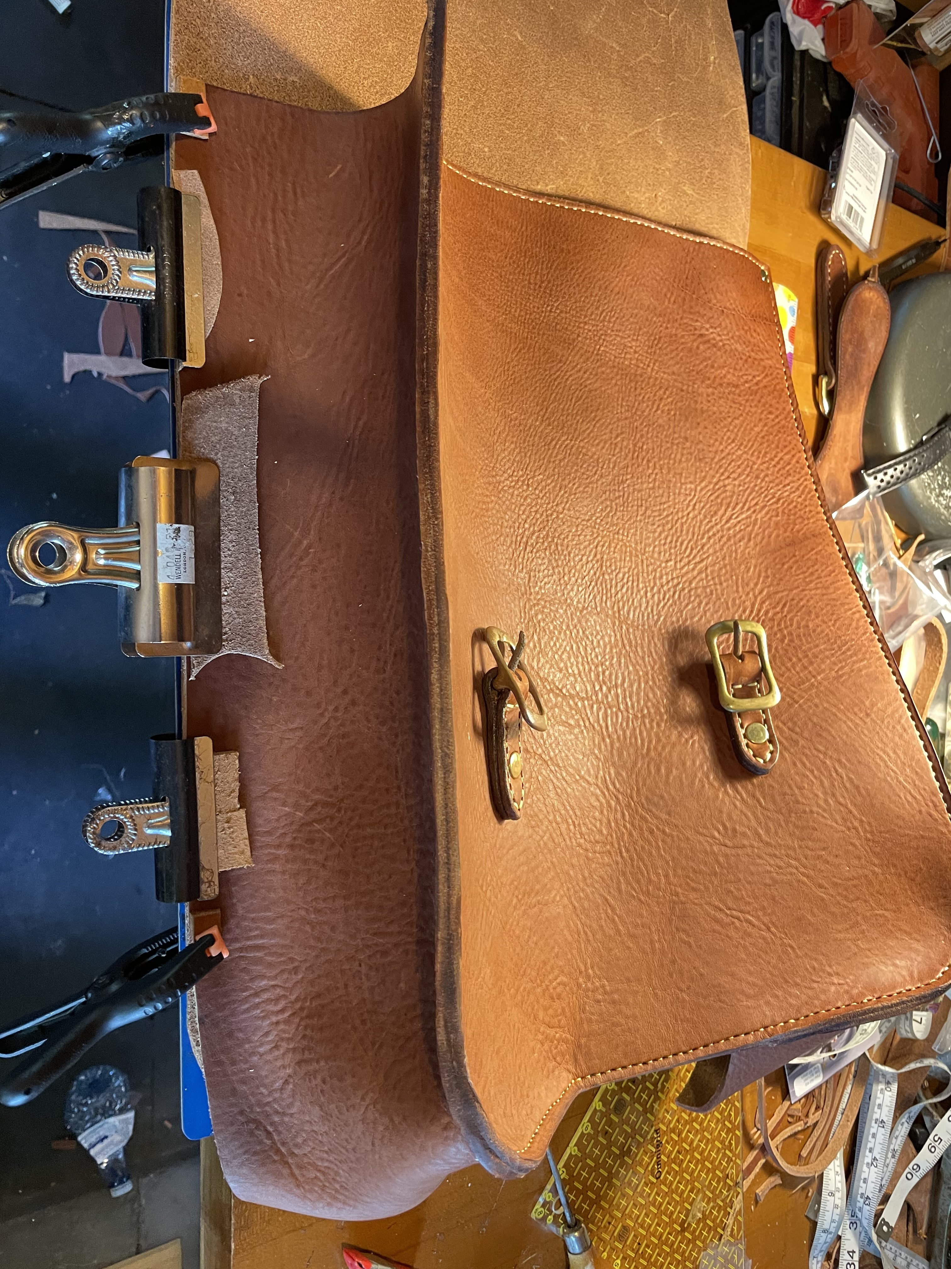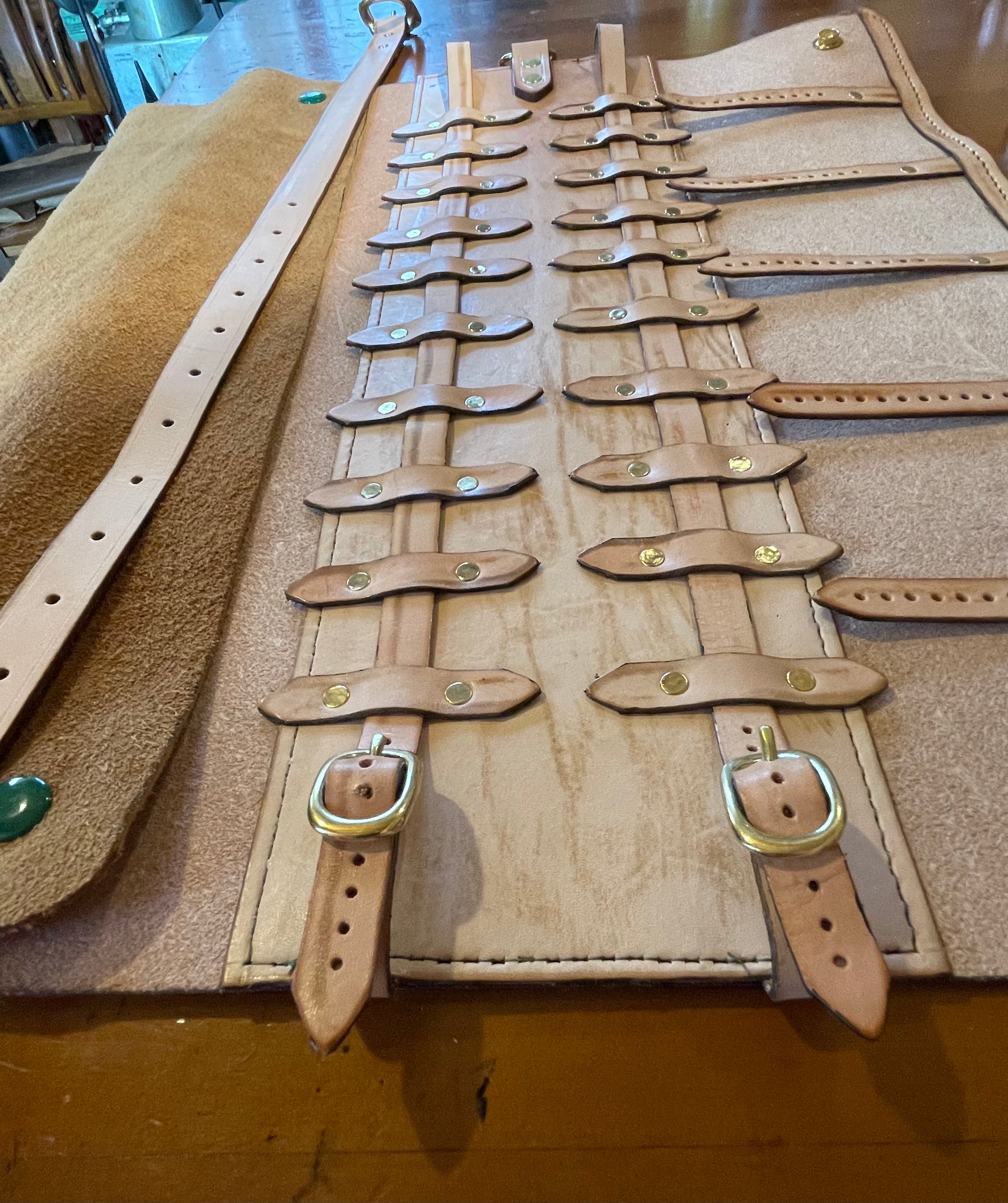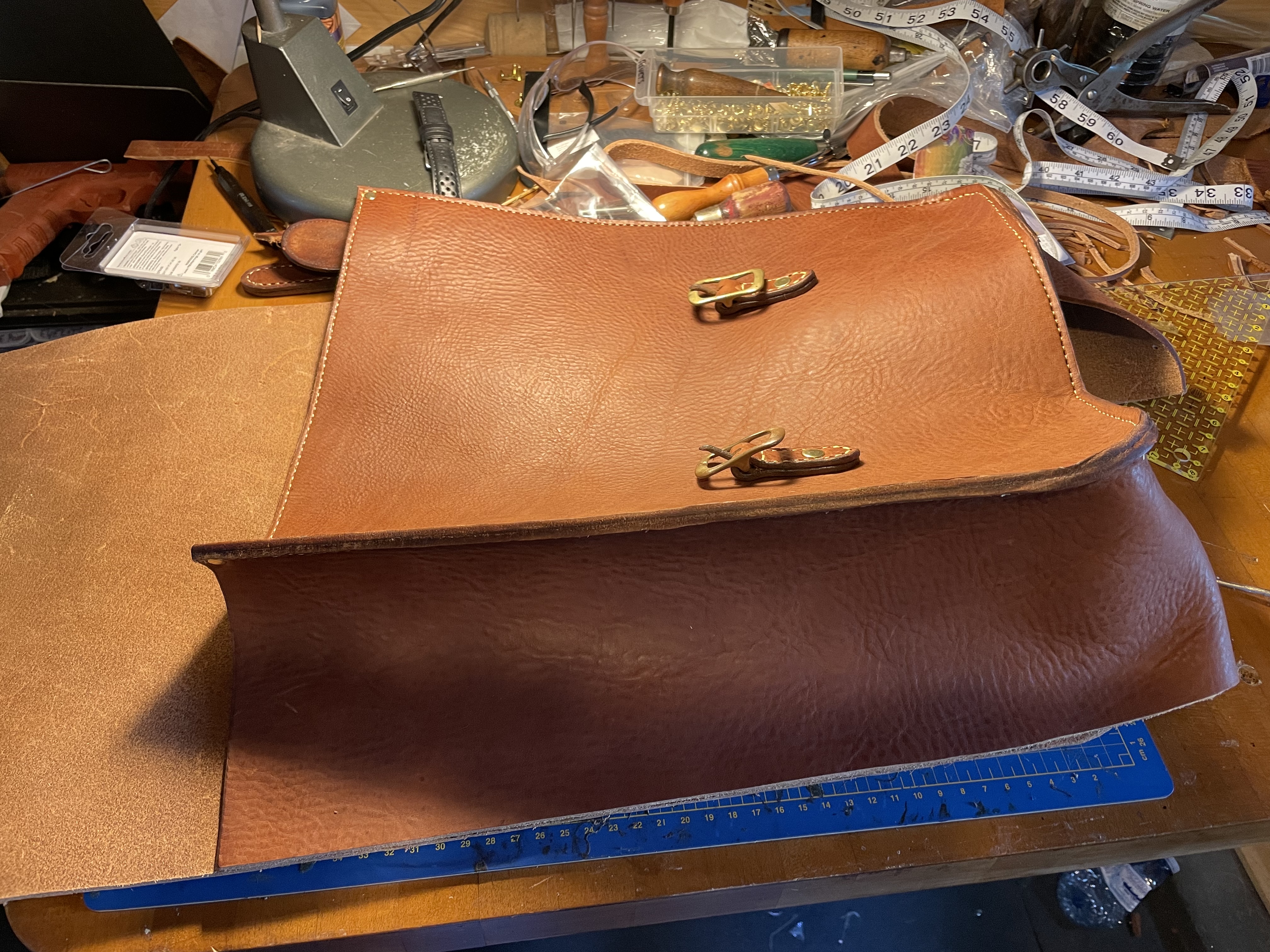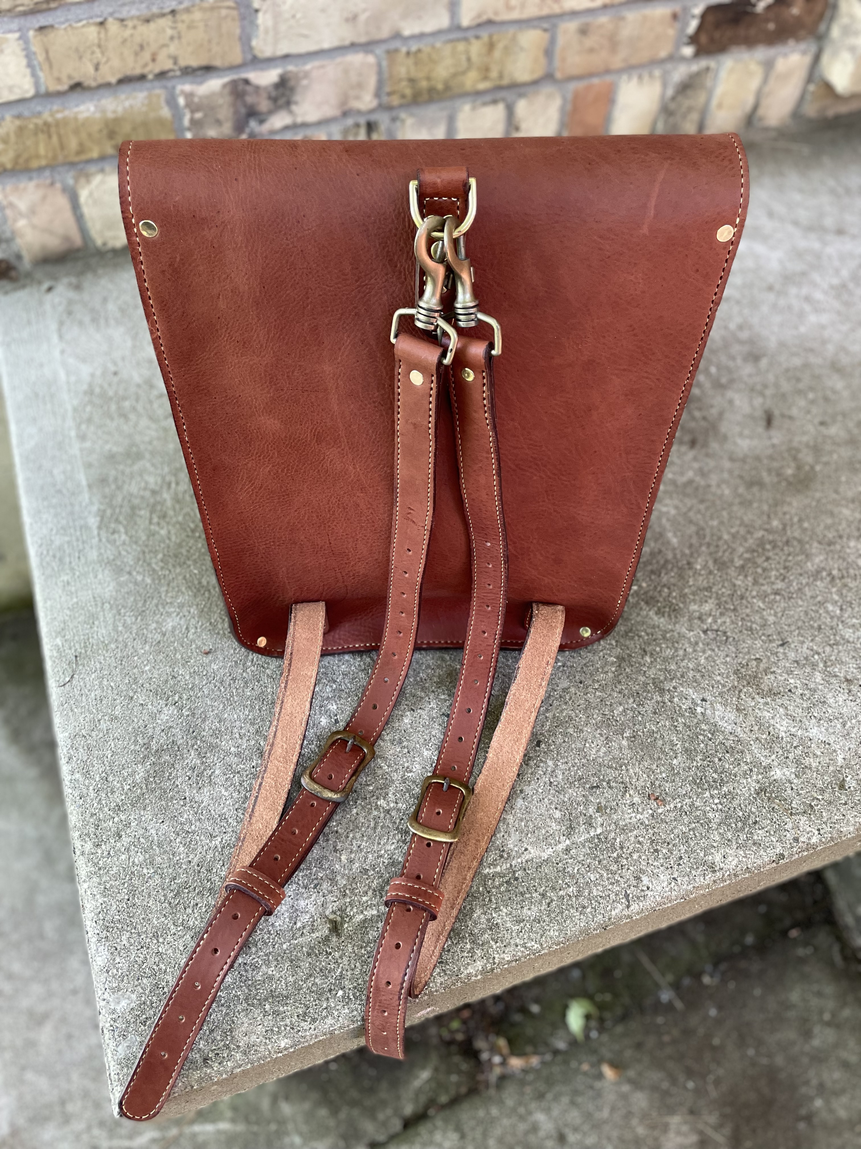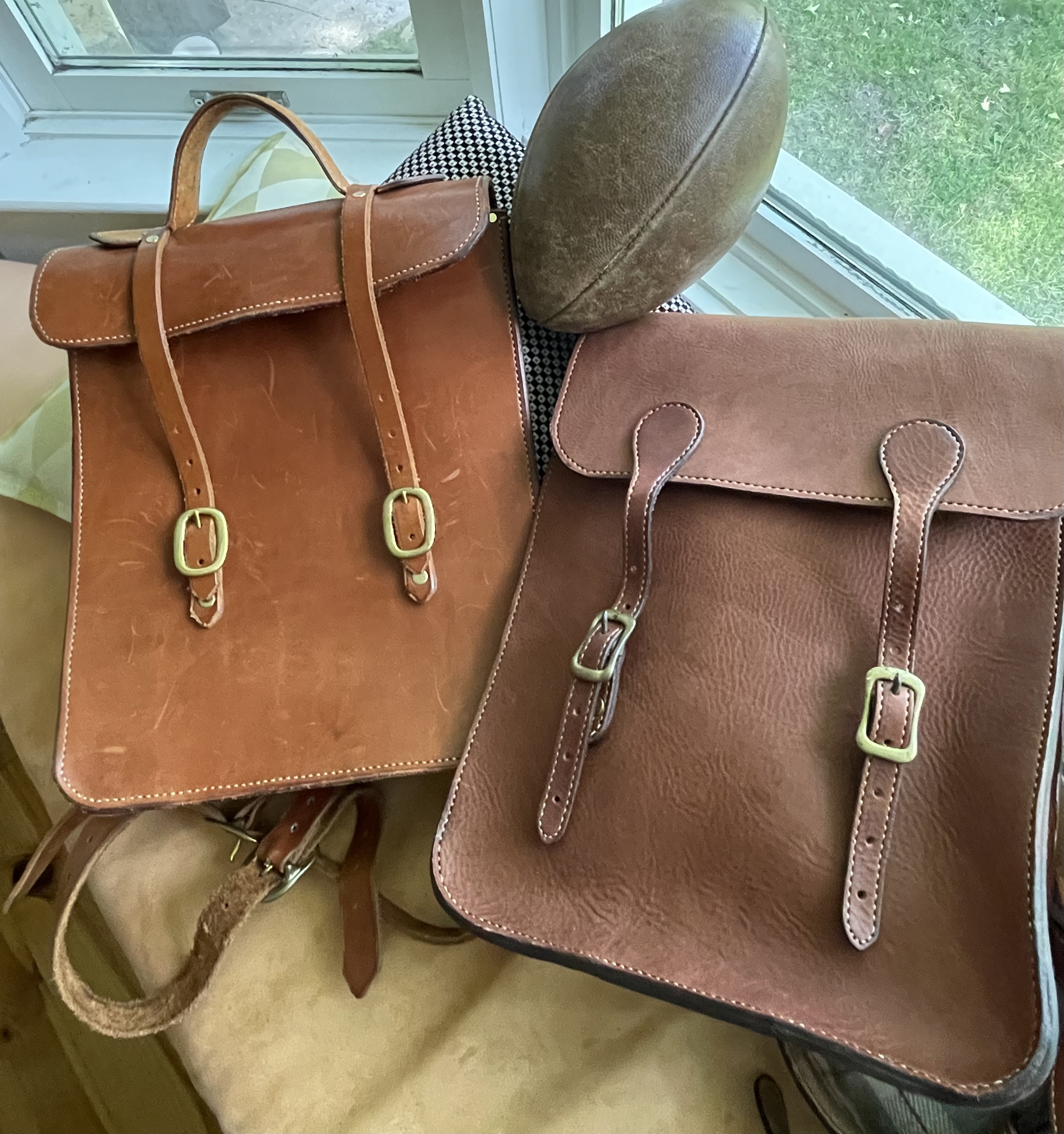 Fred, I made a similar one in 2018 and used an old kids backpack for reference. They were like cardboard back then. I made it with much better leather. It’s about 14 inches wide by about 18 high, I think. I took the original one on my recent road trip and my friend wanted one. For reference, here are the two bags with a football. New one ships tomorrow. I hand stitched everything and to be honest, there is no money to be made here, it’s more of a piece of art. About a hundred hours spent hand stitching, and $350 in material. This has been more of a relaxing pass time.