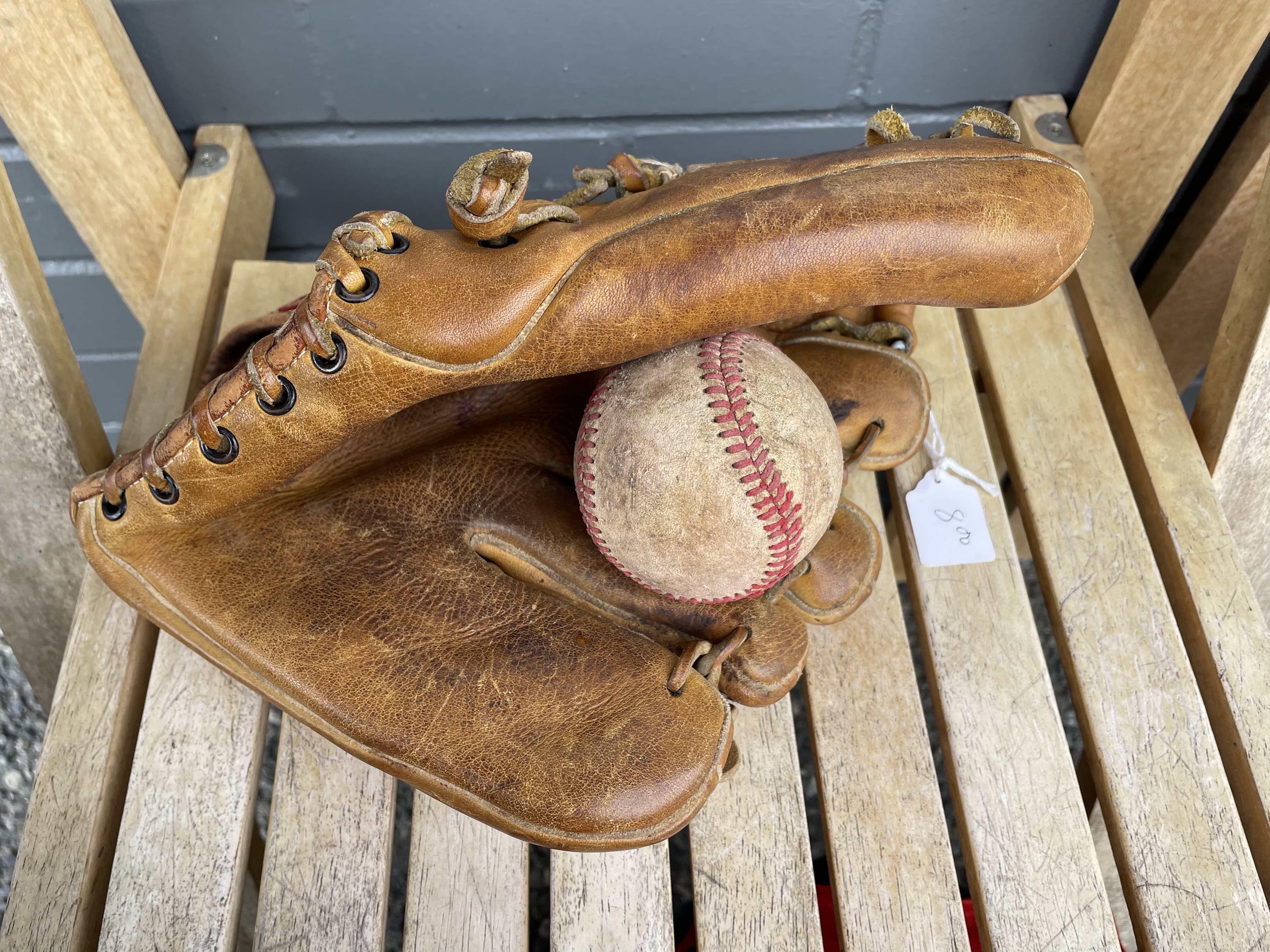 That is a nice old ball glove. I still have mine from high school (outfielders glove) that I still use whenever anyone wants to throw with me.