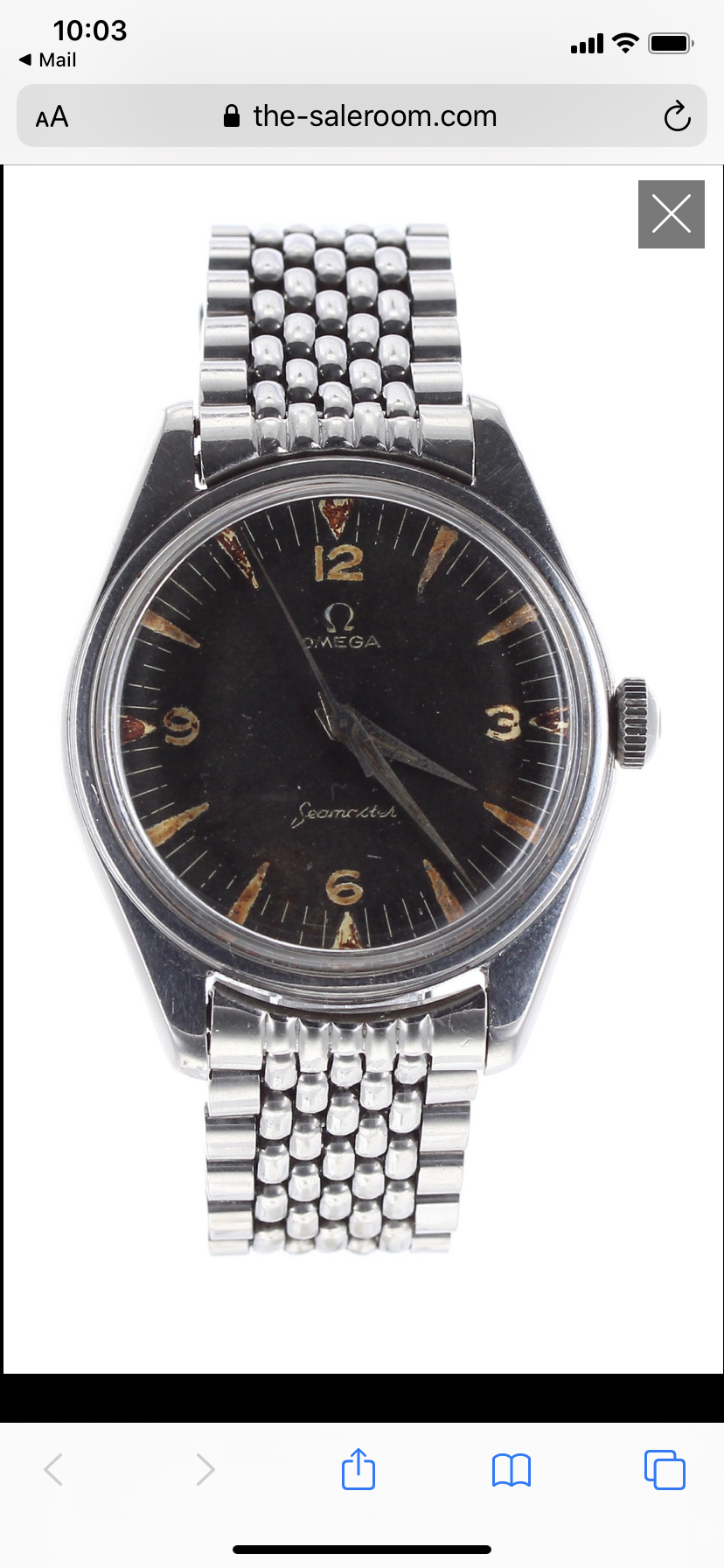 The asking price is around 8.5k USD and despite my insisting on it, there is no Omega Extract of the Archives which the dealers insist is not a shield from a franken dial/watch anyway. He could apply for one if I am genuinely interested in pursuing this (takes a few weeks anyway), but I haven't persisted because I need more guidance on this.
