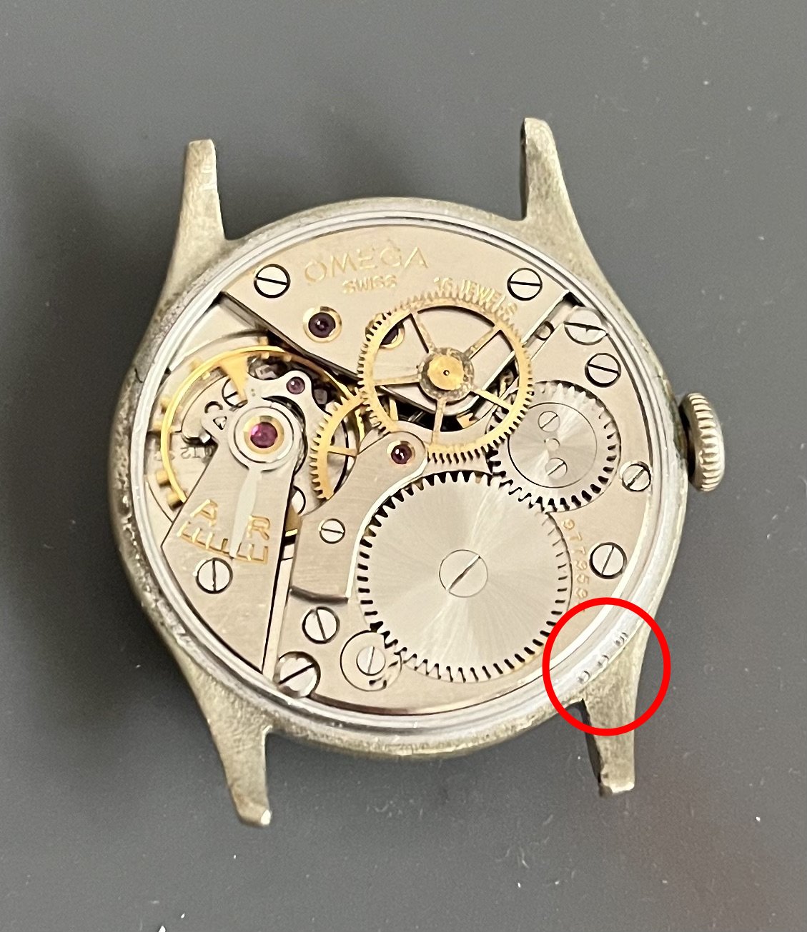 As far as I know, in the 50’s, many watches were recased with bigger (36) Dennison cases with screwdown back, but my question is: a Dennison 33 case, no screwdown back and with both Dennison (“made in England”) and Omega written in the inner caseback is a wartime 40’s recase or a postwar one? I assume that it must be prior of larger 1956 recases. The dial is the old creamy one, pretty decent.
