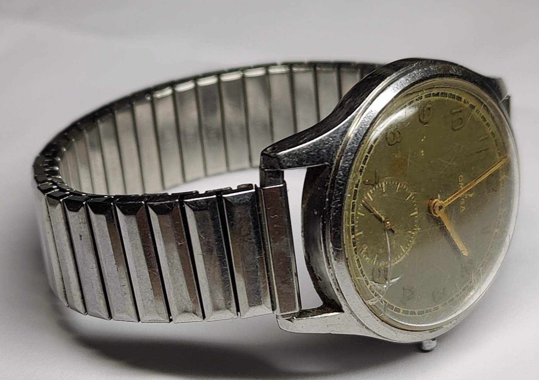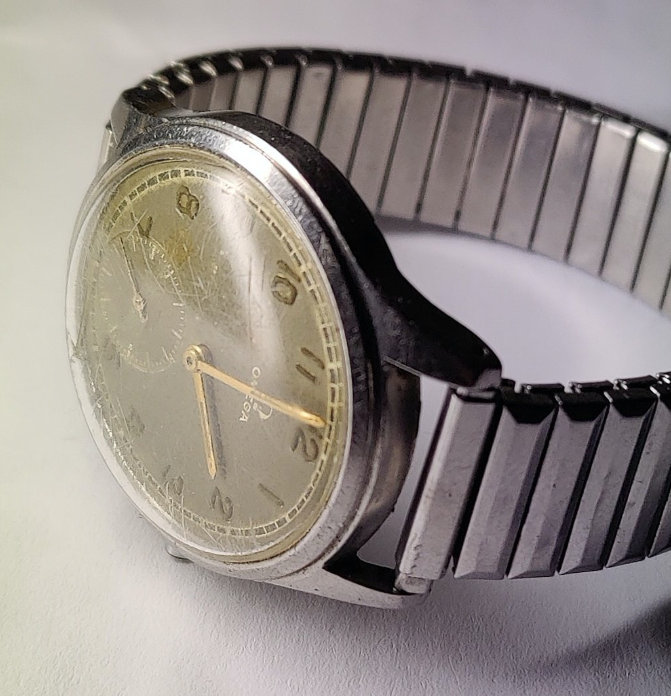 the crown is missing and the owner has therefore no clue whether the watch works or not but i am willing to take a gamble on that.