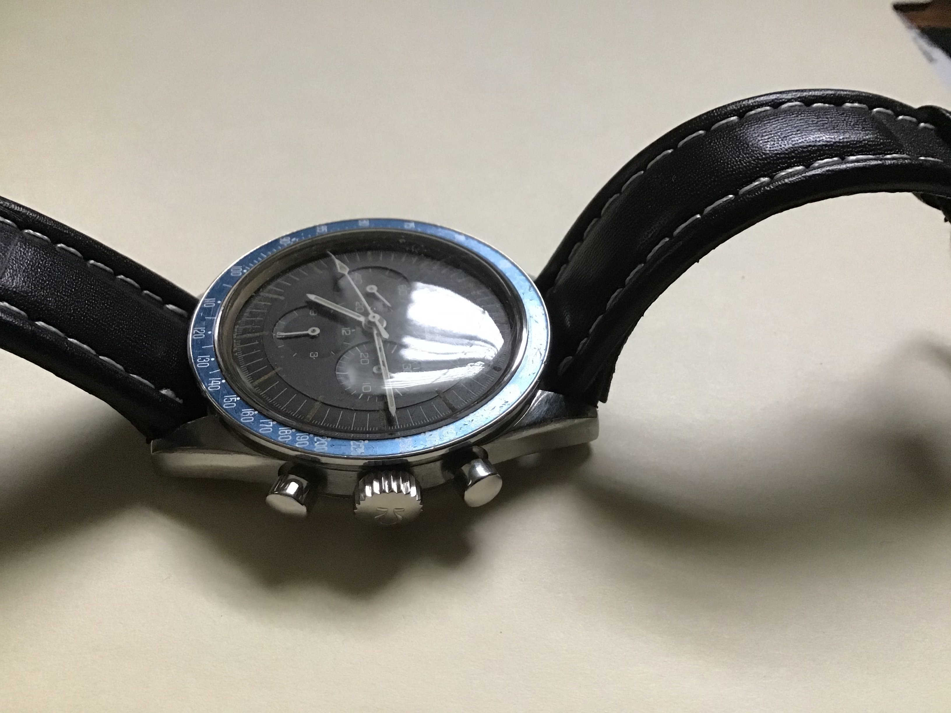 At Christmas, I read several online articles on vintage Speedmasters, unpacked my last one and gave it a good look. I would like to get some knowledgeable advice and opinions on this watch’s condition and price setting should I want to sell it. The Speedmaster was purchased in 1992 and I don’t have any history on it prior to then. It has had the back case off once (last month) since purchase. The caliber is 321 and the movement # is 2208XXXX making it to be a 105.003-64 by my reckoning. The blue bezel is pretty cool, huh? I’ve read that collectors’ like/dislike for these runs the gamut....what do you think? I’m appreciative of your opinions.