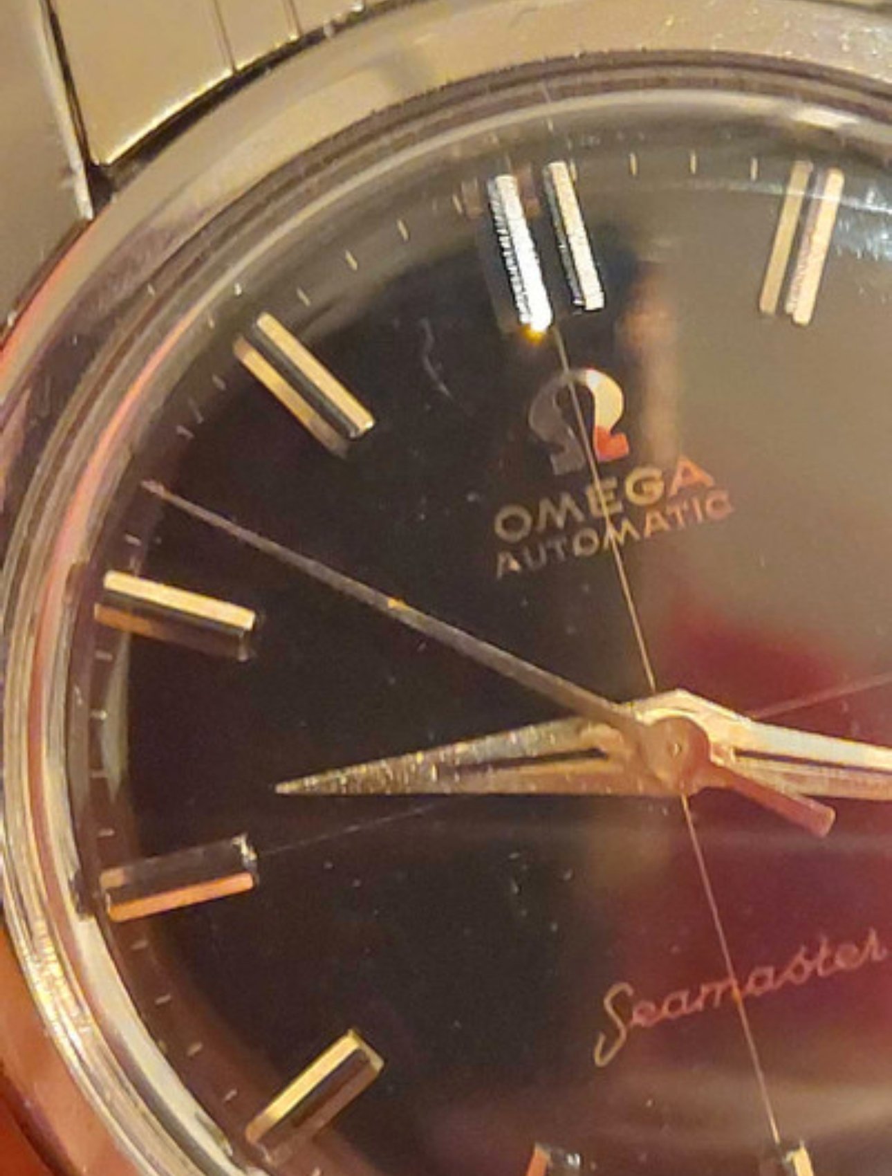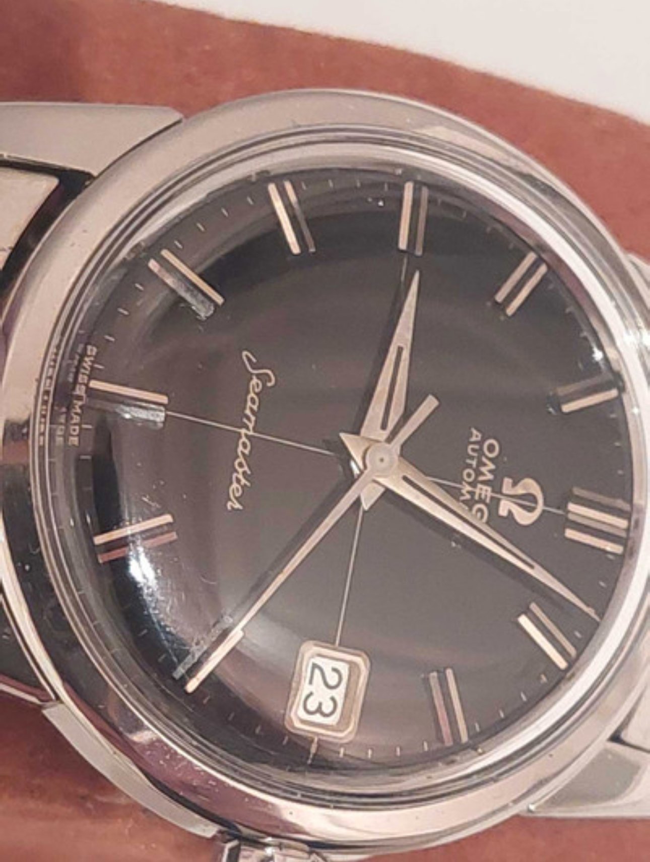 ·Hi everyone. I’ve been offered a 2849 Seamaster black dial cross hair for $1250 without service history. Its head only as the bracelet is confirmed to be aftermarket. These are the best photos the seller was able to provide me with 😵💫. I tried comparing the text to other examples but I found it difficult to come to a conclusion on the dial. What I understand is these came with slightly different fonts and text, depending on earlier or later examples. The most confusing thing is the Seamaster text. What say you all? Thanks in advance