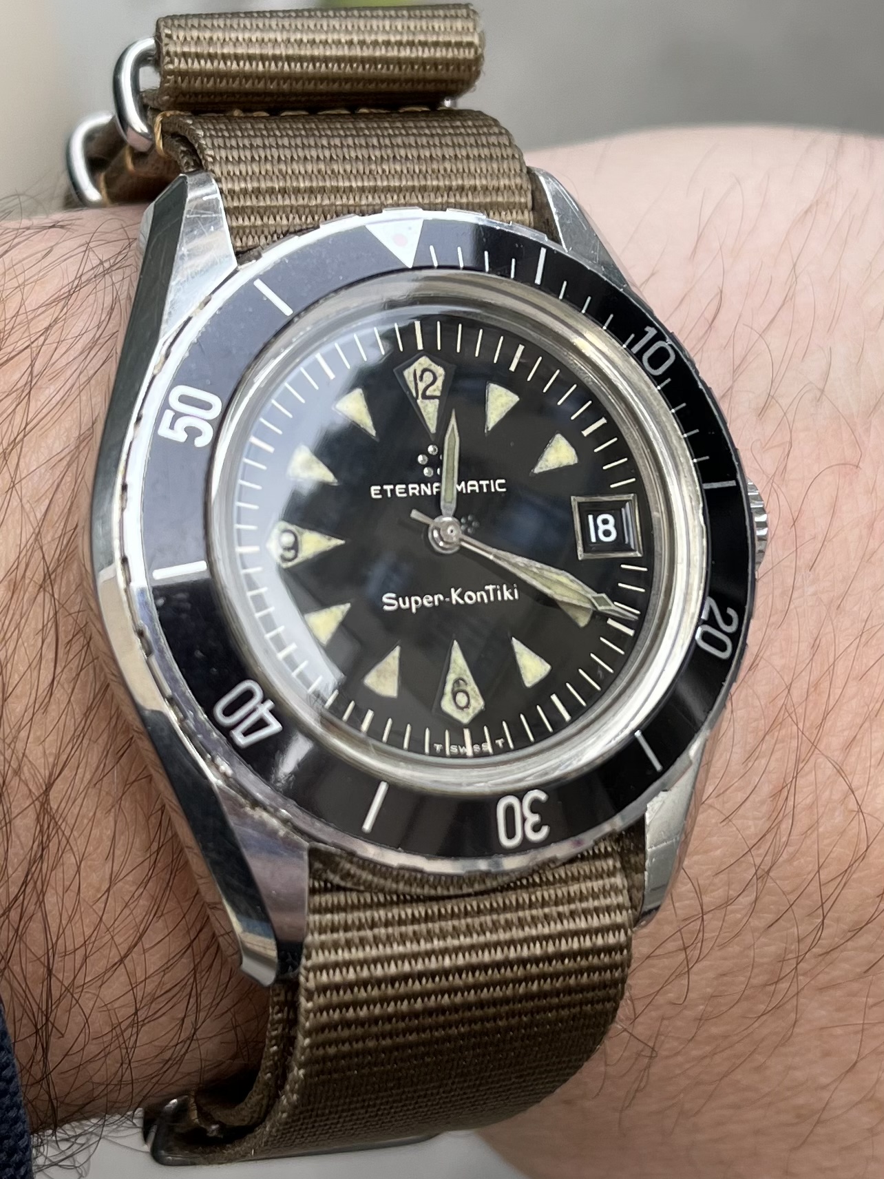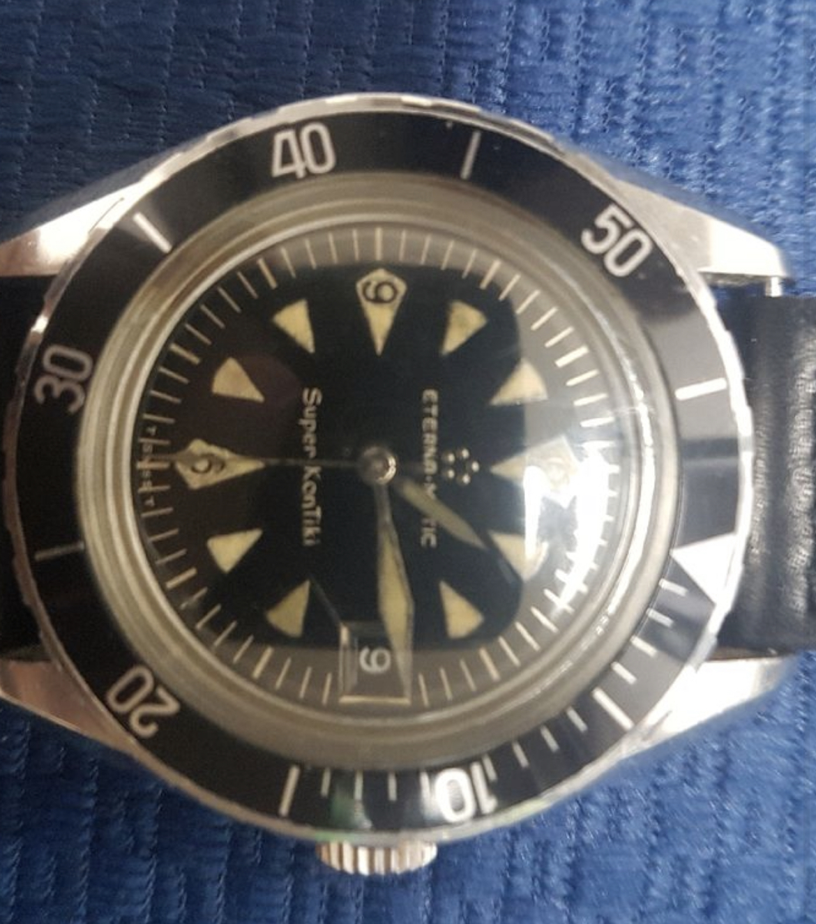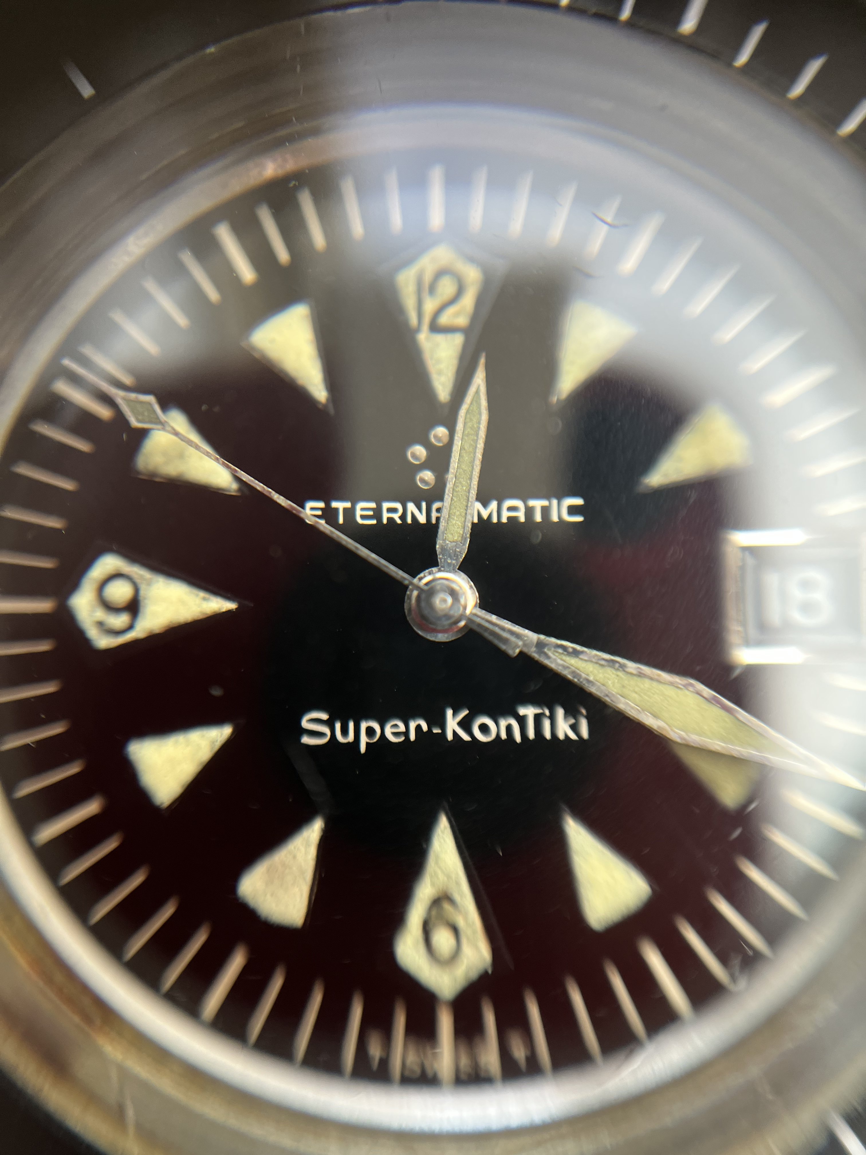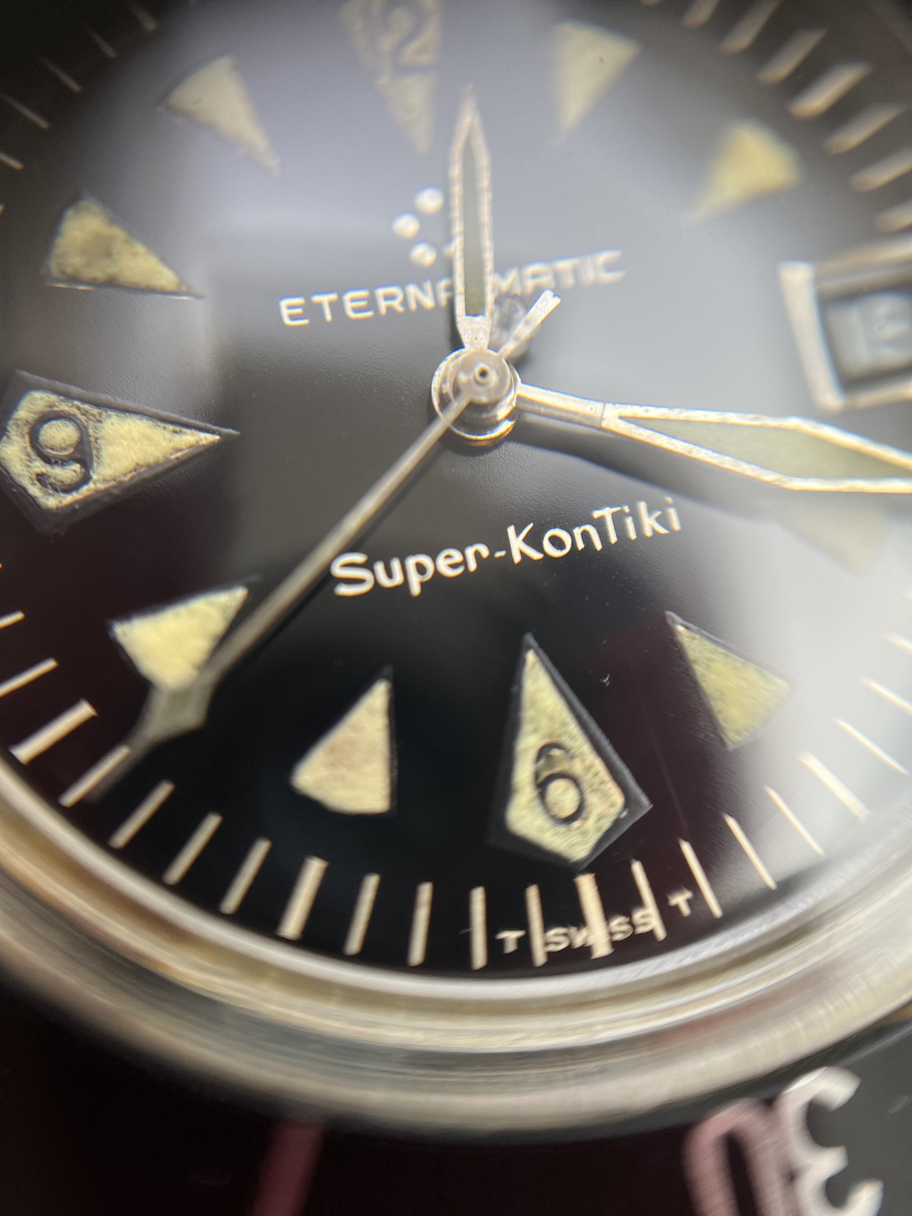 The only issue I see with the watch is the bit of lume touch-up previously pointed out. The 9 does look a little dicey. Hard to tell in the photos if the hands have also been relumed or touched up.