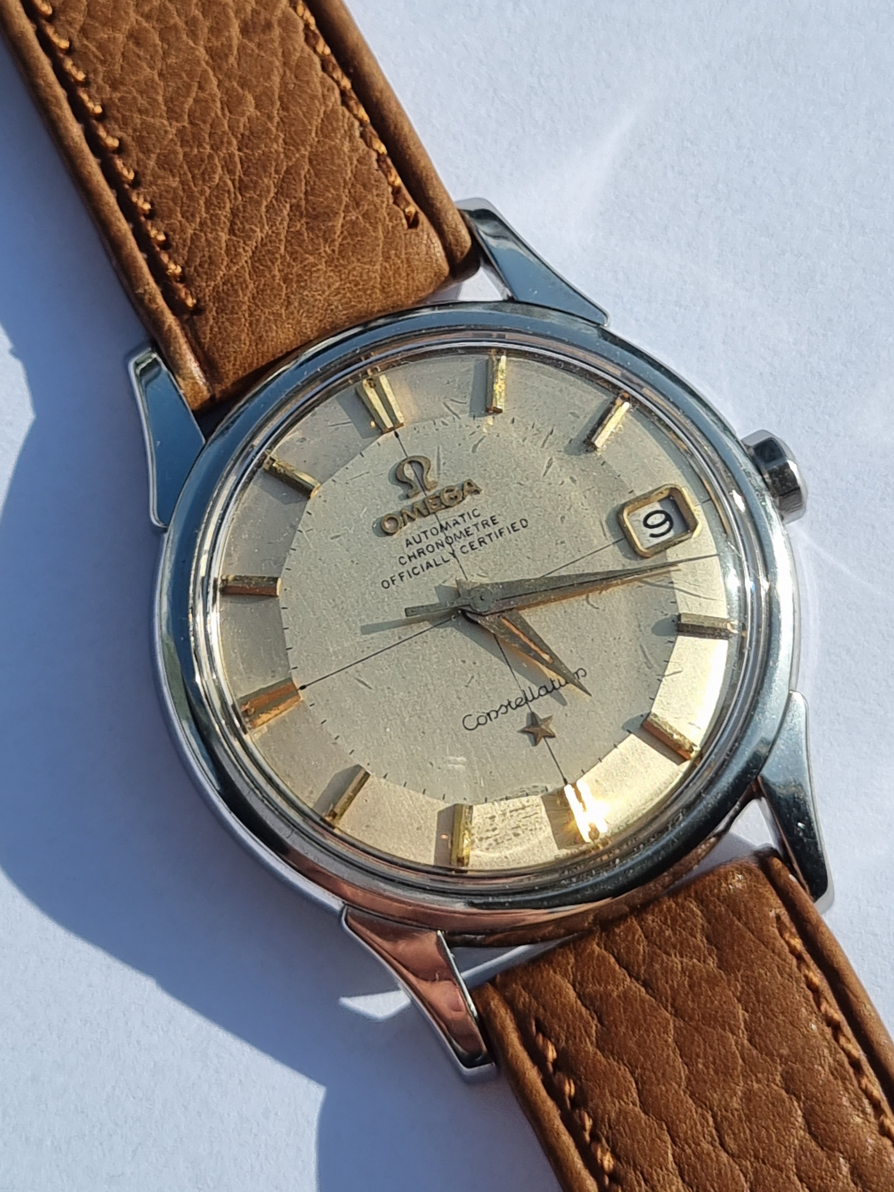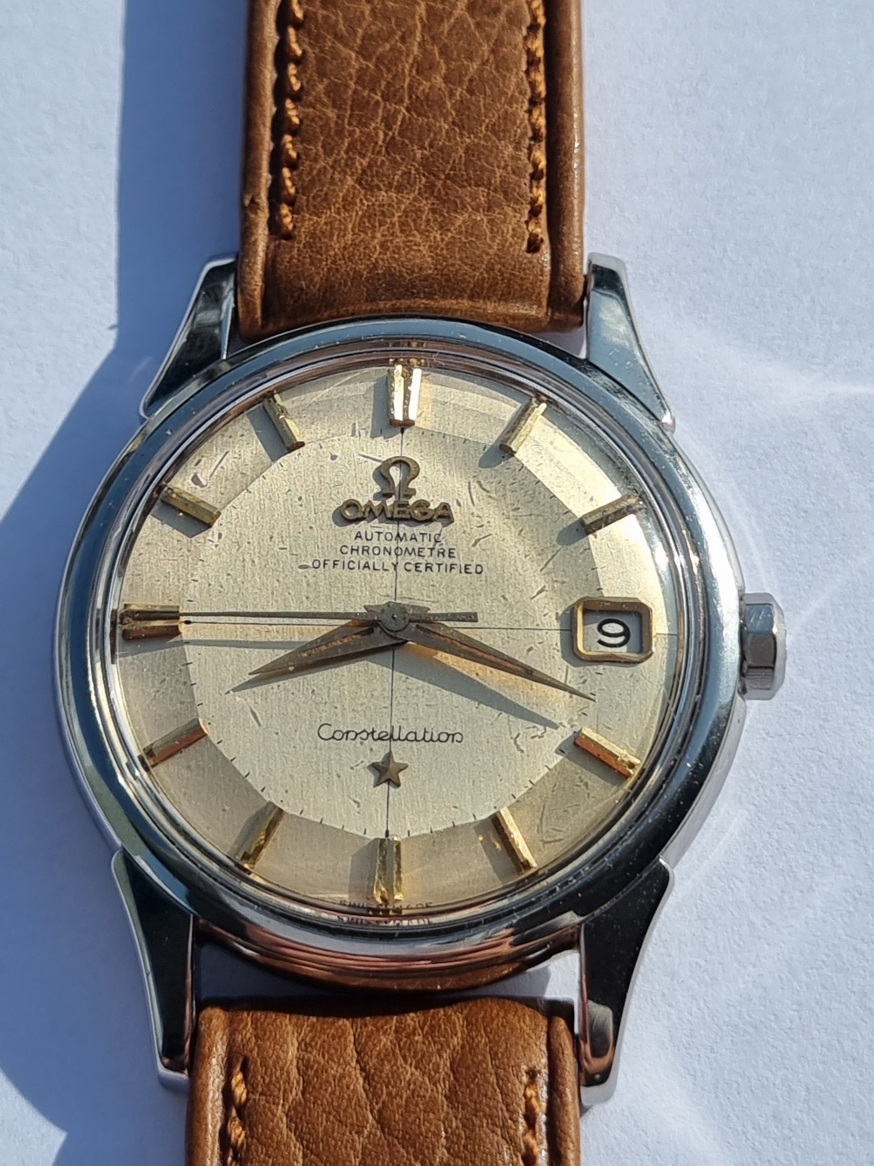 I would like to ask you for you opinion on the authenticity of the dial of this watch.. I came across an Omega 14900 62 SC. The dial looks good, but seems a little bit off. The letter "OM" is a little bit crooked, but I've seen similar on other dials. Only the hour markers 12, 3, 6, 9 have thick hour marker lines and the others don't, which is what seems off. The text proportions seem good, but also seems a little bit thinner compared to photos. Could this be a redial, or a dial variant?