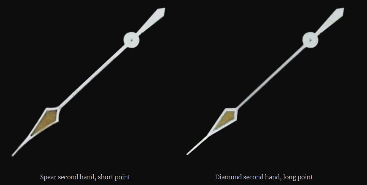 - Hands: Sword hands with long seconds hand(?). I can't tell if the second hand is short or long. Minute hand appears to have either been relumed or cracked.