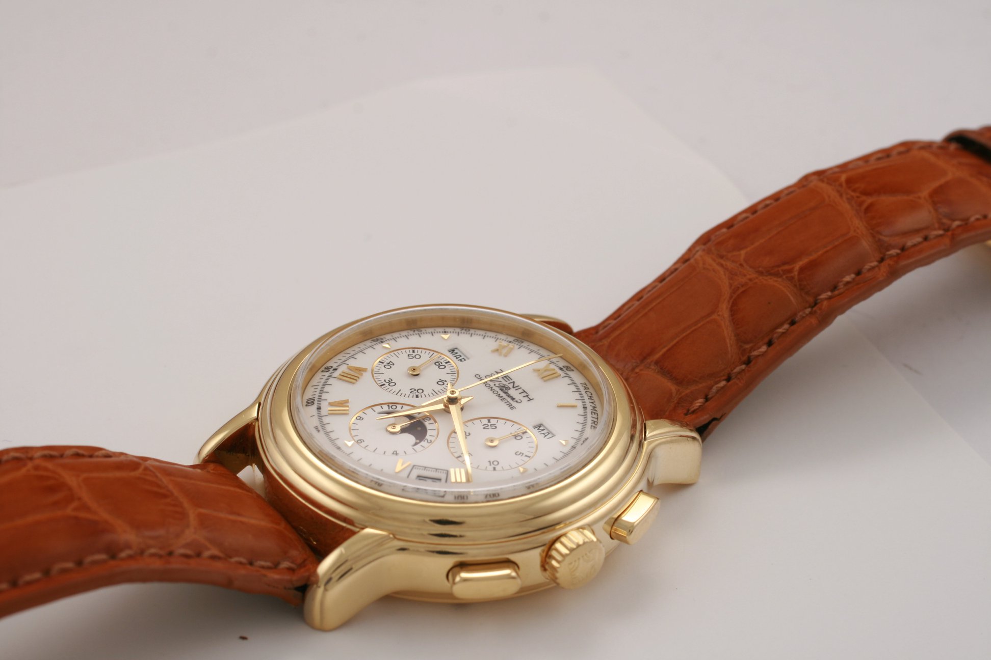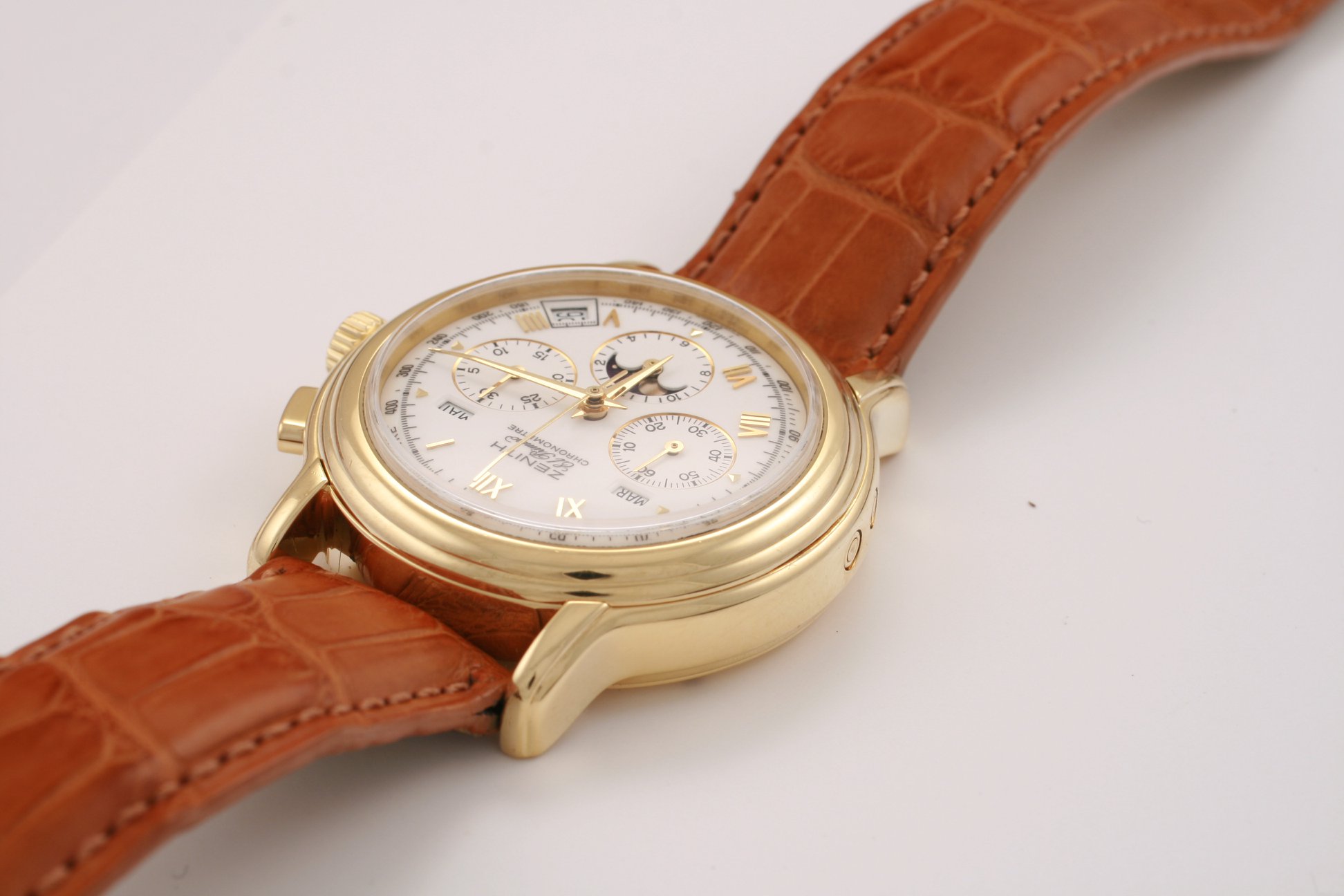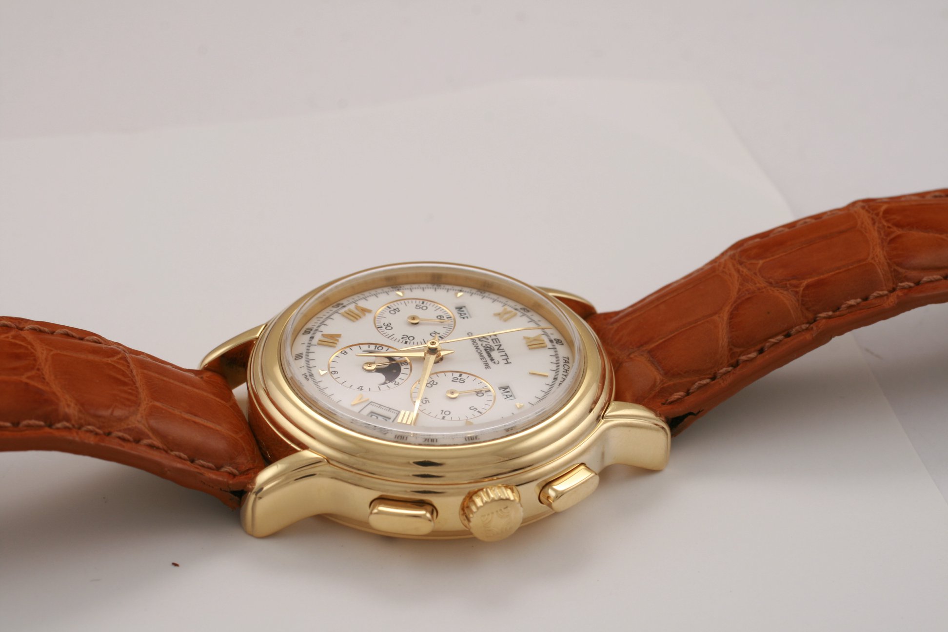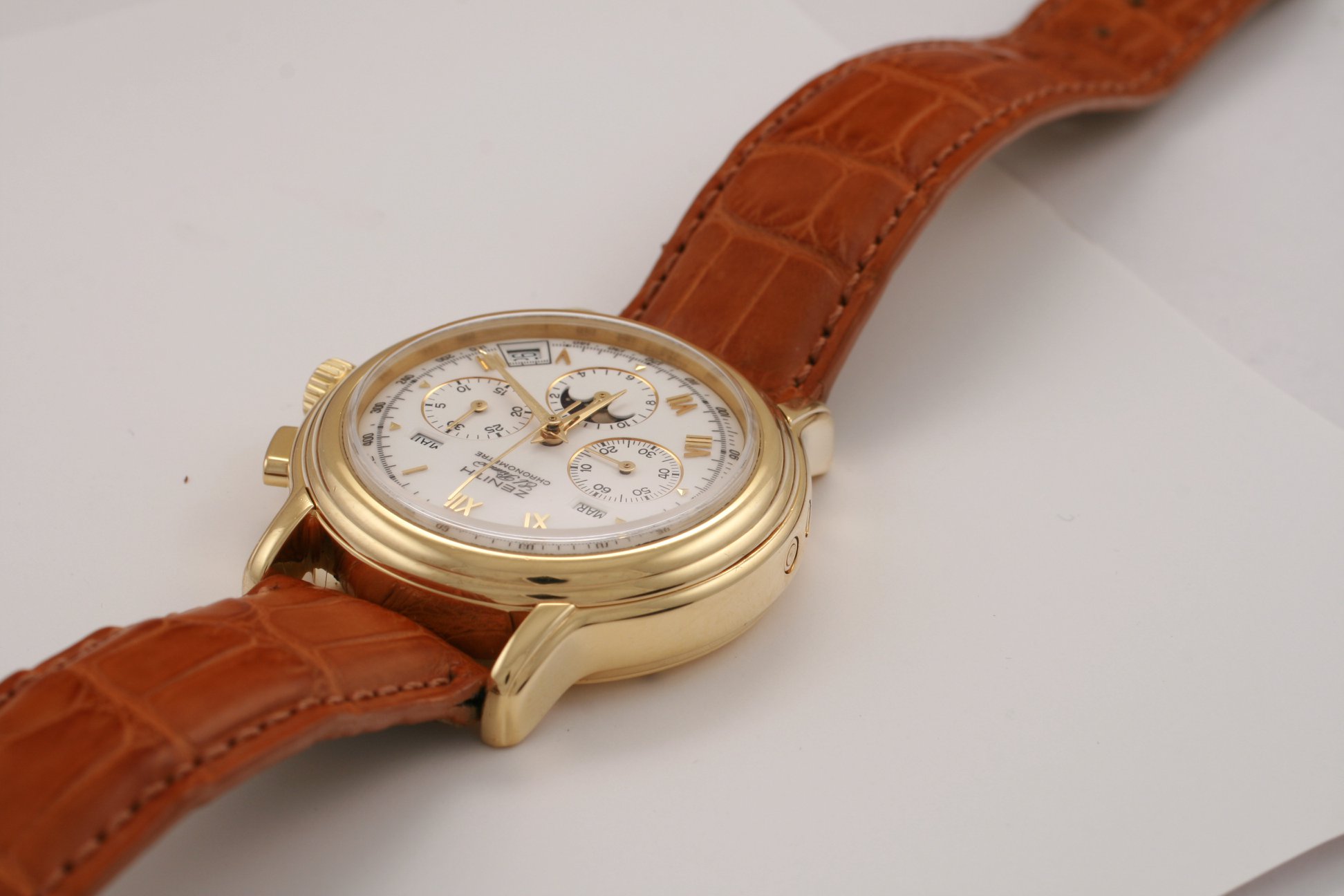I have found this Zenith Chronomaster Moonphase ref. 30.0240.410 in yellow gold for sale at a dealer in my town. It comes with box and verification/rate papers, but no certificate. The asking price is the equivalent of 7700 USD / 6500 EUR at the current exchange rate. There is no mention of service history; only the usual "checked by watchmaker and in very good condition".