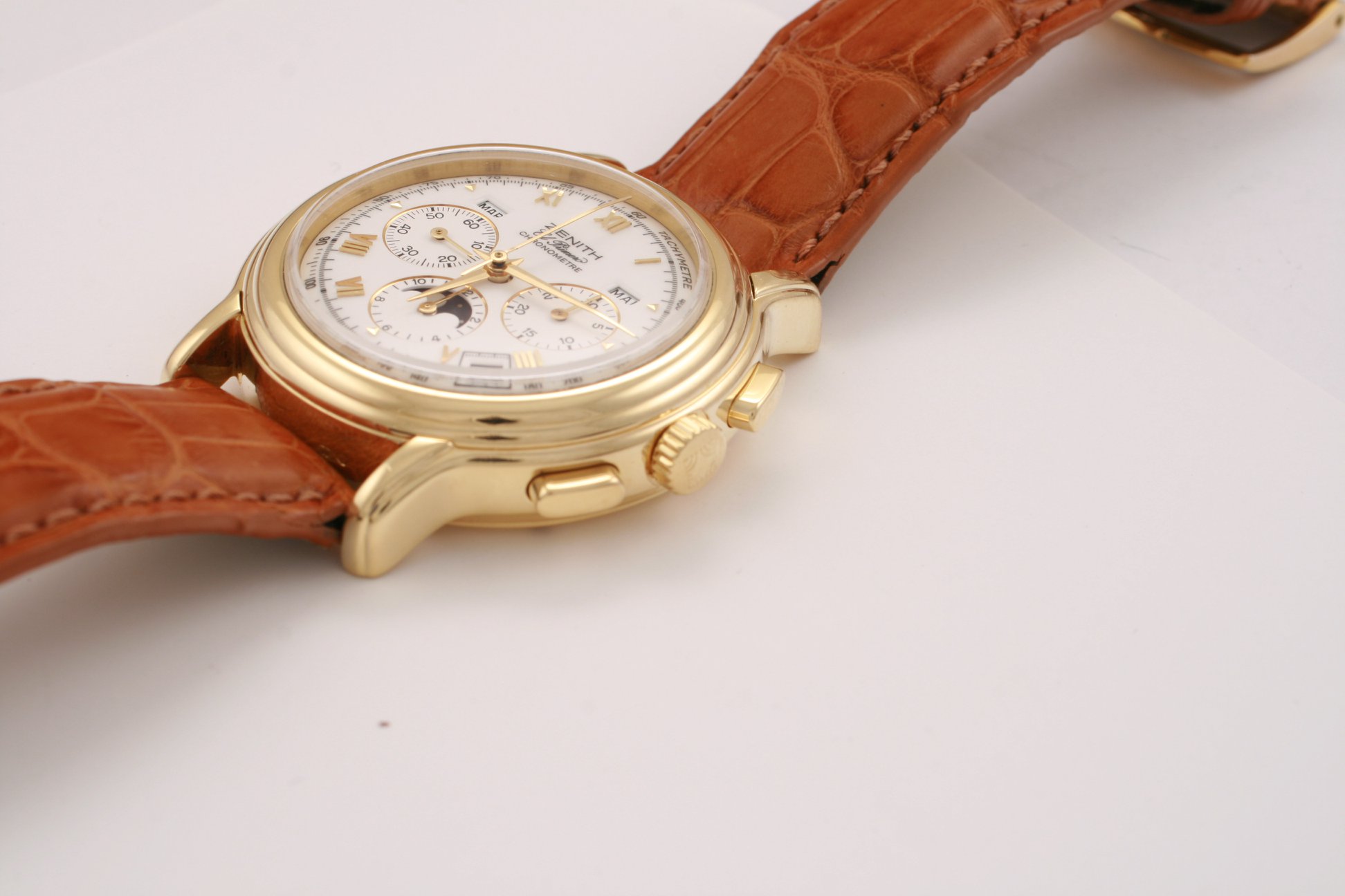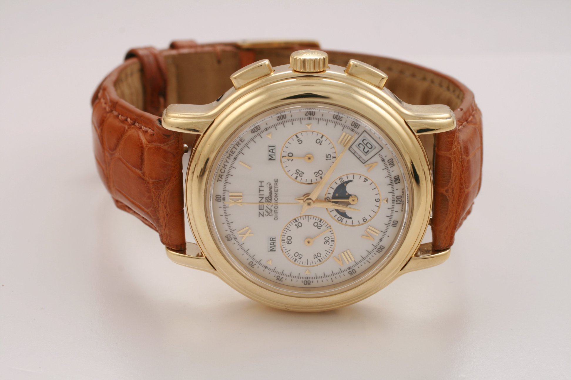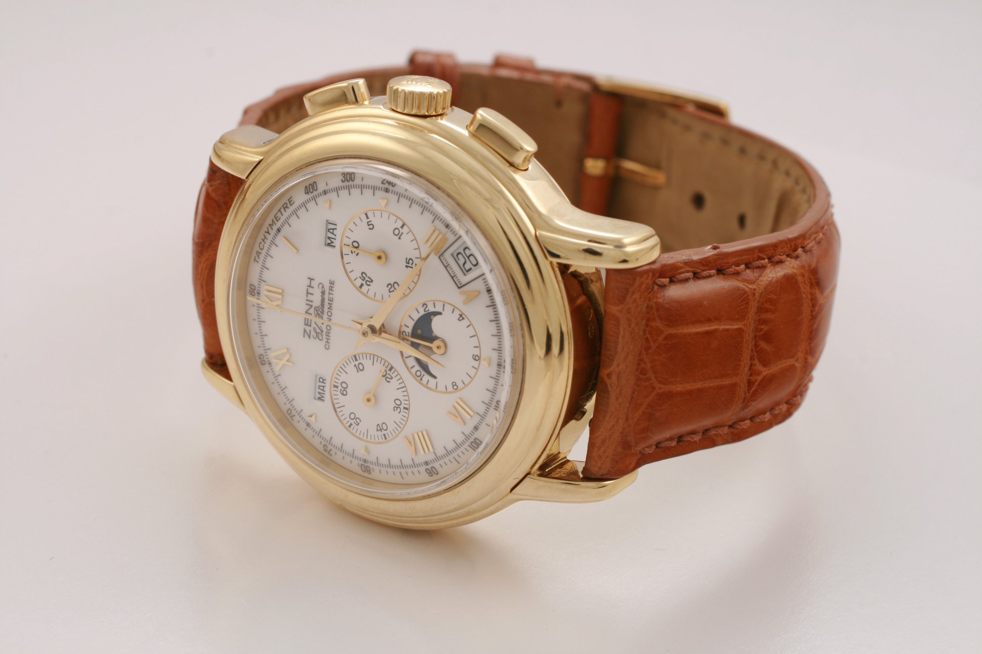 I have found this Zenith Chronomaster Moonphase ref. 30.0240.410 in yellow gold for sale at a dealer in my town. It comes with box and verification/rate papers, but no certificate. The asking price is the equivalent of 7700 USD / 6500 EUR at the current exchange rate. There is no mention of service history; only the usual "checked by watchmaker and in very good condition".