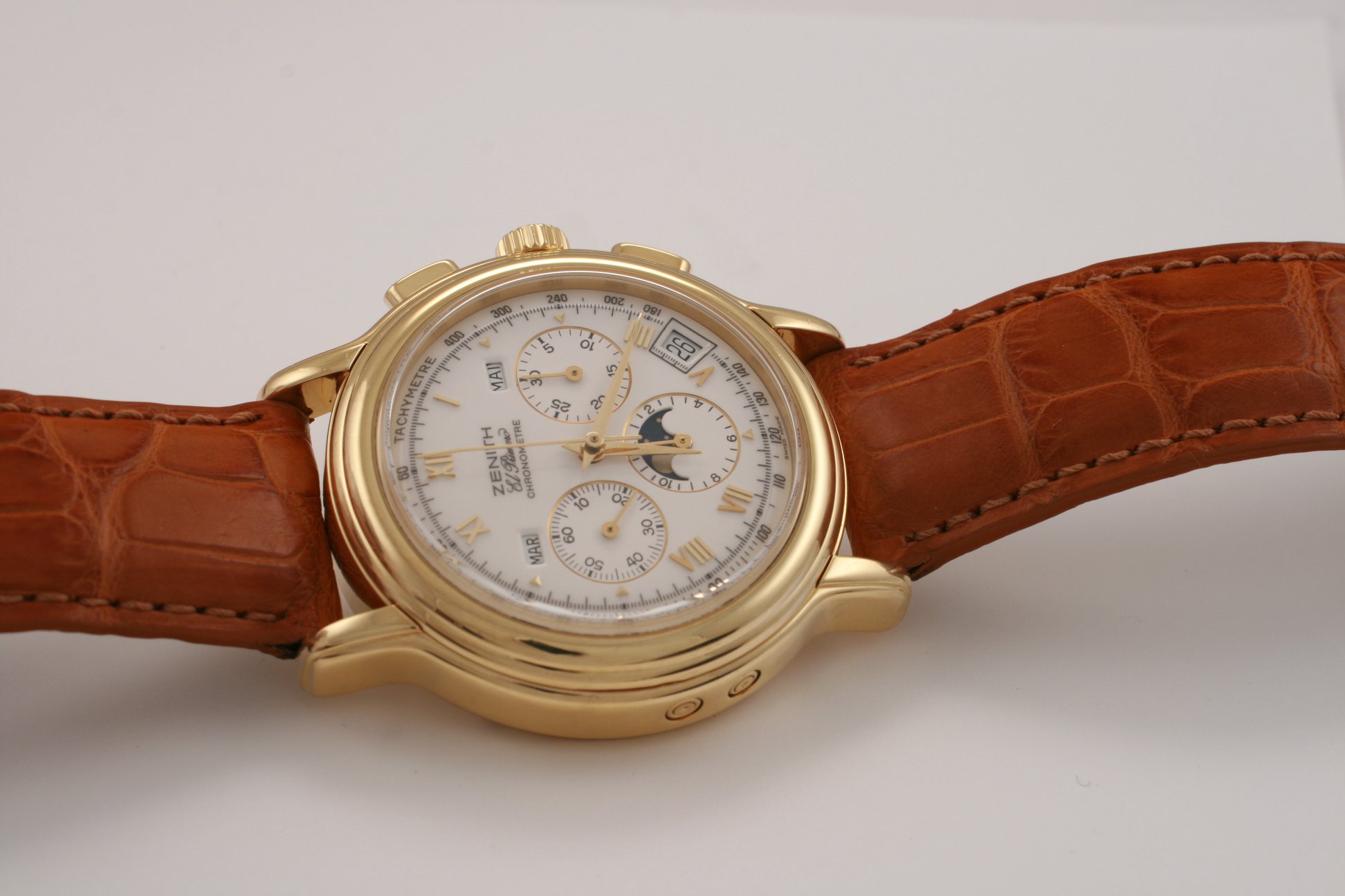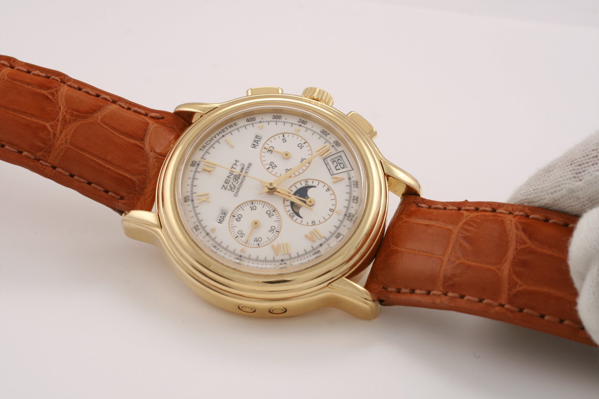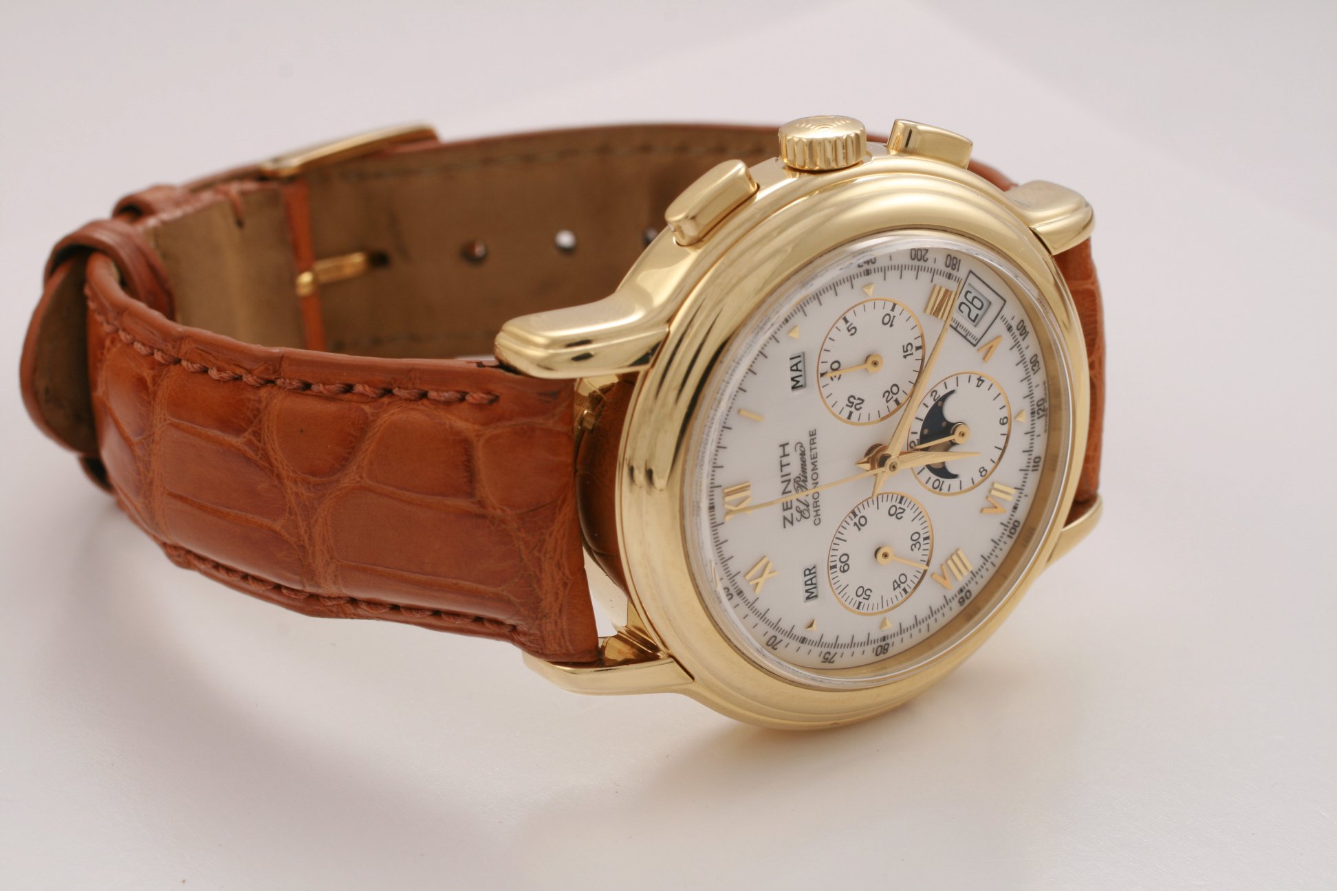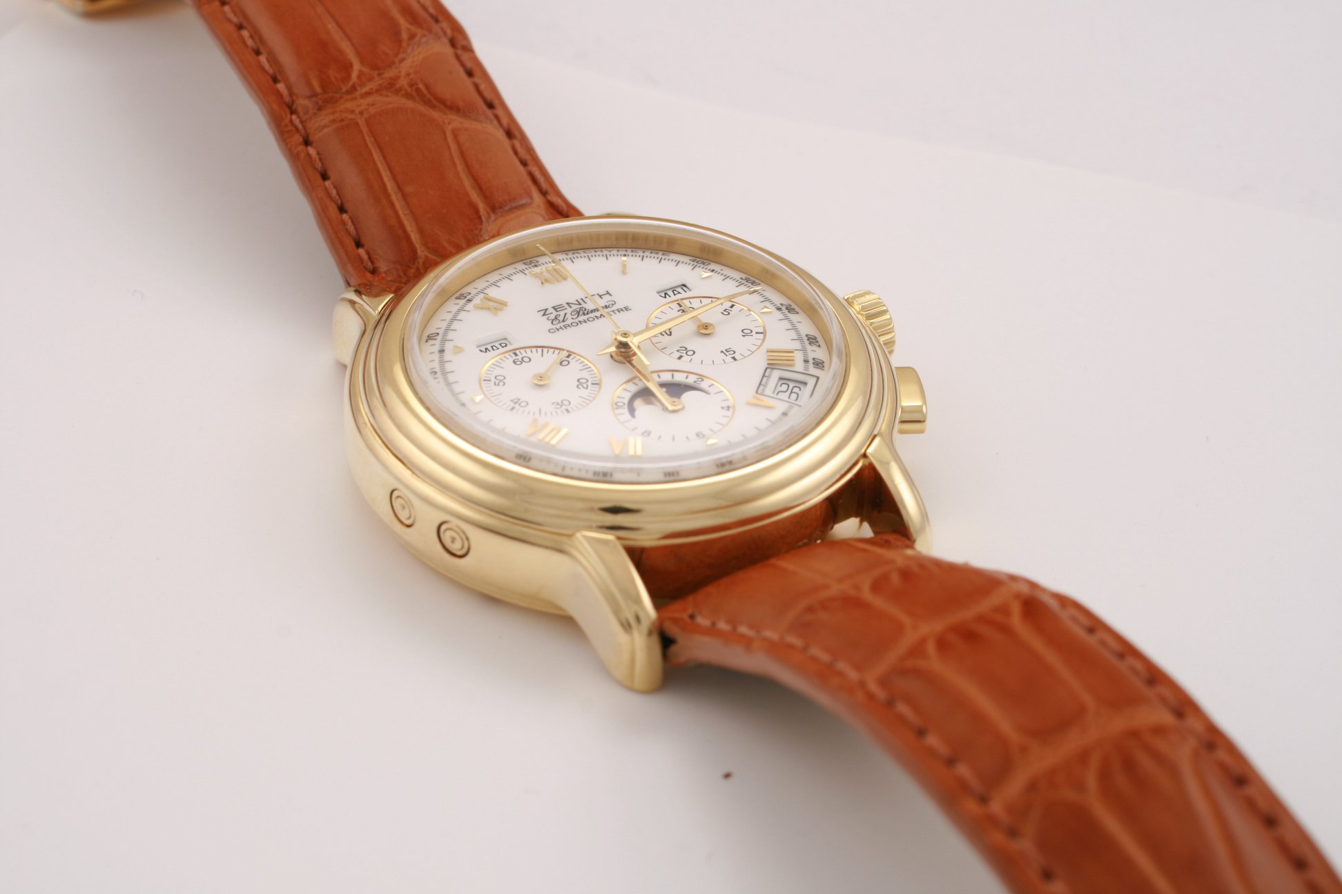 I have found this Zenith Chronomaster Moonphase ref. 30.0240.410 in yellow gold for sale at a dealer in my town. It comes with box and verification/rate papers, but no certificate. The asking price is the equivalent of 7700 USD / 6500 EUR at the current exchange rate. There is no mention of service history; only the usual "checked by watchmaker and in very good condition".