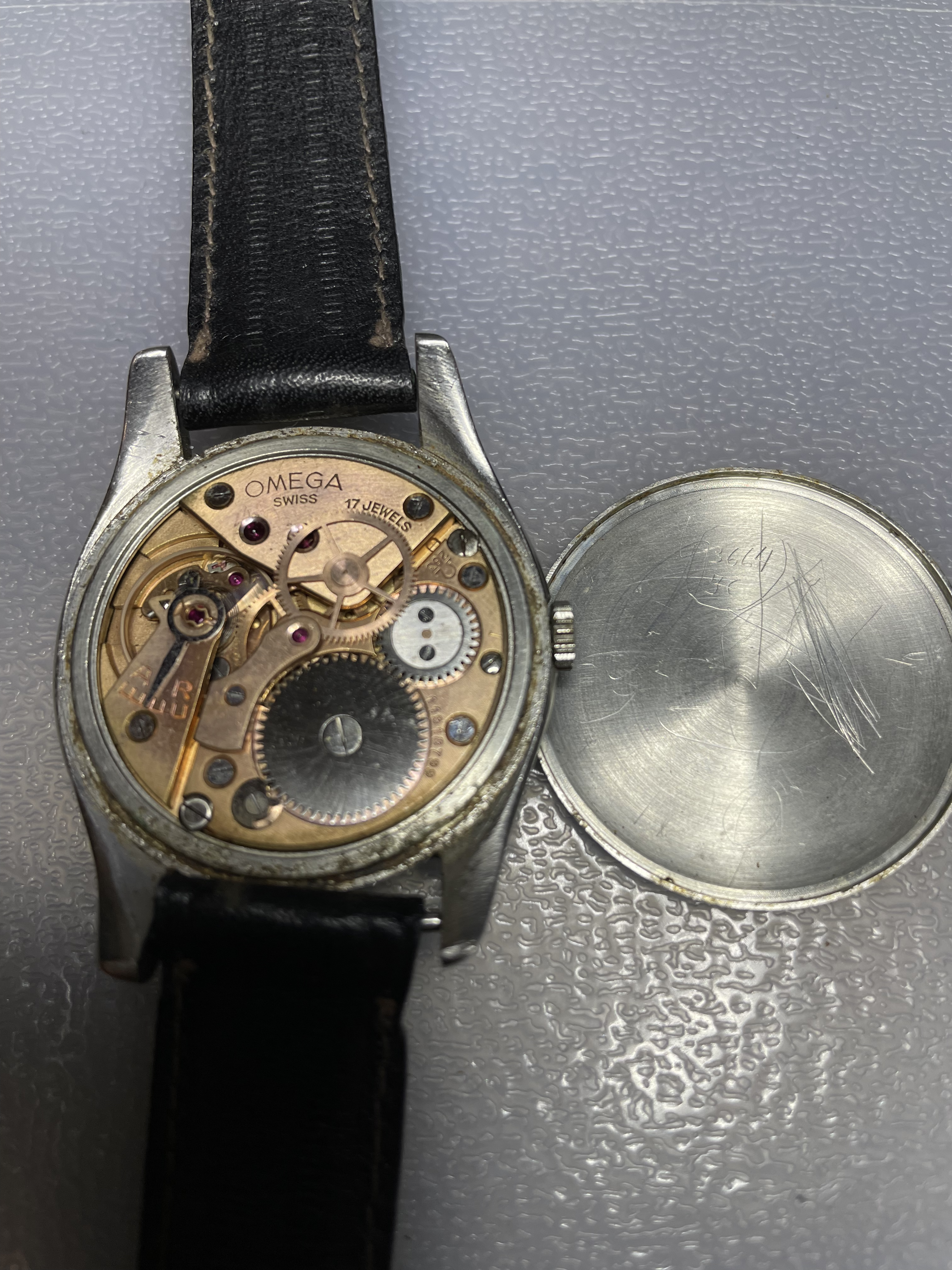 The poor dial also looks like it's seen better days, but being a complete neophyte in watch making, I'm not sure how or if this can be cleaned/restored.