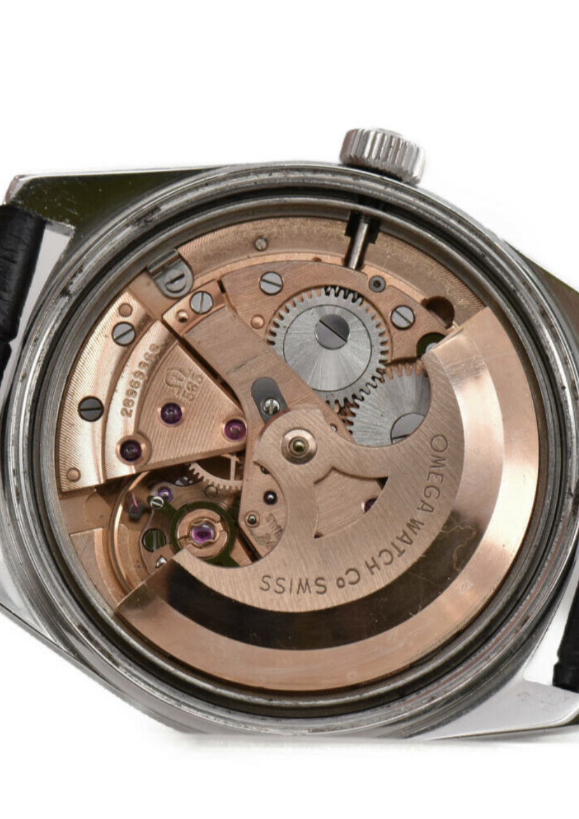 I liked this late 60's style. My research found that there should be the "T" with Swiss Made, as it has lumed hands and pips. The dial looks super clean except for some marks near the lume at 4pm and 5pm. There seems to be a bit of a warp on the dial at the 7pm. The movement is a 565 which seems robust and easy-ish to service. Looks like perhaps a water mark on the rotor which is a bit scary. The hands and crown look original to me as well as the case back. The case looks like it has had a not so good polish at some point. It will need a service as the seller mentioned it's running -90 sec per day. Let me know what you think? I'm pretty sure the dial isn't a redial. Question: I was thinking about getting Omega original replacement hands as I think I can get away with that based on the dial condition. Obviously I'll keep the originals.