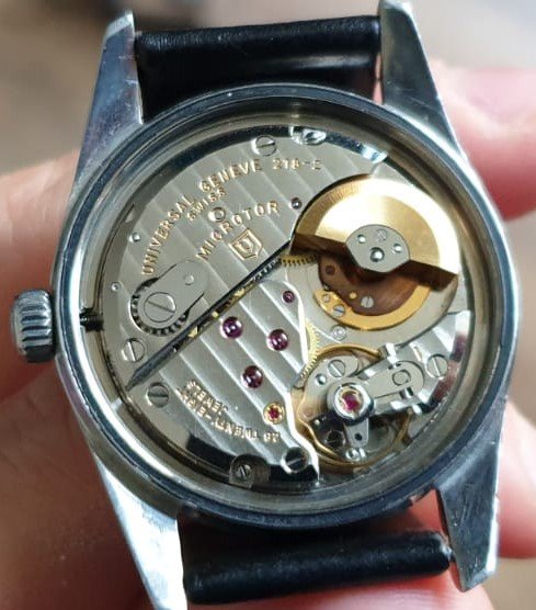 Seller shared, 1963, serviced in 2020, aftermarket crystal but everything else is original and polished in the past. Minor scratches on dial and blemish at 12.