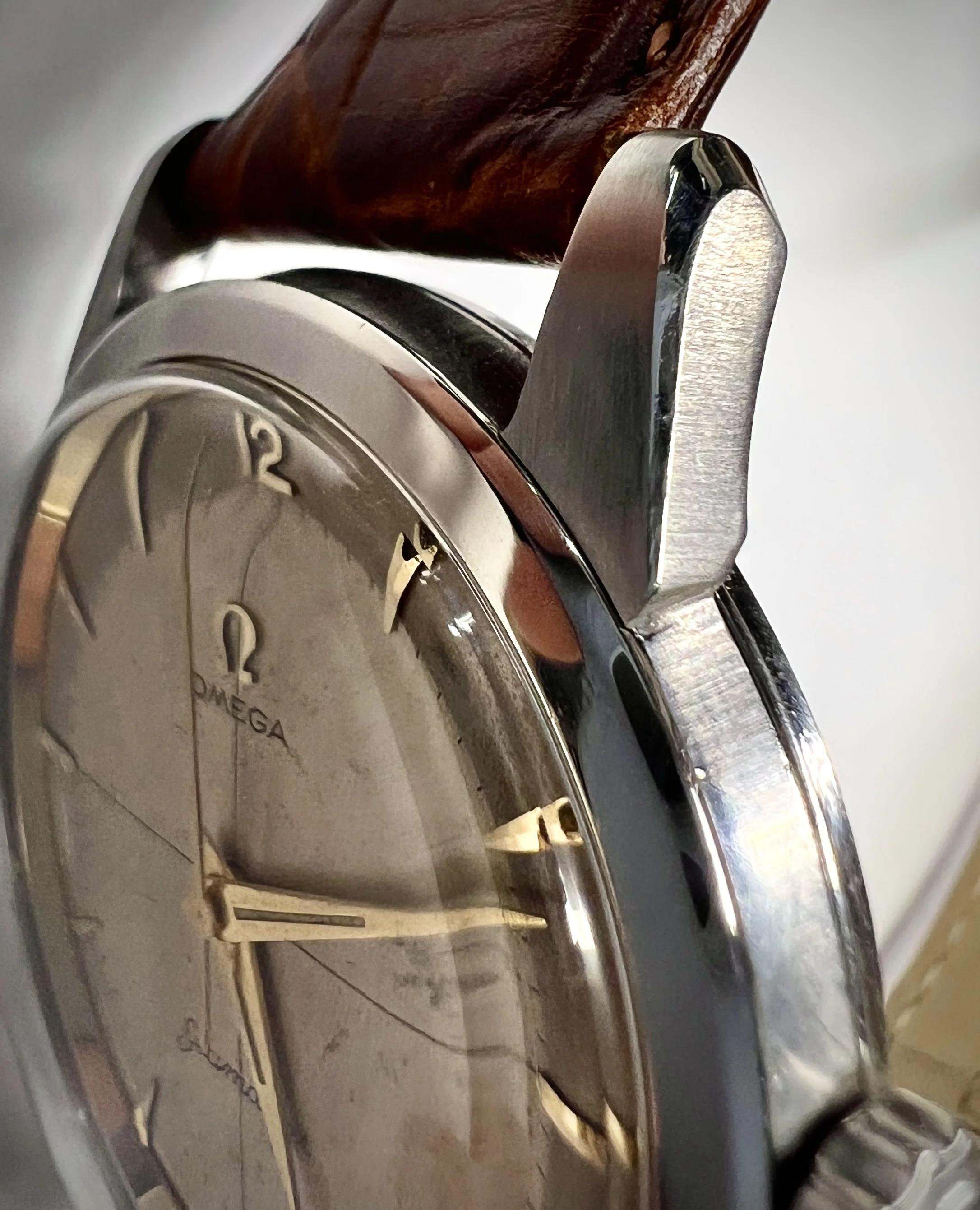 ·For watches with brushed side flanks I use a bench top polishing lathe with a 4 inch Bergeon 6723-240-LP wheel to get a nice brushed finish. However, the wheel is too large to finish case flanks if there are crown guards (like the Seamaster Professional 300m).