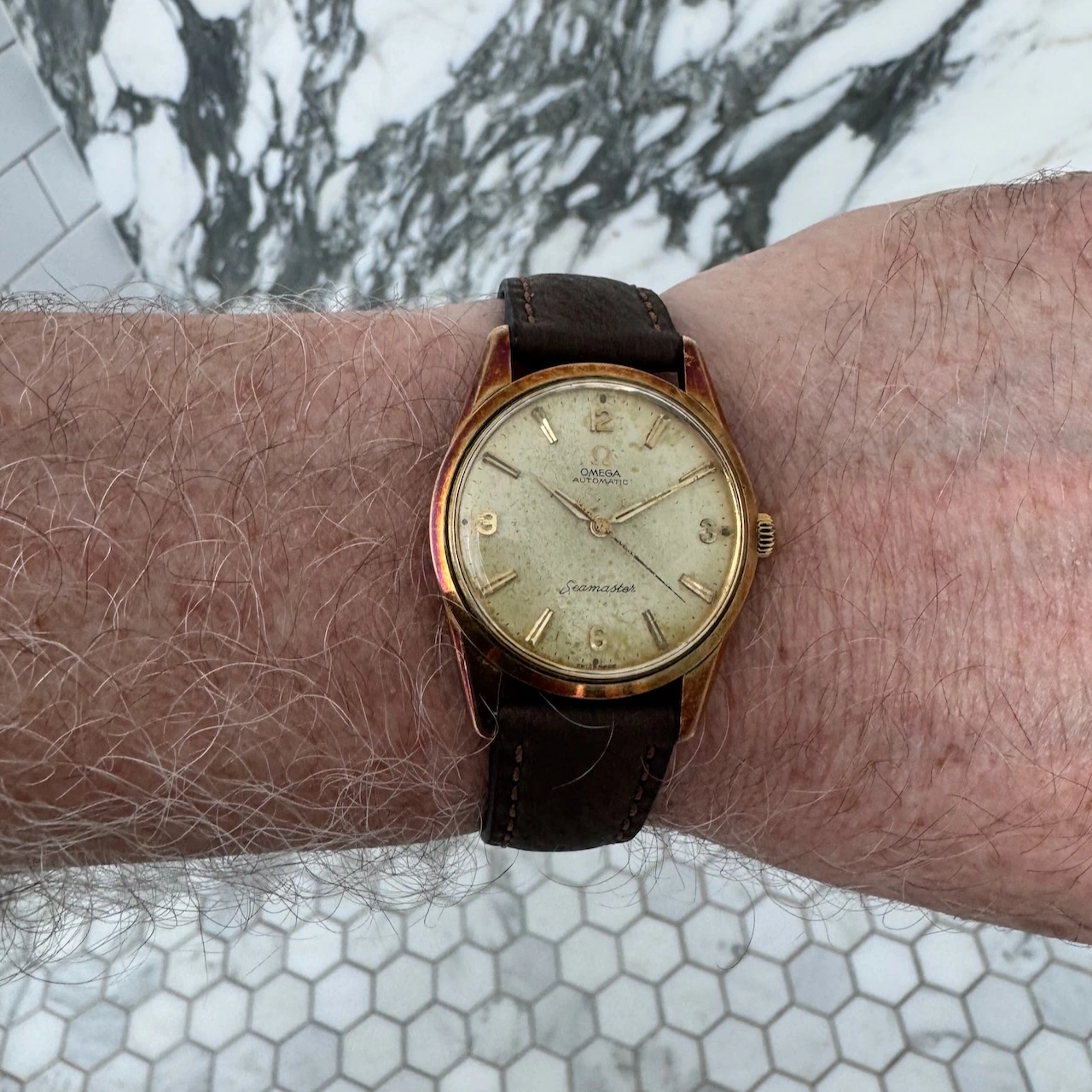 I'm culling a few of my earliest purchases after landing a grail recently. I've had this for sale on the local auction site (New Zealand's TradeMe) without much success despite what I think is a decent price given the gold content. I chose not to polish it, as I think it looks good/congruent with the dial condition, and the buyer could do it themself if wanted. Given that lack of decent bites, I wondered what the collective wisdom would be on a very gentle polish just to make it shiny?